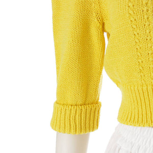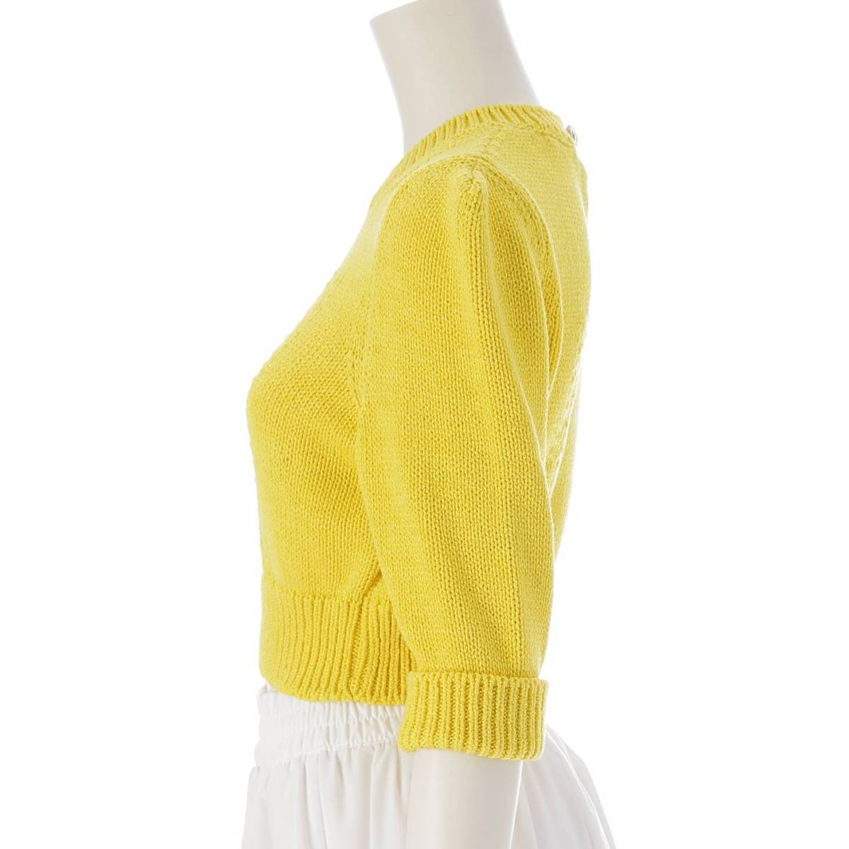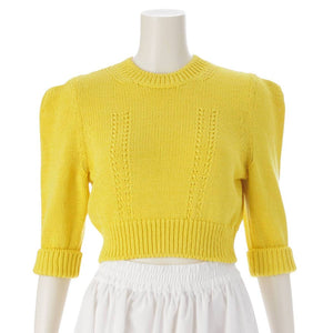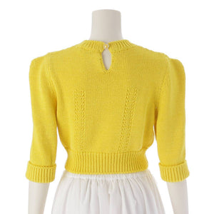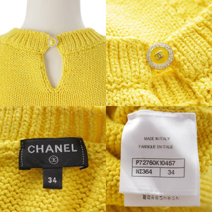 [Chanel] Chanel 22S COCO Button Cotton Puff Sleeve Short Knit Top P72760 Yellow 34 [Used] [Authenticated and Guaranteed Authentic] 212185