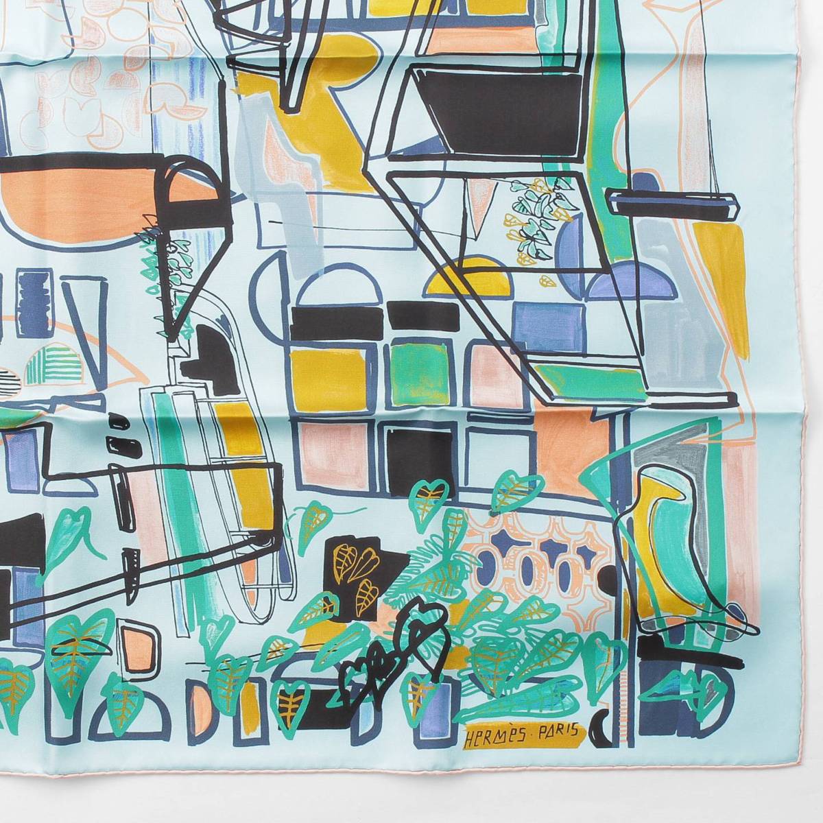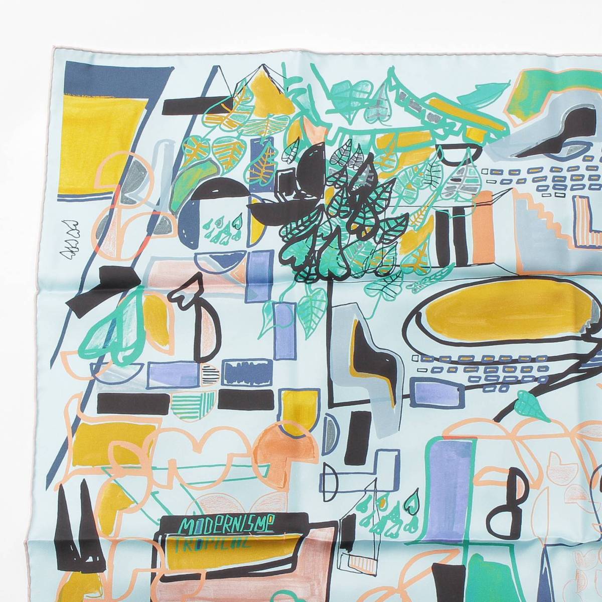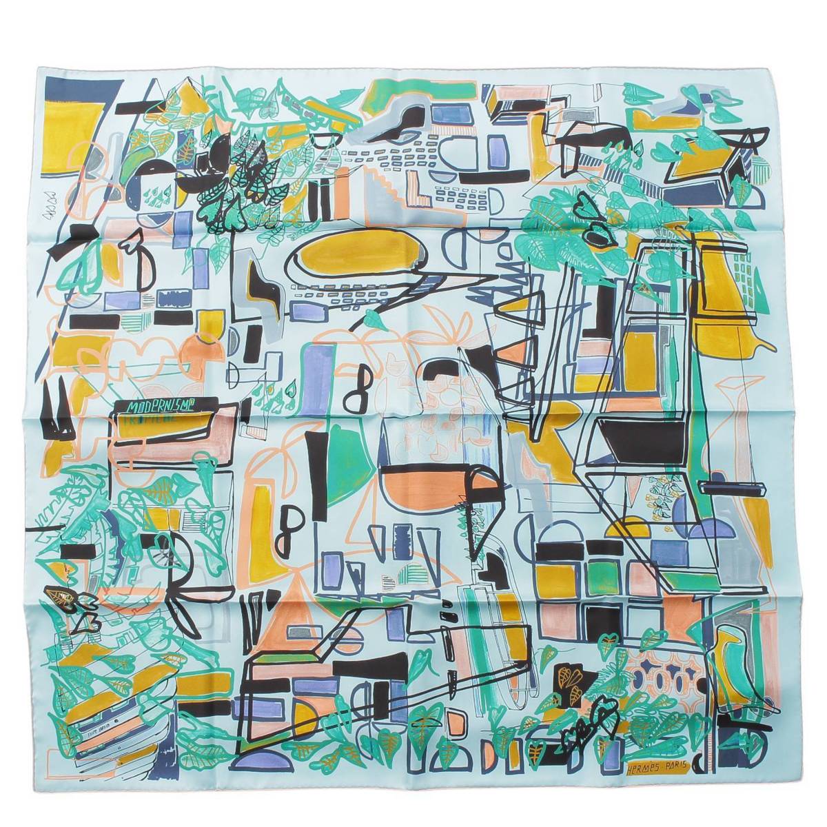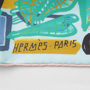 [Hermes] Hermes Carré 90 Modernisme tropical Silk scarf Aqua x green [Used] [Authenticated and guaranteed authentic] 212399