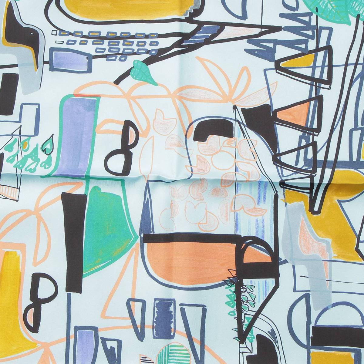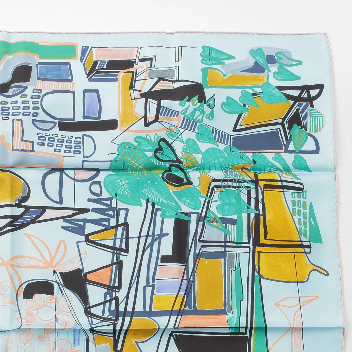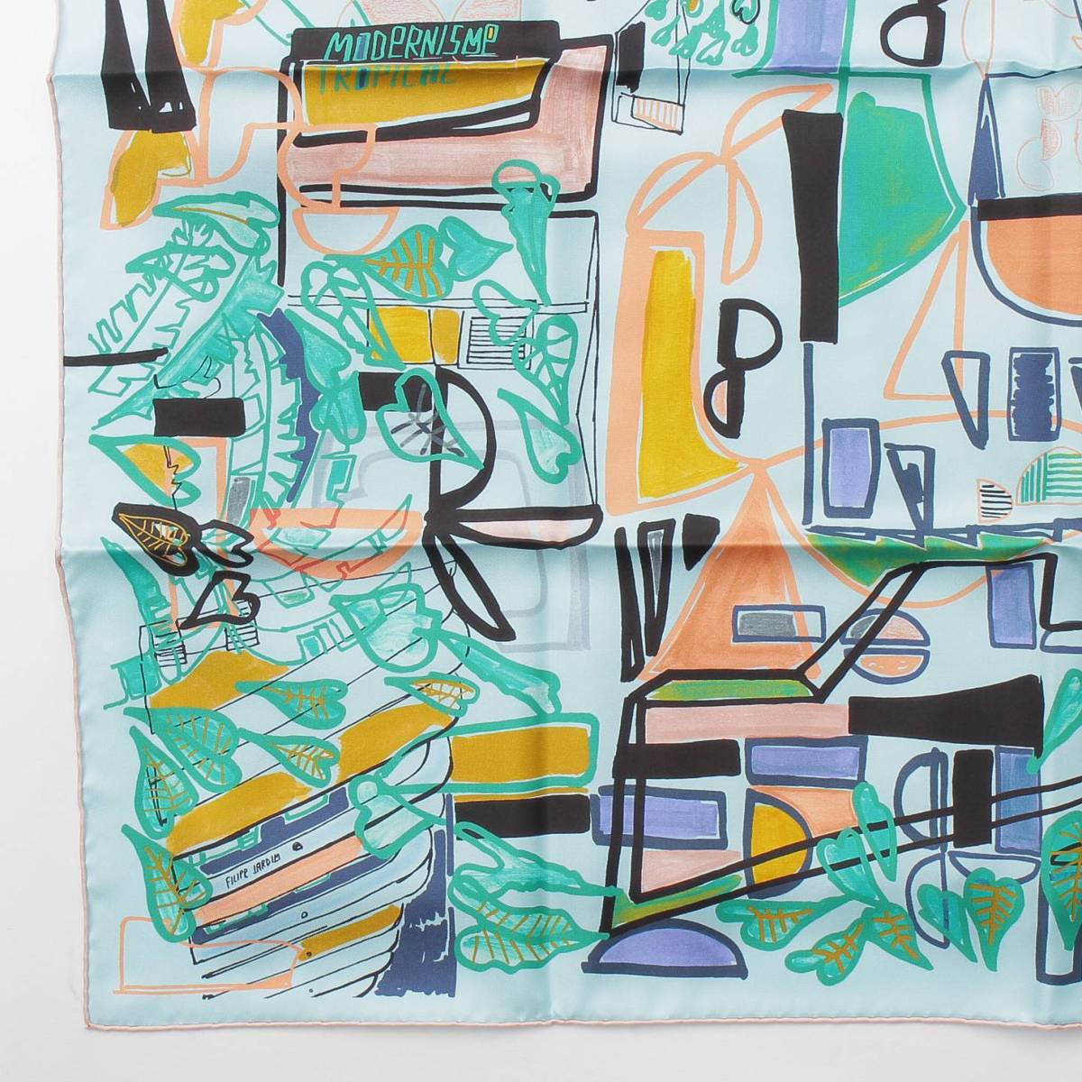 [Hermes] Hermes Carré 90 Modernisme tropical Silk scarf Aqua x green [Used] [Authenticated and guaranteed authentic] 212399