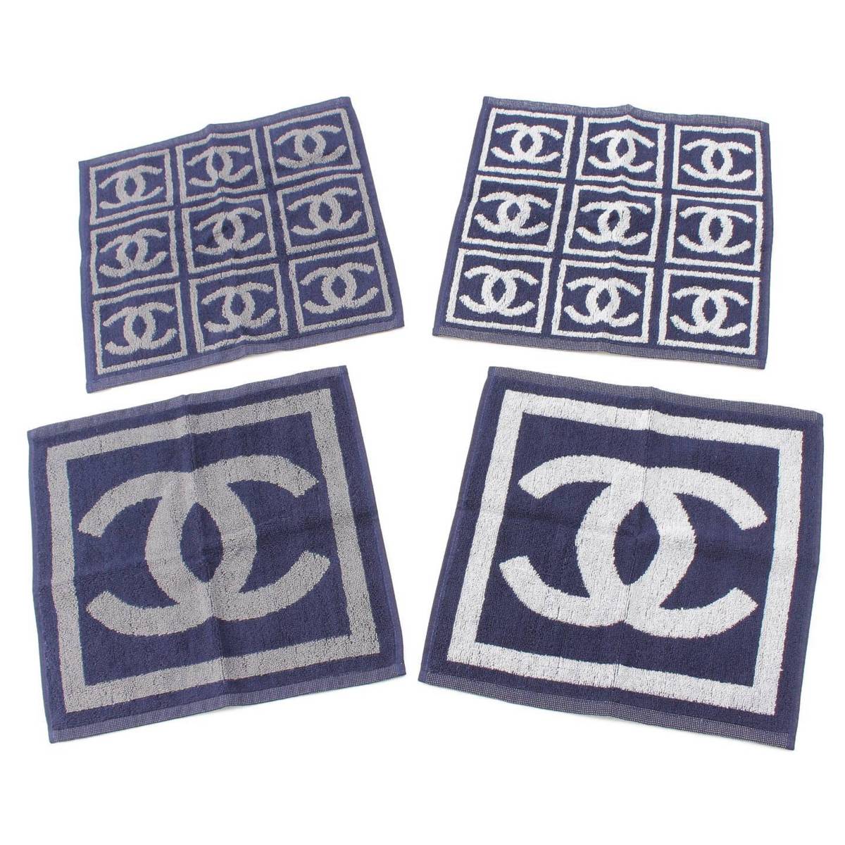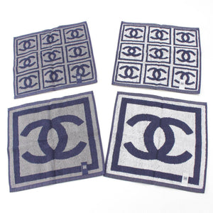 [Chanel] Chanel Sport COCO Mark Cotton Hand Towel 4-piece set Navy [Used] [Authenticated and Guaranteed Authentic] 212814