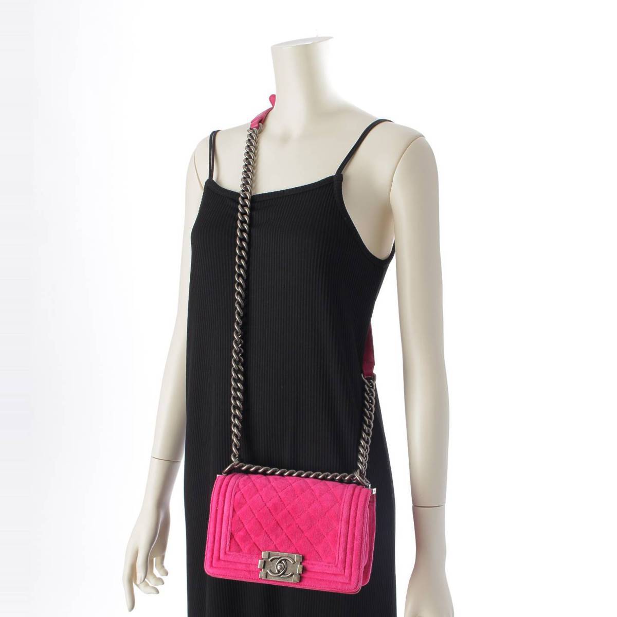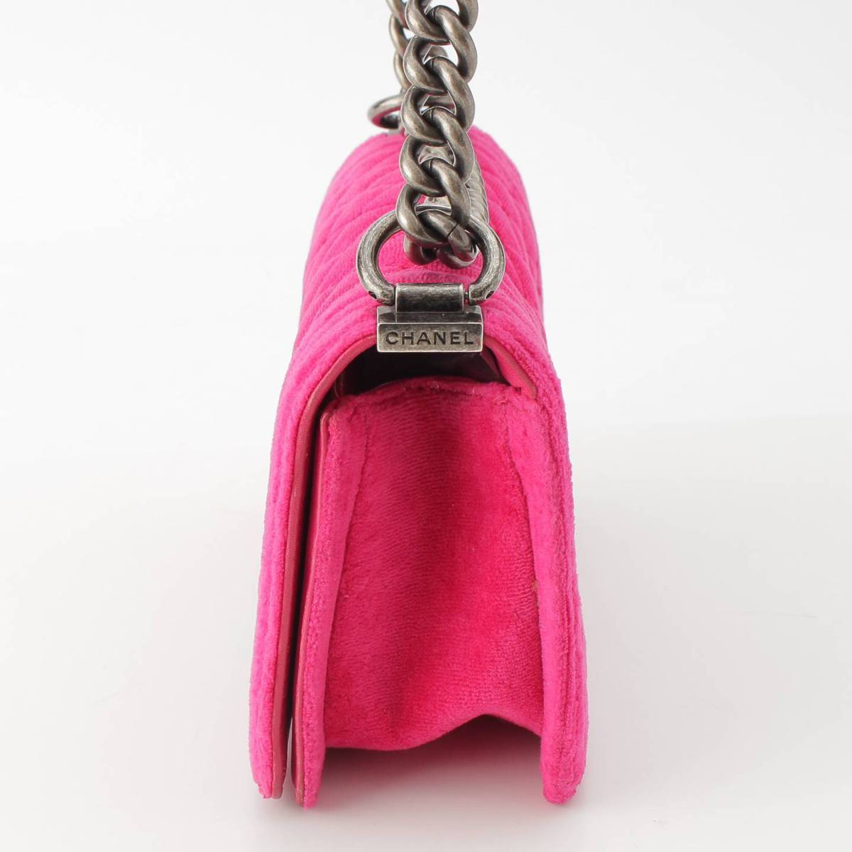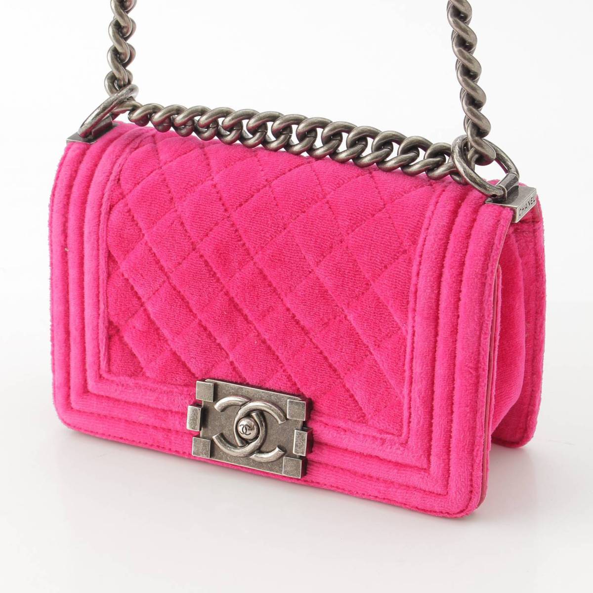 [Chanel] Chanel 18th series Boy Chanel 20 Velour Velvet Mini ChainShoulder Bag Pink [Used] [Authenticated and Guaranteed Authentic] 212975
