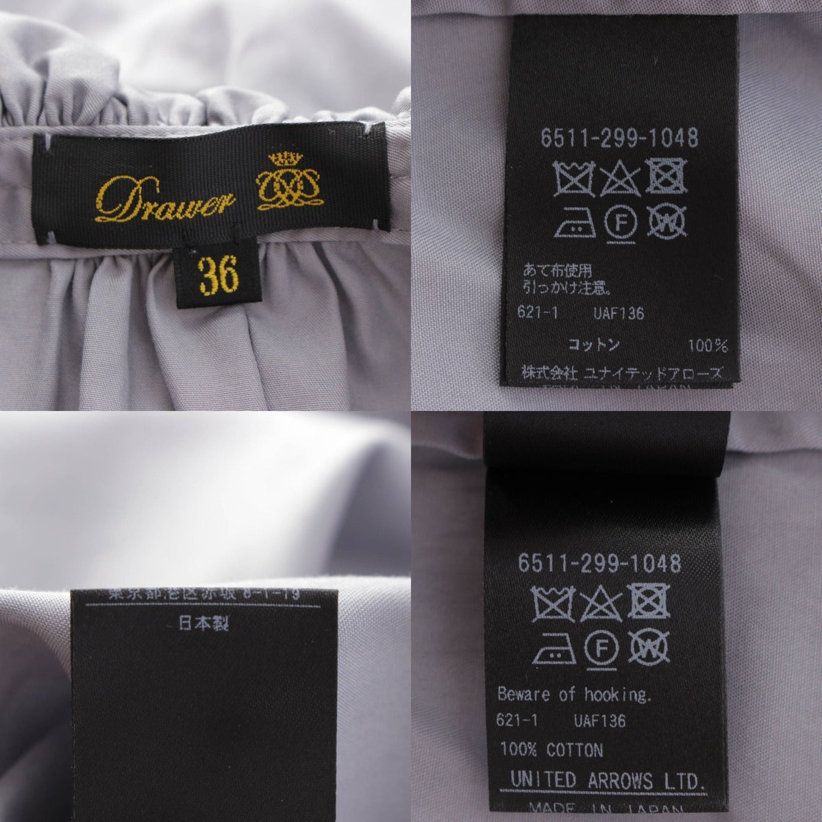 [Drawer] DRAWER Detachable Collar Ribbon Cotton Blouse Shirt 6511-299-1048 Gray Light Gray 36 [Used] [Authenticated and Guaranteed Authentic] 213265