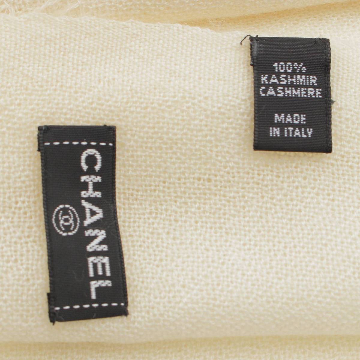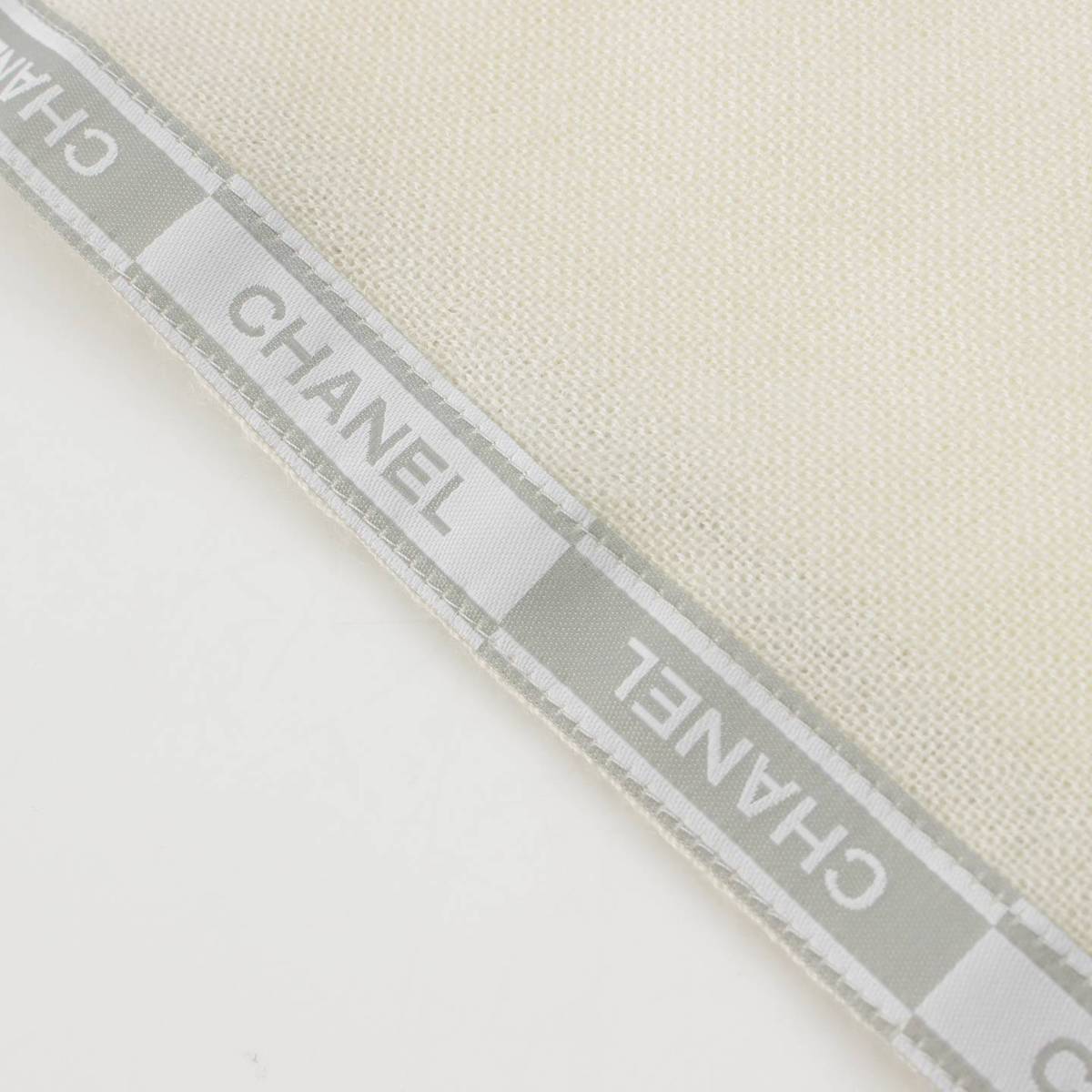 [Chanel] Chanel Logo Jacquard Cashmere Silk Stole Scarf Shawl White Silver [Used] [Authenticated and Guaranteed Authentic] 213285