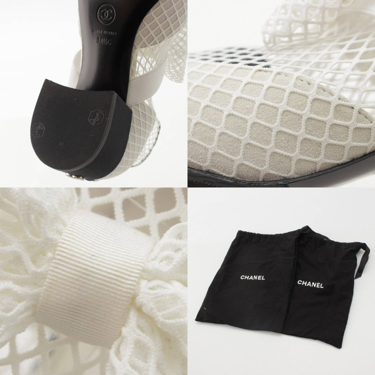 .detail {width:400px; font-size:12px;border-top:#000 2px solid; line-height:1.5em;border-bottom:#666 1px solid; margin-bottom:5px;}.detail .title{ padding:10px;border-bottom:#666 1px solid; background-color:#e3e3e3; margin:0;}.detail .text{ padding: 5px 10px;} Product Details Material: Mesh Color: White Accessories: Storage bag Damage: Stain on outsole, center of ribbon on left foot, etc. New reference price: yen *As this is a used item, there may be damage not listed on the product or accessories. Please note. Product condition A: Little signs of use, no noticeable scratches or damage Size: 38 1/2 C (around 10") Width: around 3.3" Height: around 7.8" Heel height: around 2.3" *Please allow for some error.