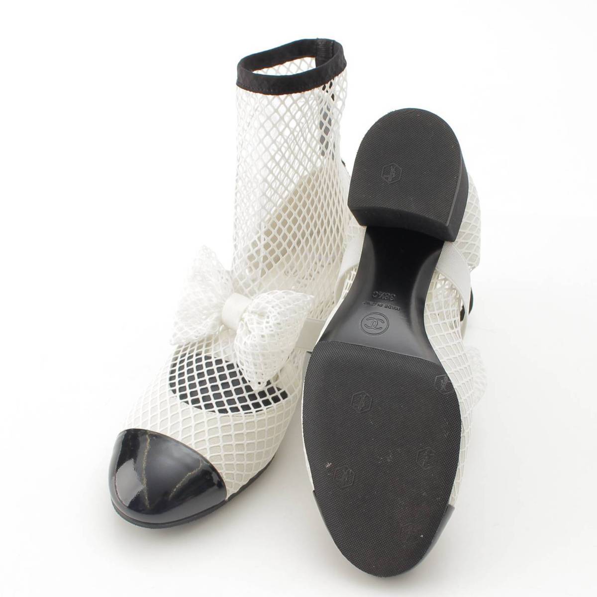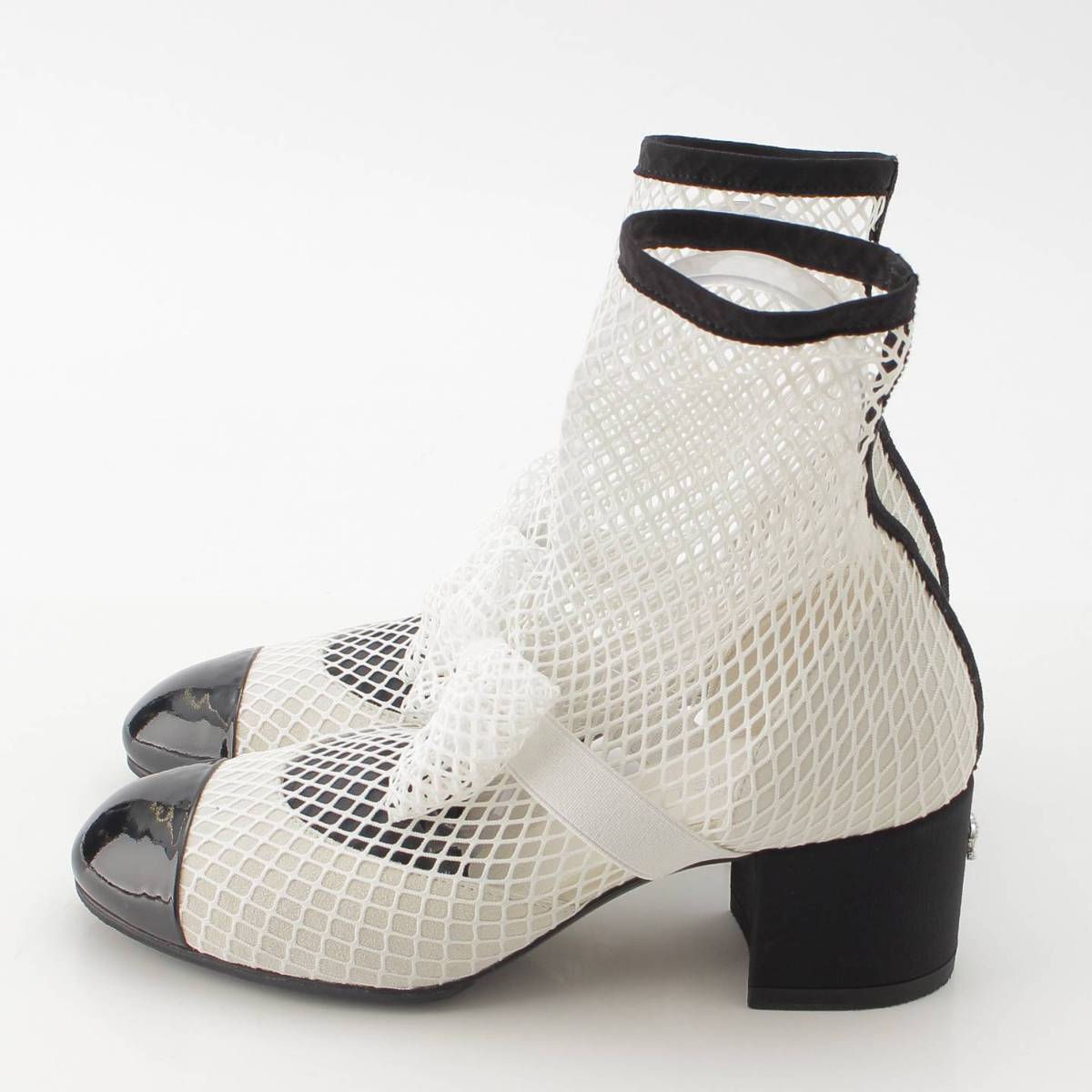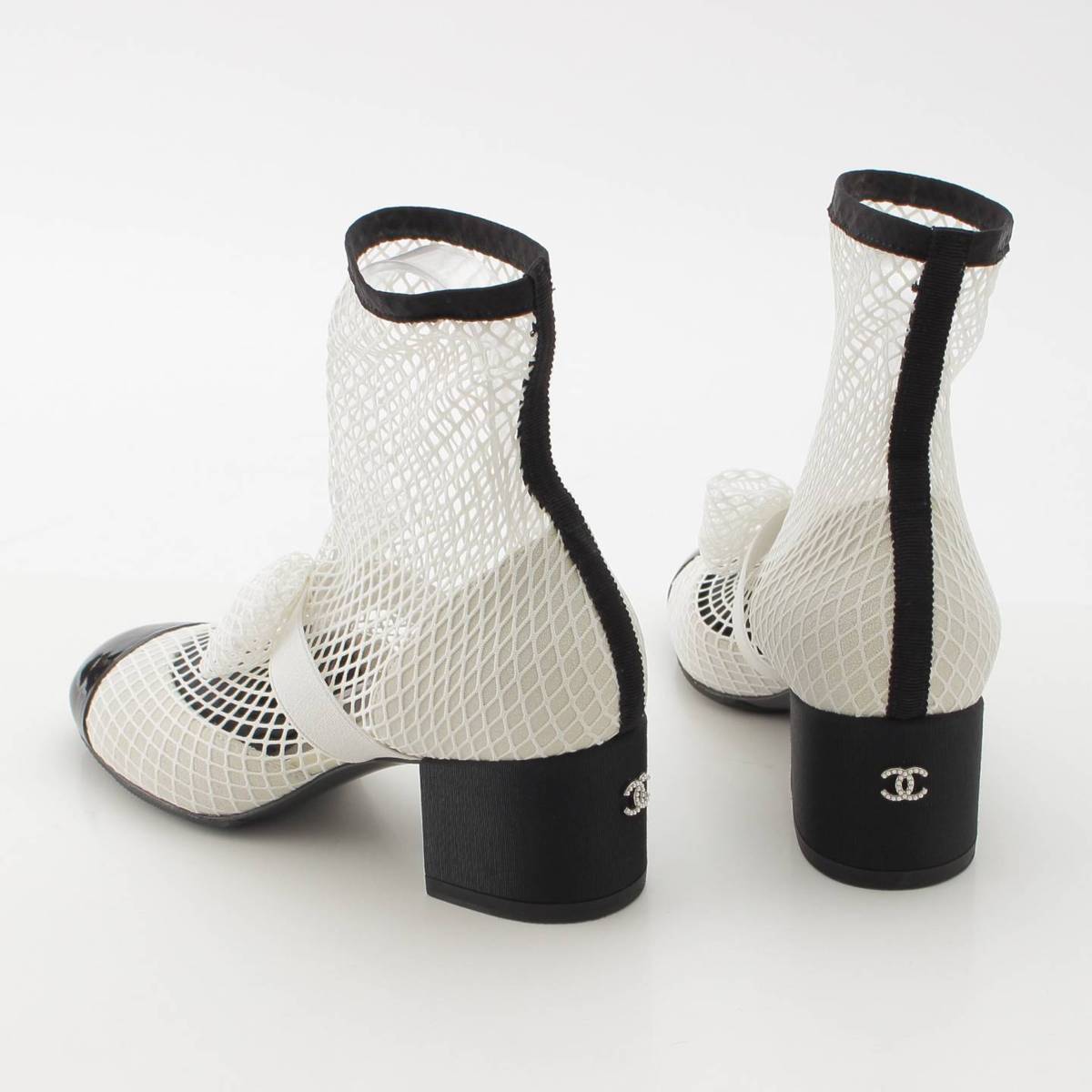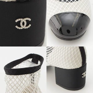 [Chanel] Chanel 23 COCO Mark Mary Jane Ribbon Mesh Sock Shoes White 38 1/2C [Used] [Authenticated and Guaranteed Authentic] 213355