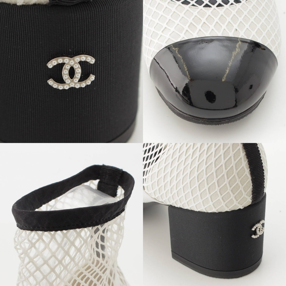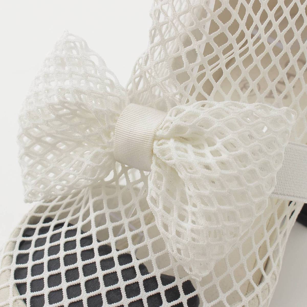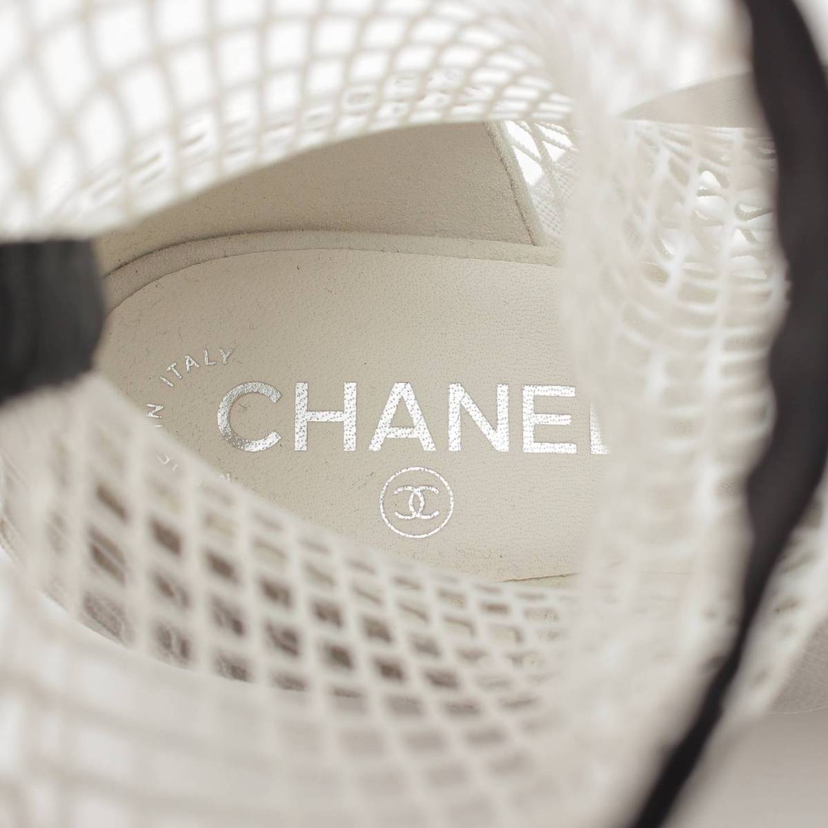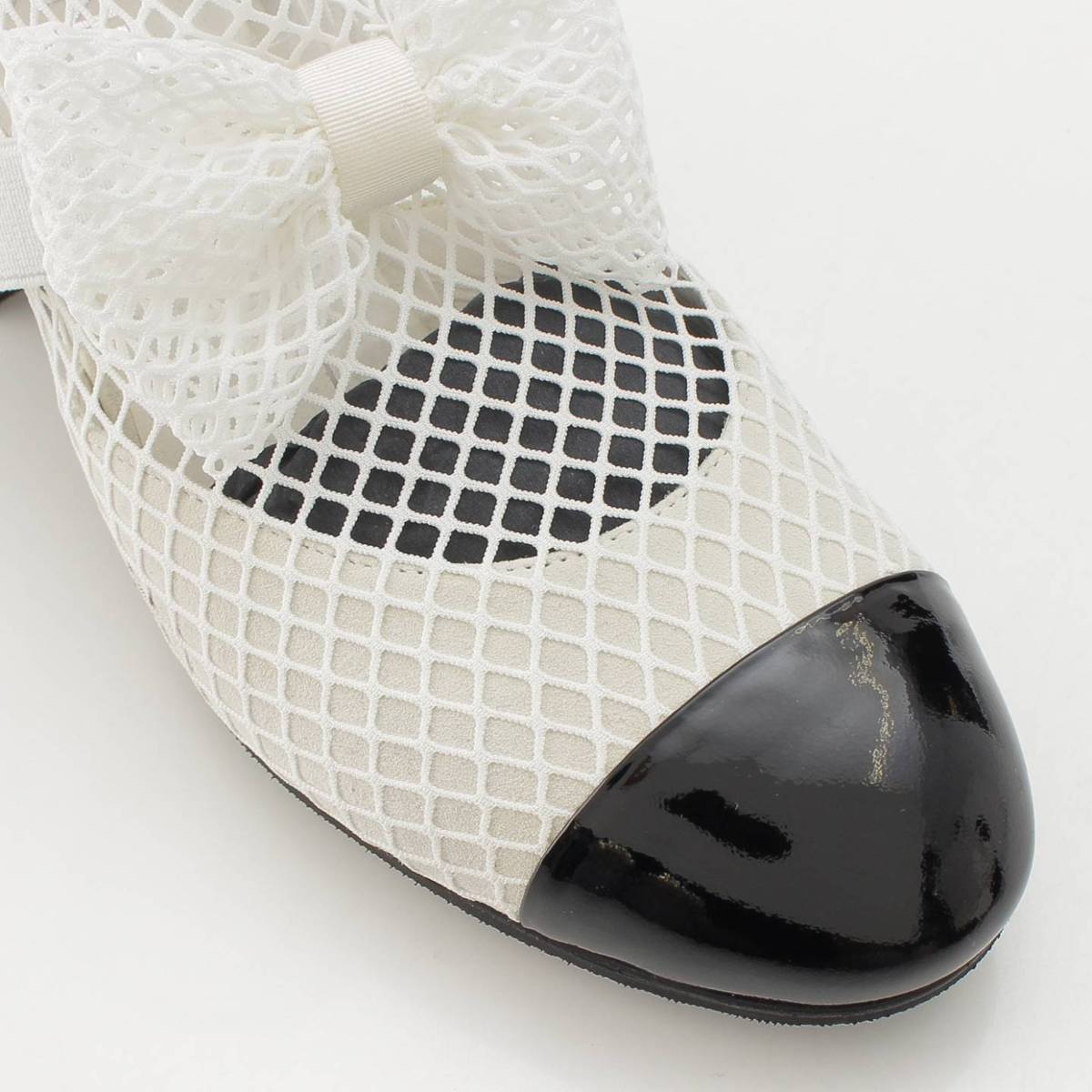 [Chanel] Chanel 23 COCO Mark Mary Jane Ribbon Mesh Sock Shoes White 38 1/2C [Used] [Authenticated and Guaranteed Authentic] 213355
