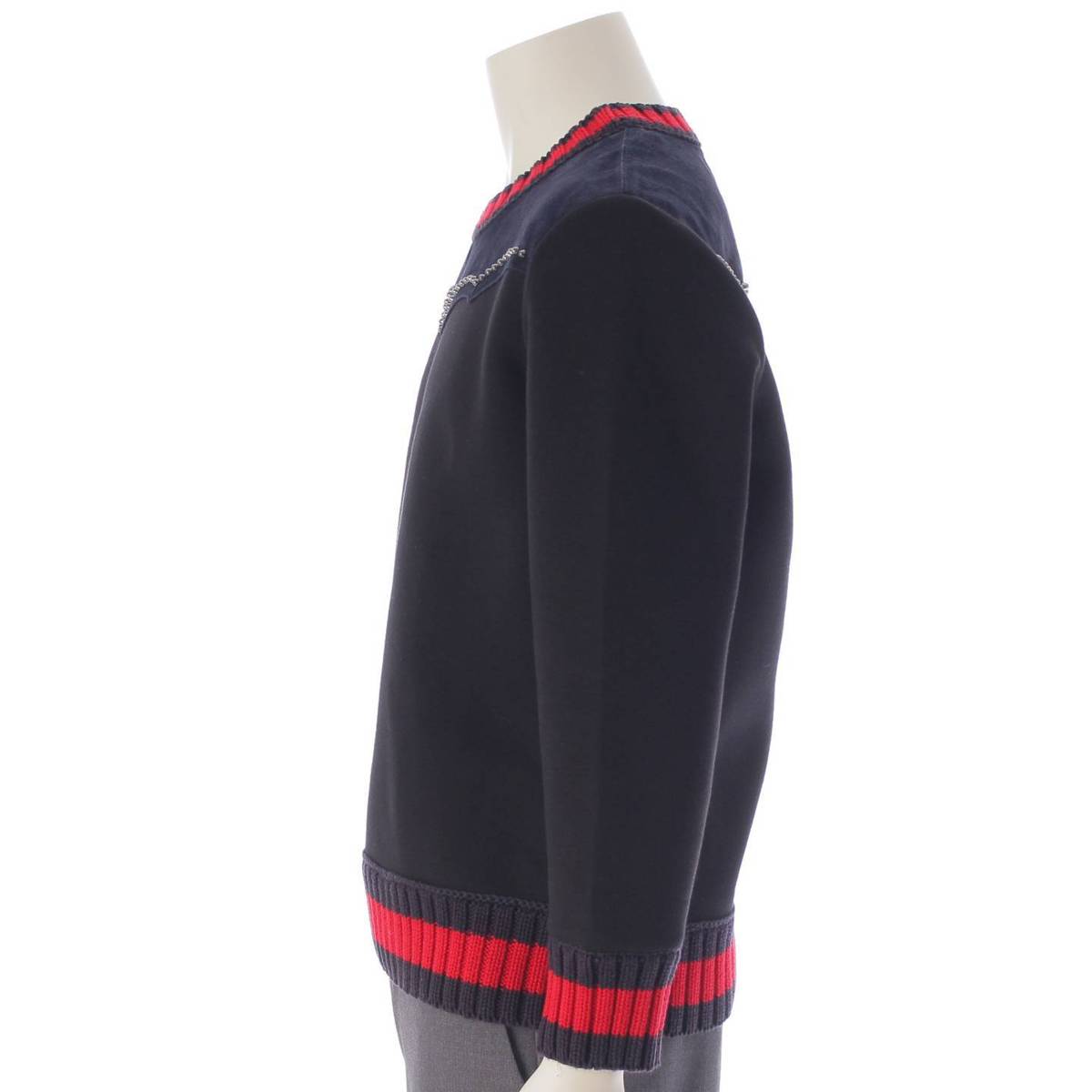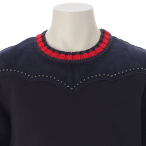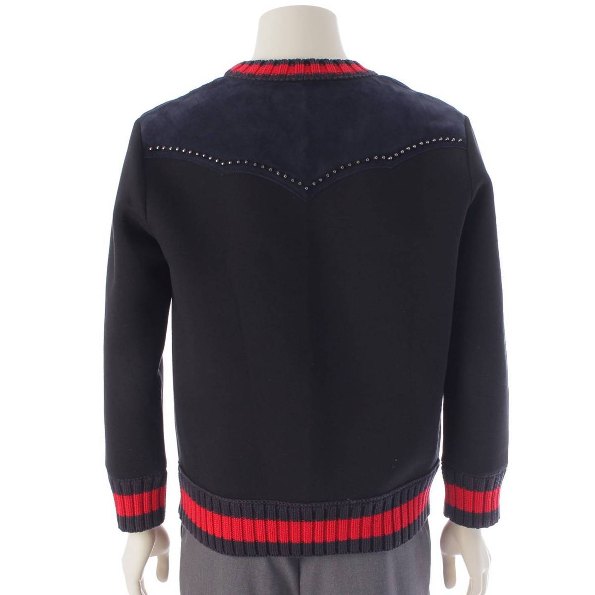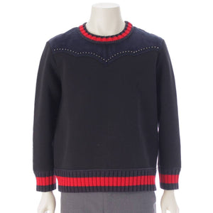 [Gucci] Gucci Men's Sweatshirt Suede Leather Switching Pullover 440151 Black Navy [Used] [Authenticated/Genuine Product Guaranteed] 213435