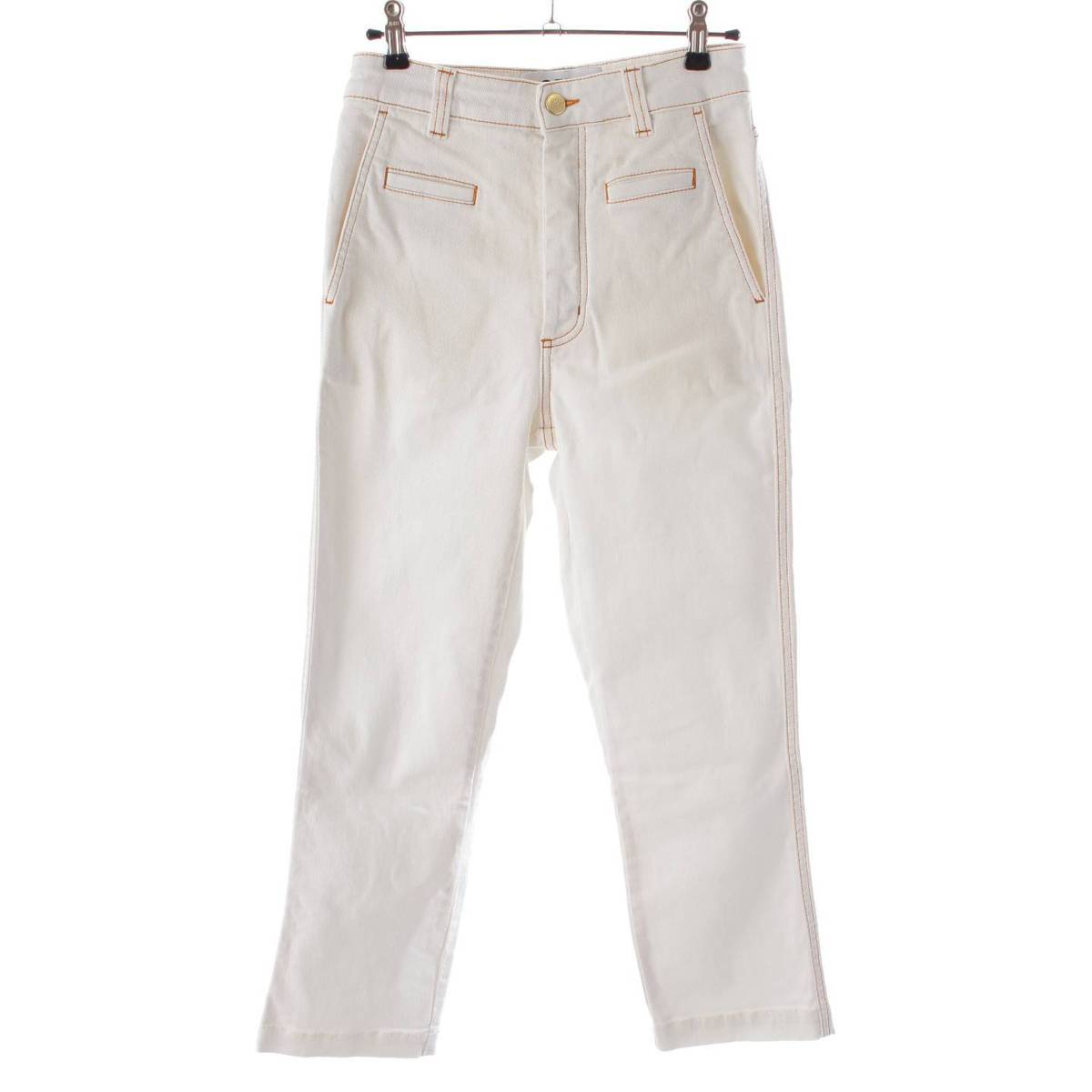 .detail {width:400px; font-size:12px;border-top:#000 2px solid; line-height:1.5em;border-bottom:#666 1px solid; margin-bottom:5px;}.detail .title{ padding:10px;border-bottom:#666 1px solid; background-color:#e3e3e3; margin:0;}.detail .text{ padding: 5px 10px;} Product details Material: Please see the composition tag Color: White Accessories: - Damage: Small scratches on the waist button metal There are some stains on the left side of the front hem Reference price when new: yen *As this is a used item, there may be damage that is not listed on the main unit or accessories. Please note. Product condition A: Little signs of use, no noticeable scratches or damage. Size: 32 Waist: around 12.6" Rise: around 11" Inseam: around 25.2" Thigh width: around 10.2" Hem width: around 7.1" *Measurements taken flat *Please allow for some error.