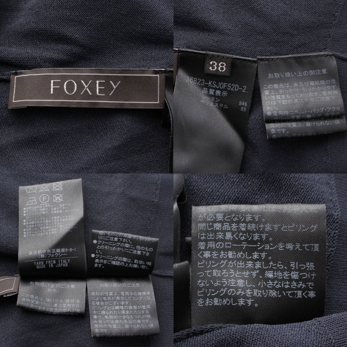 .detail {width:400px; font-size:12px;border-top:#000 2px solid; line-height:1.5em;border-bottom:#666 1px solid; margin-bottom:5px;}.detail .title{ padding:10px;border-bottom:#666 1px solid; background-color:#e3e3e3; margin:0;}.detail .text{ padding: 5px 10px;} Product details Material: Please see the composition tag Color: Navy Product number: 36823 Accessories: - Damage area: Fray on the surface hem Reference price when new: Yen * Since this is a used item, there may be damage that is not listed on the main body or accessories. Please note. Product condition A: Little signs of use, no noticeable scratches or damage. Size: 38 Shoulder width: around 16.9" Bust: around 16.1" Sleeve length: around 18.1" Length: around 15.7" *Measurements taken flat. Please allow for some error.