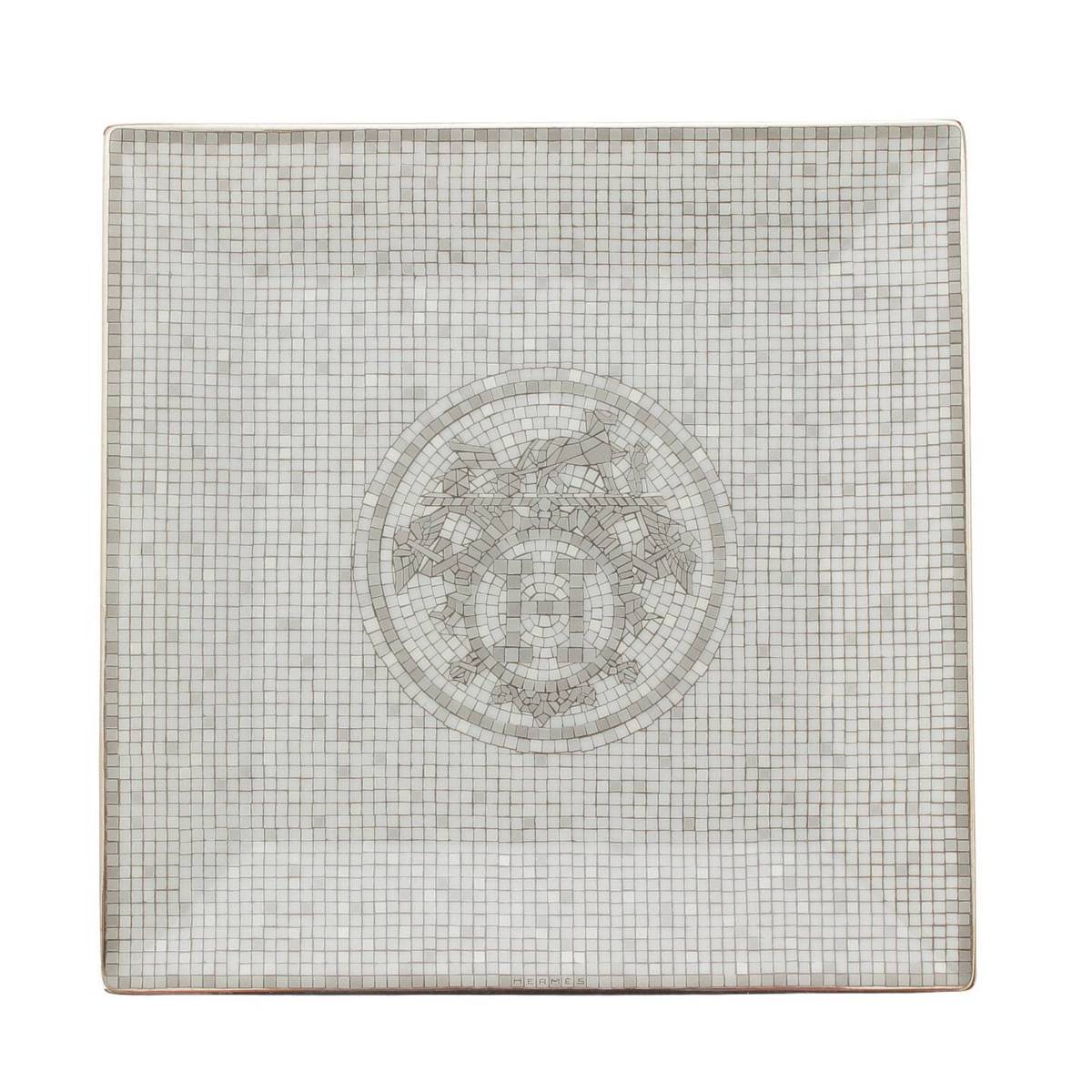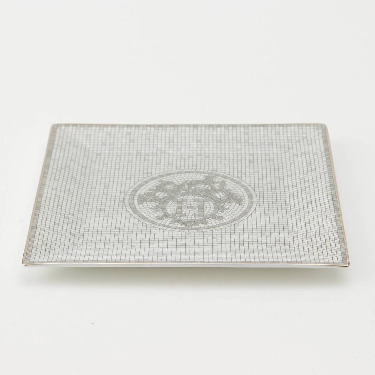 [Hermes] Hermes Mosaic Vinquatre Square Plate Tableware Tray Accessory Platinum [Used] [Authenticated and Guaranteed Authentic] 213828