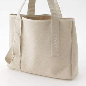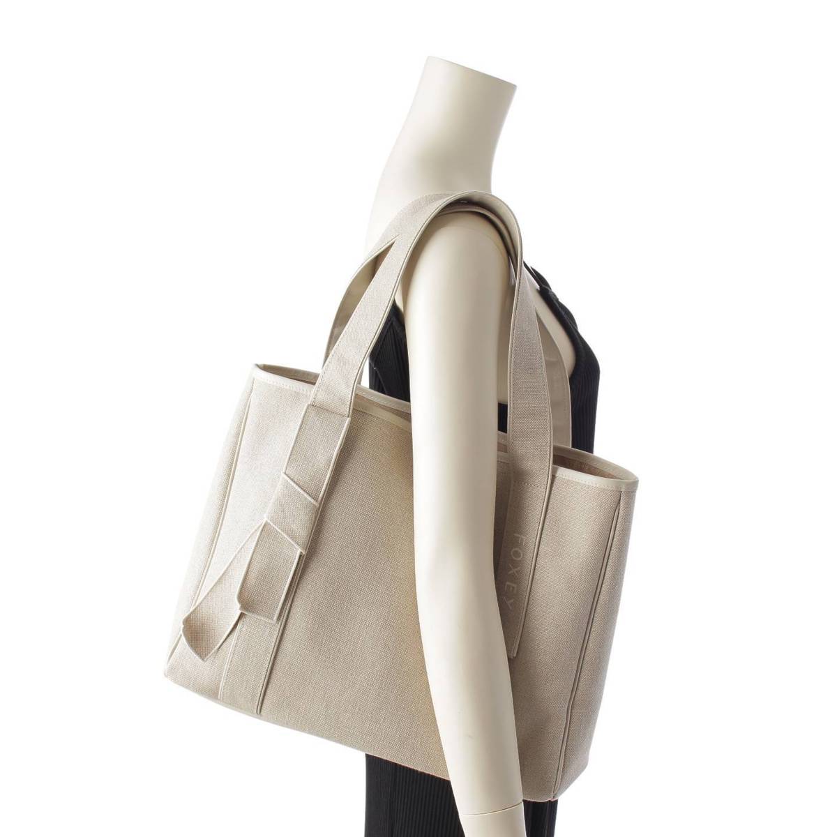 [Foxey] Foxey Anytime Tote Canvas x Leather Anytime Tote Bag 42136 Beige [Used] [Authenticated and Guaranteed Authentic] 214029