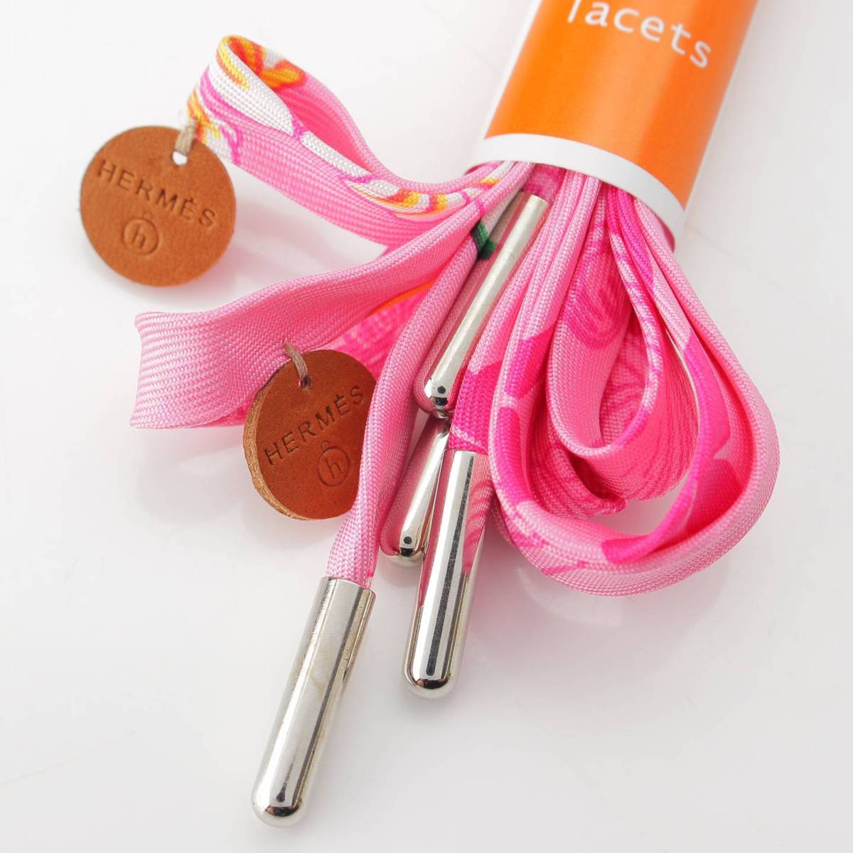 [Hermes] Hermes Petite H Shoelaces Silk Shoelace Charm Pink Set of 2 33.5" Unused [Used] [Authenticated and Guaranteed Authentic] 214108