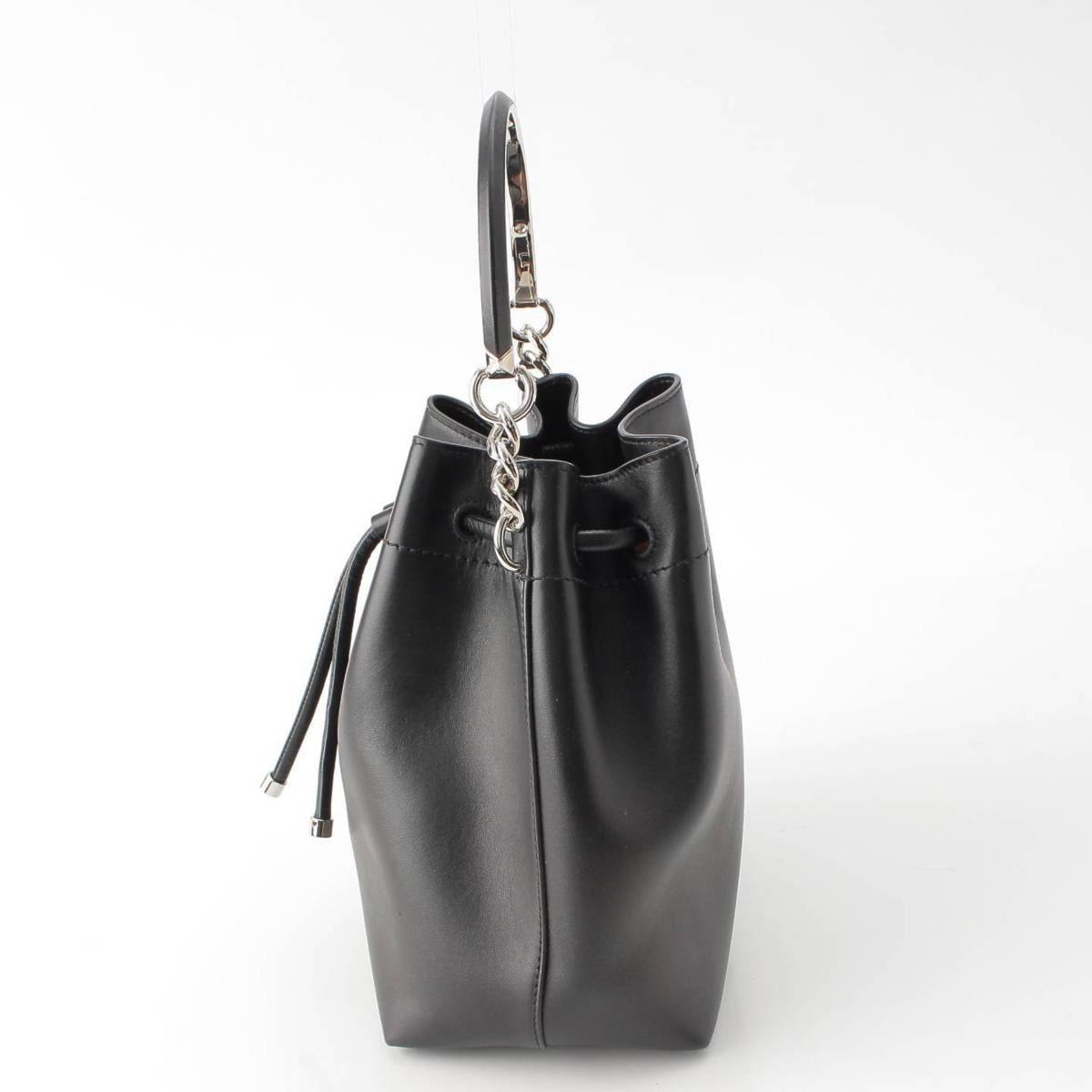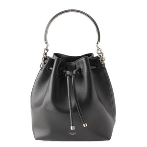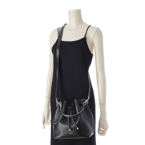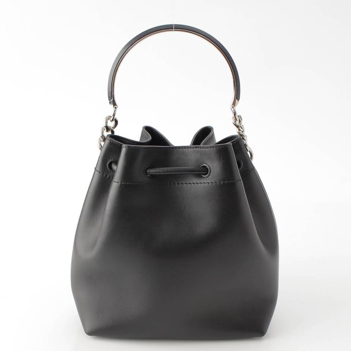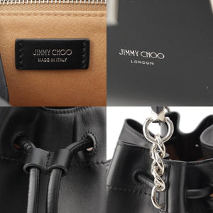[Jimmy Choo] Jimmy Choo Bonbon Bucket Silver Metal Calfskin 2WAY Hand Shoulder Bag Black [Used] [Authenticated and Guaranteed Authentic] 214357