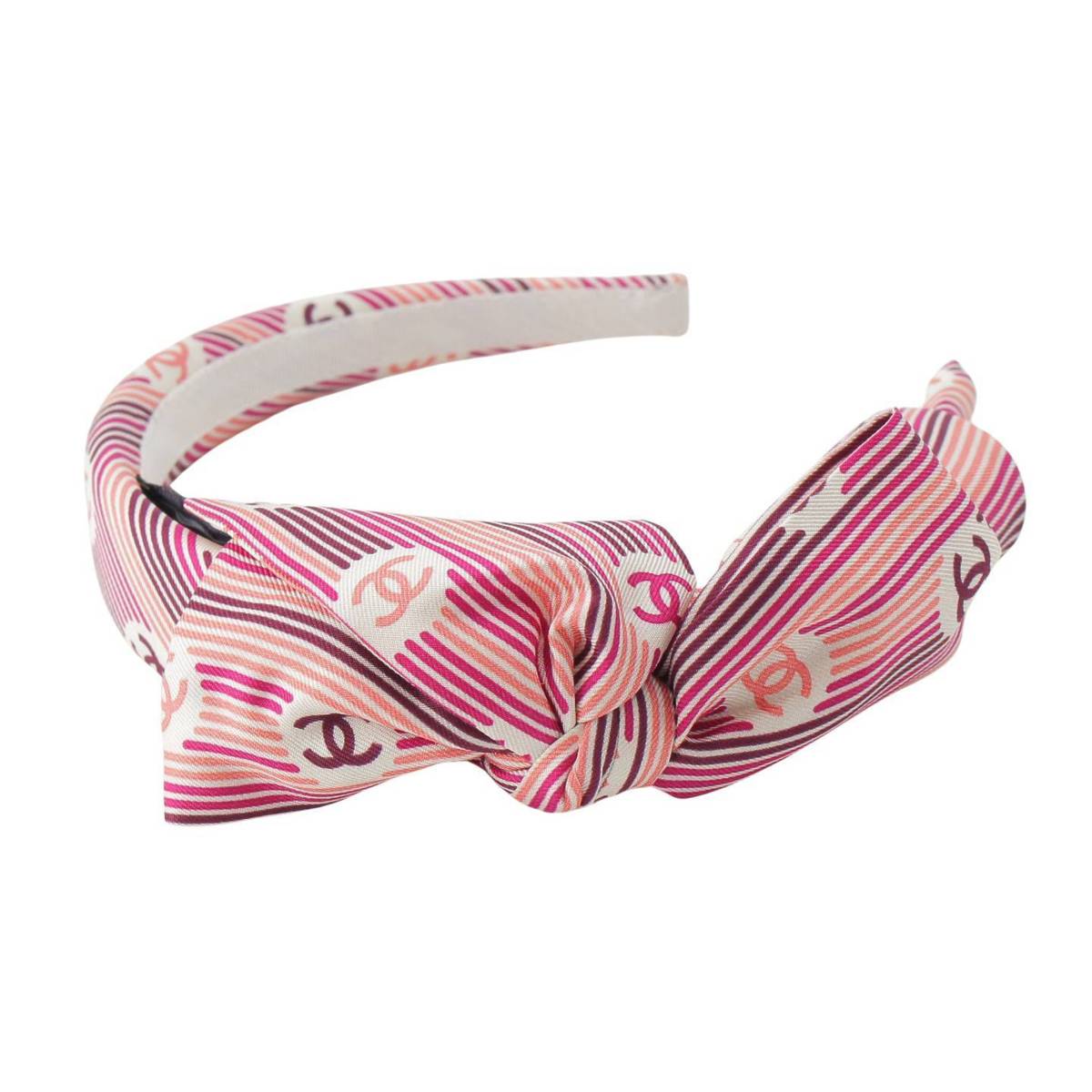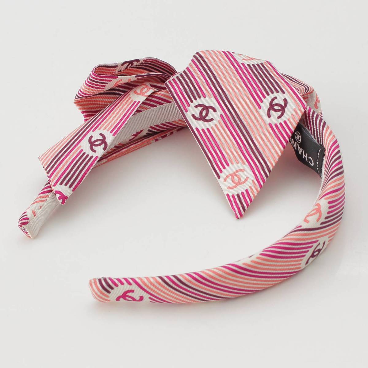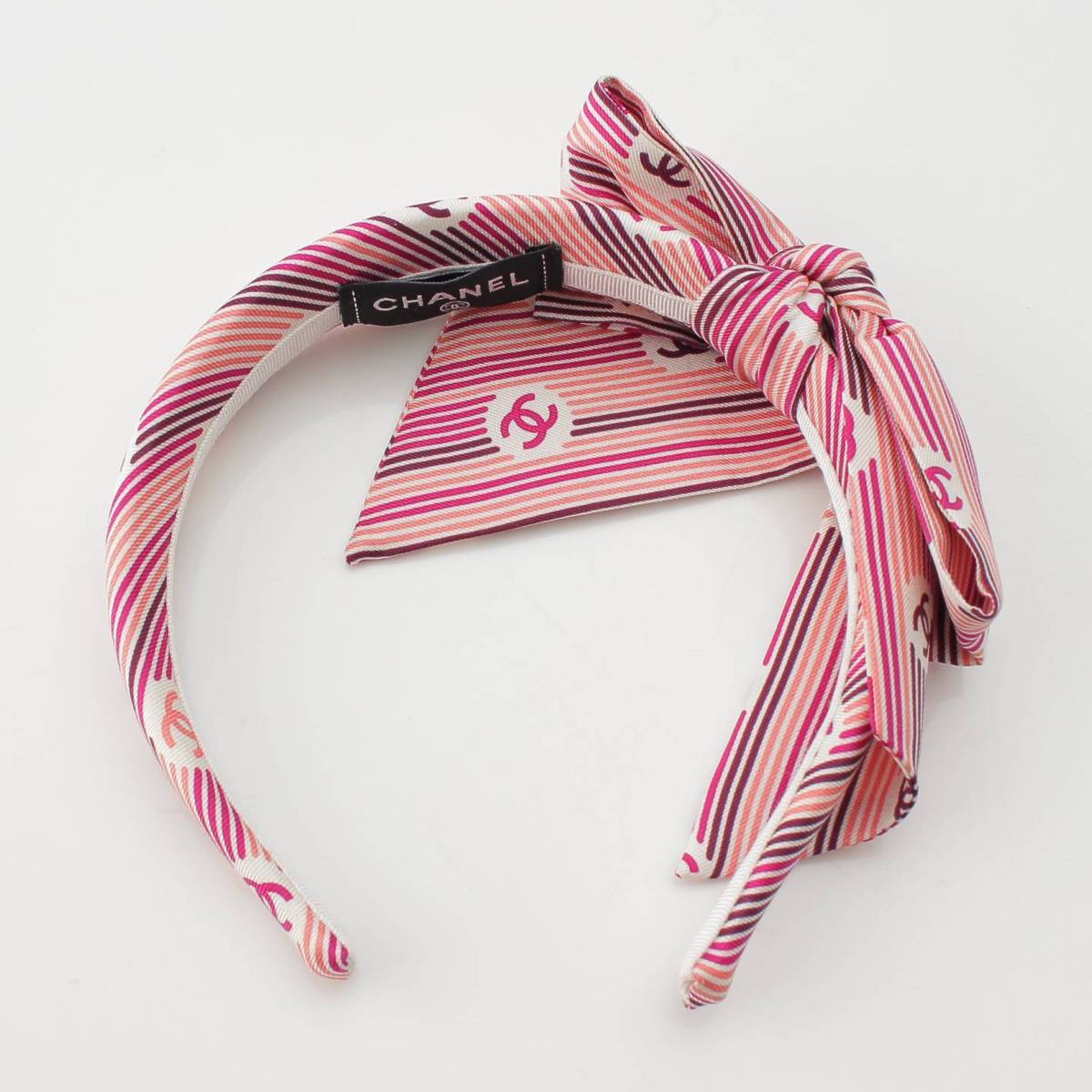 [Chanel] Chanel COCO Mark Stripe Ribbon Headband Hair Accessory Pink [Used] [Authenticated and Guaranteed Authentic] 214361