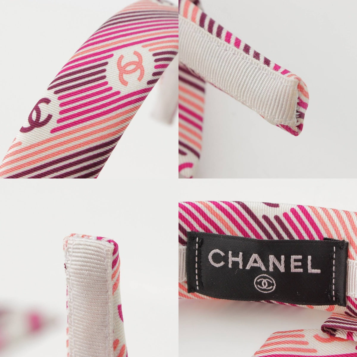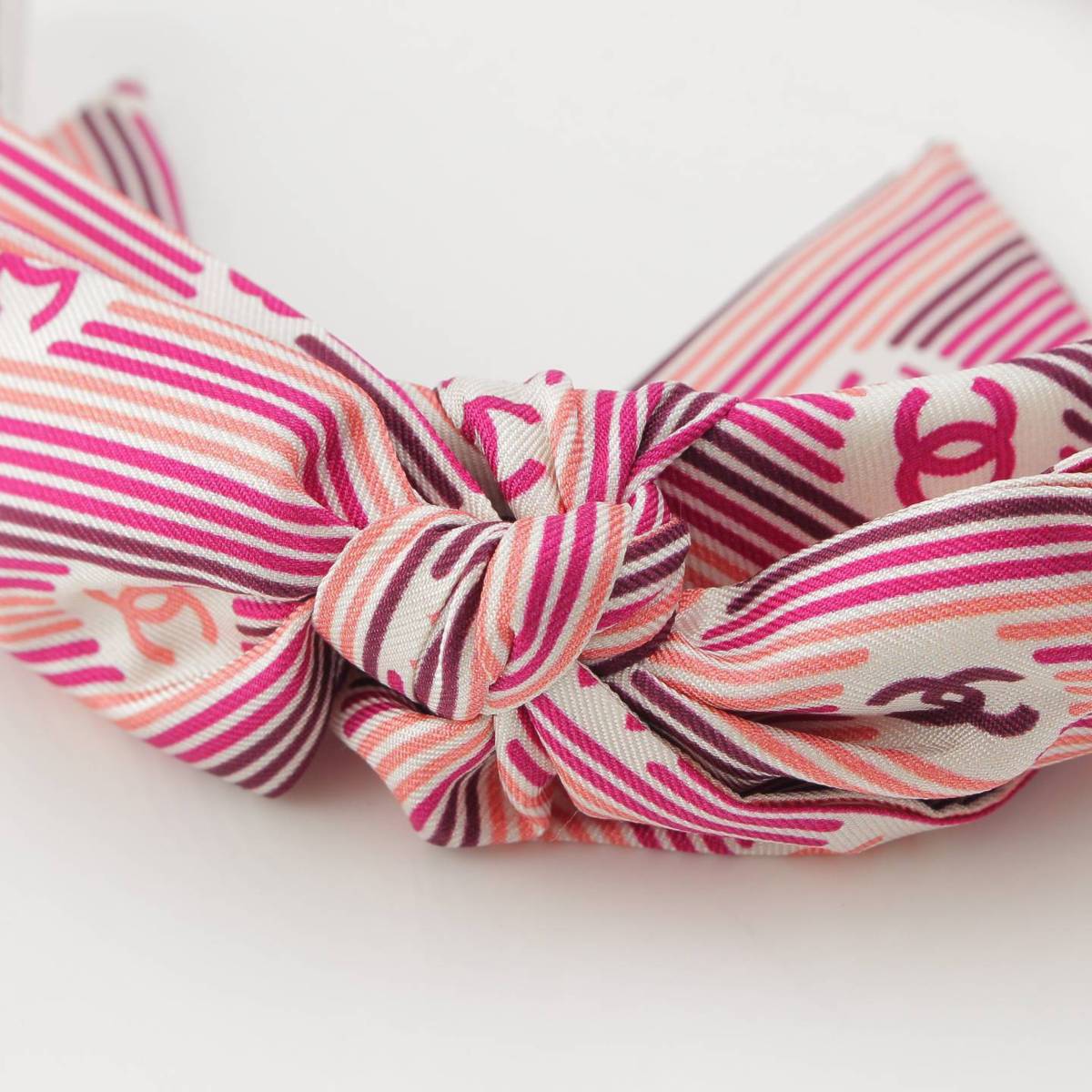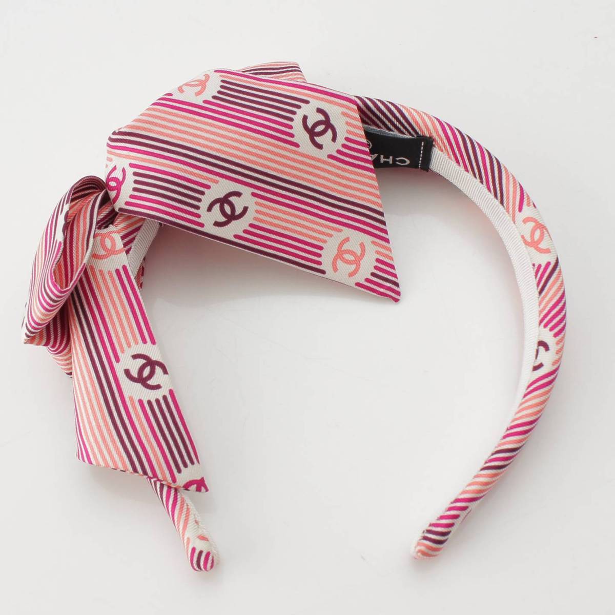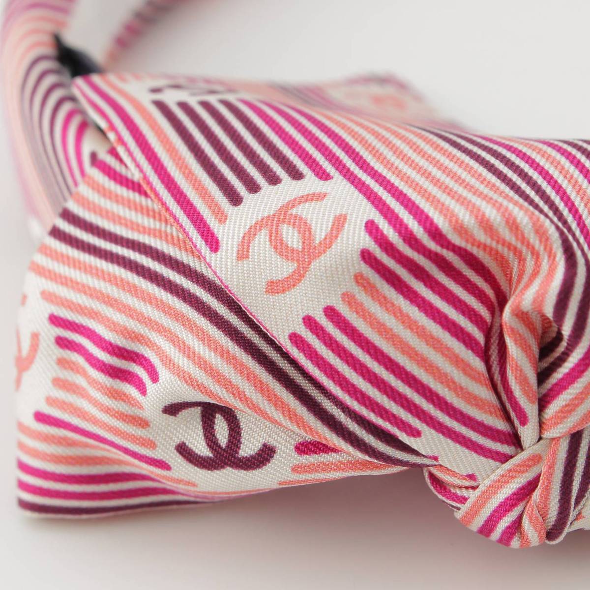 [Chanel] Chanel COCO Mark Stripe Ribbon Headband Hair Accessory Pink [Used] [Authenticated and Guaranteed Authentic] 214361