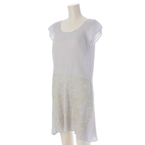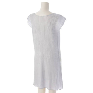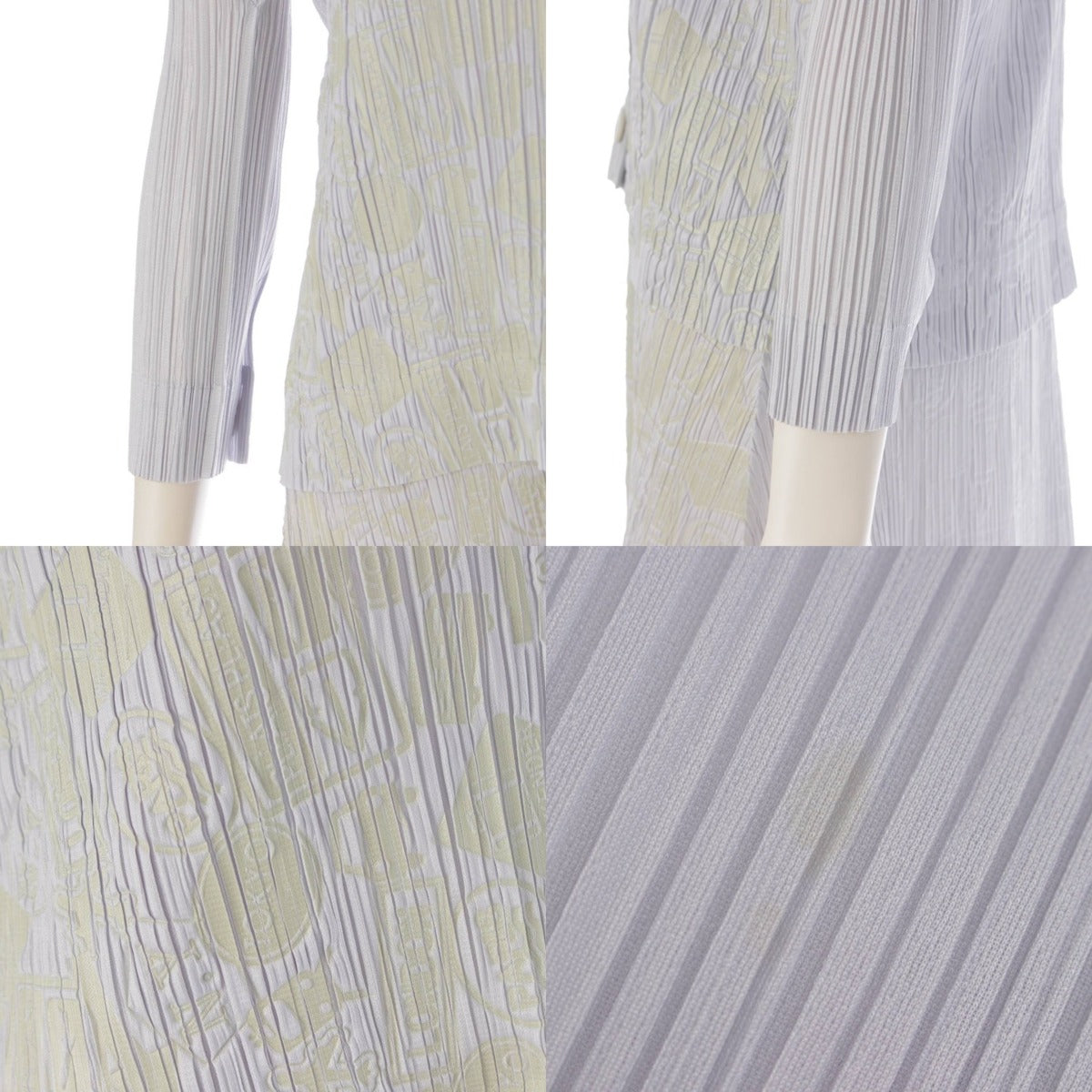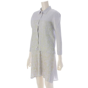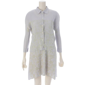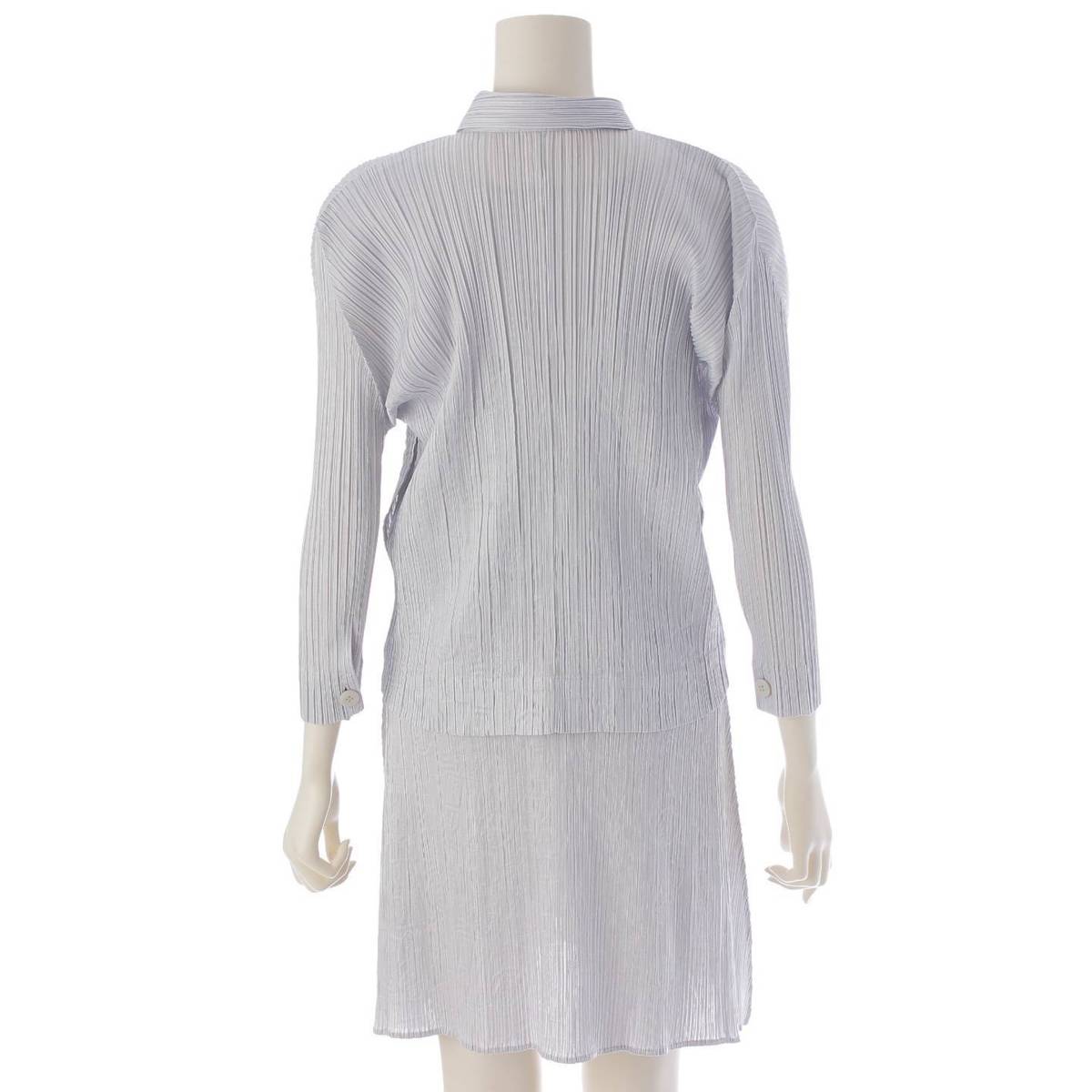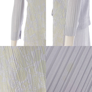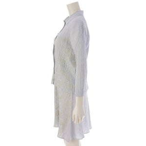 [Pleated Please Issey Miyake] PLEATS PLEASE ISSEY Embossed Traffic Stamp Jacket and Dress Ensemble Light Gray 3 [Used] [Authenticated and Guaranteed Authentic] 215140