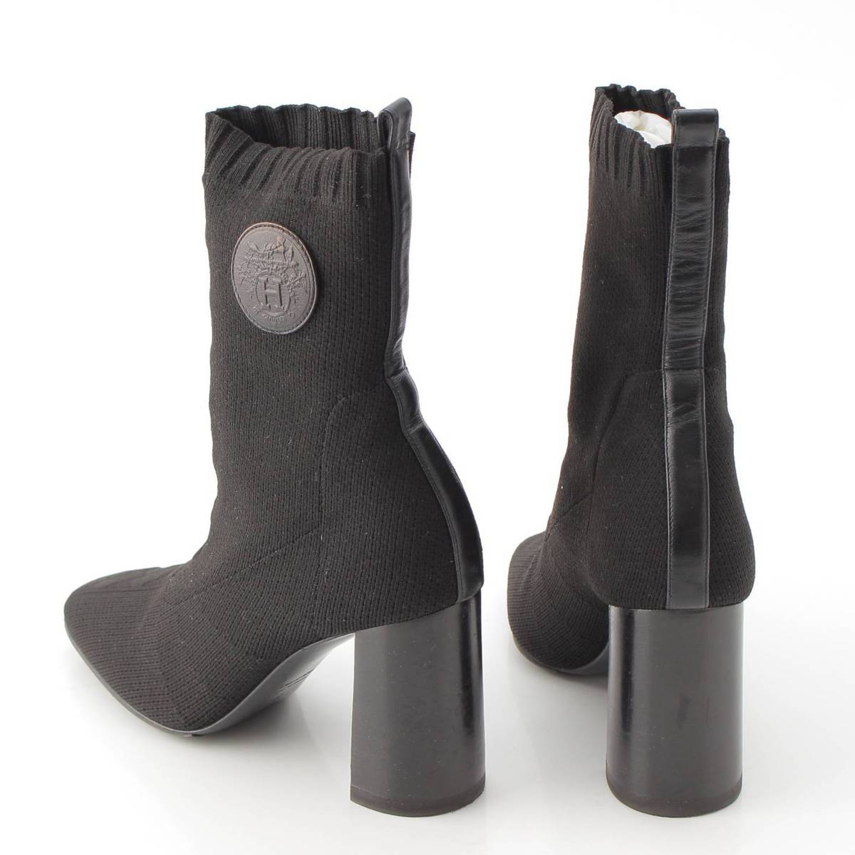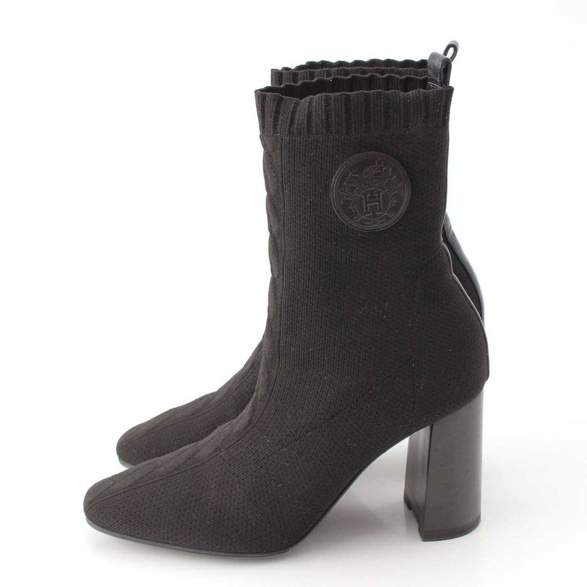 [Hermes] Hermes Volver 60 Knit Heel Boots Black 38 [Used] [Authenticated and Guaranteed Authentic] 215183