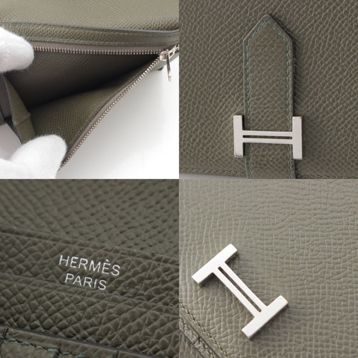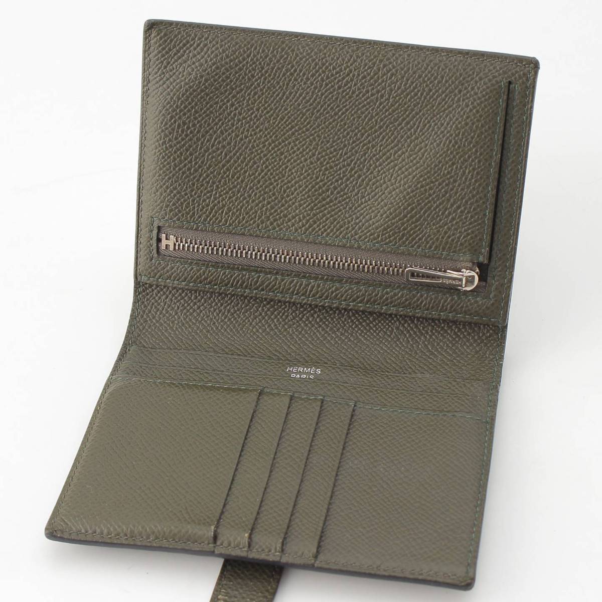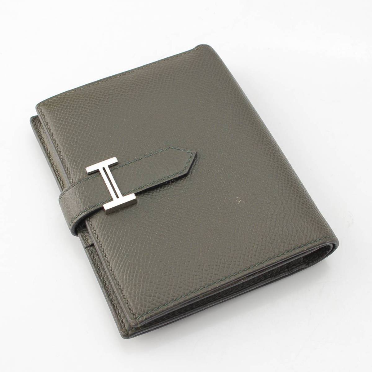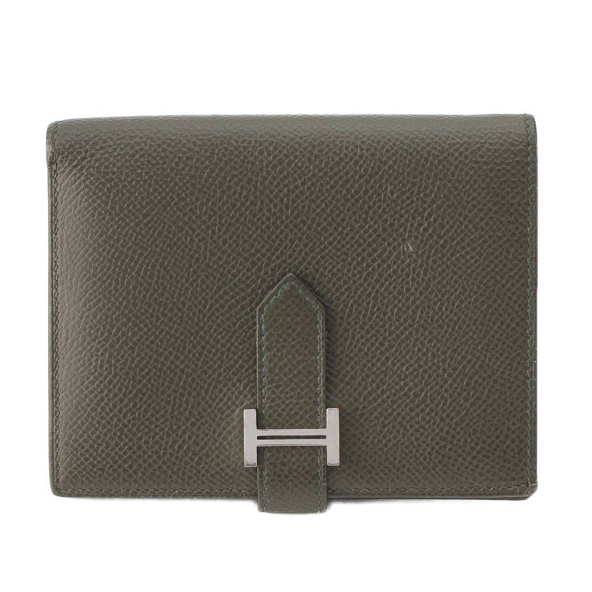 [Hermes] Hermes Z engraved Bearn Compact Epsom Wallet Bifold Wallet Vert Gris [Used] [Authenticated and genuine product guaranteed] 215225