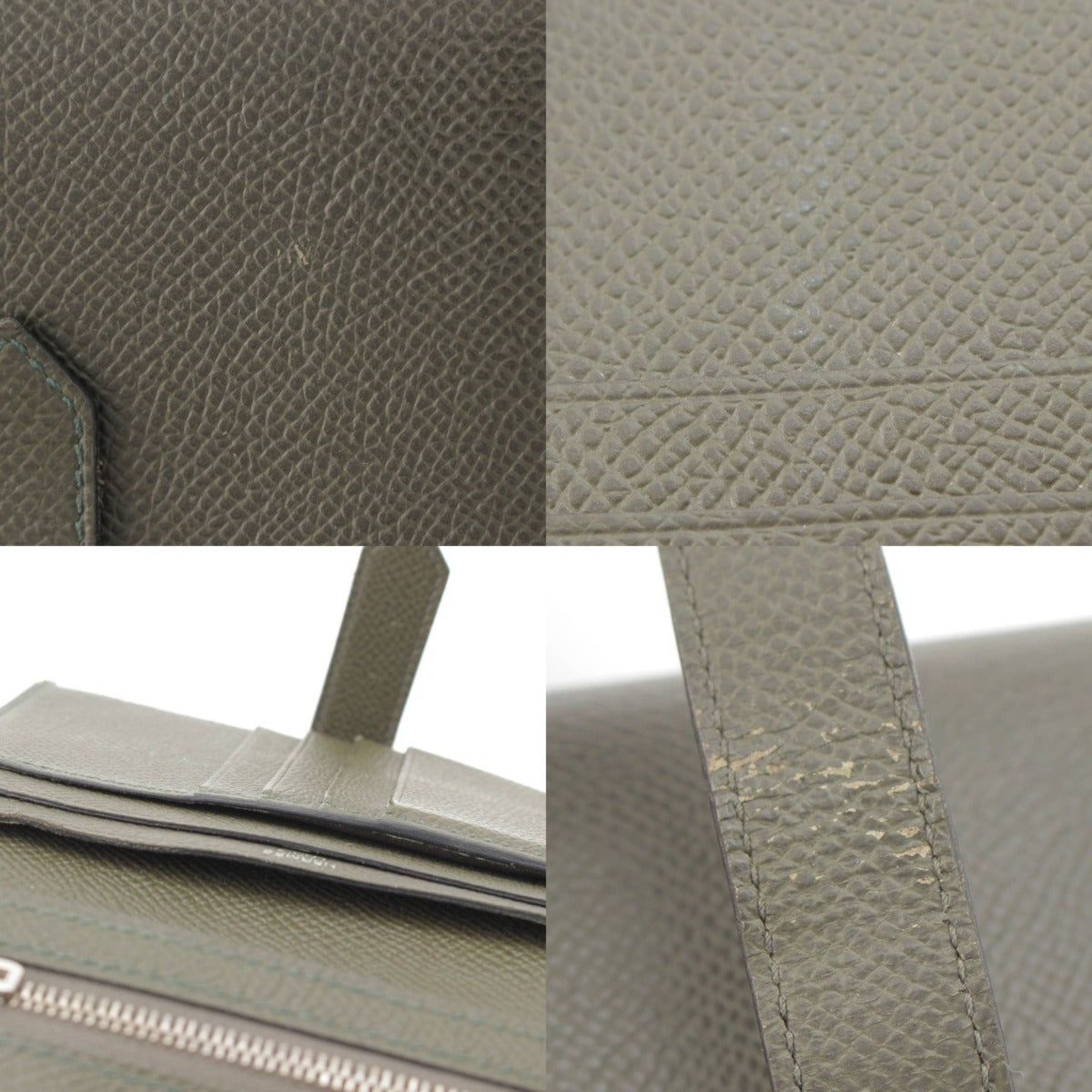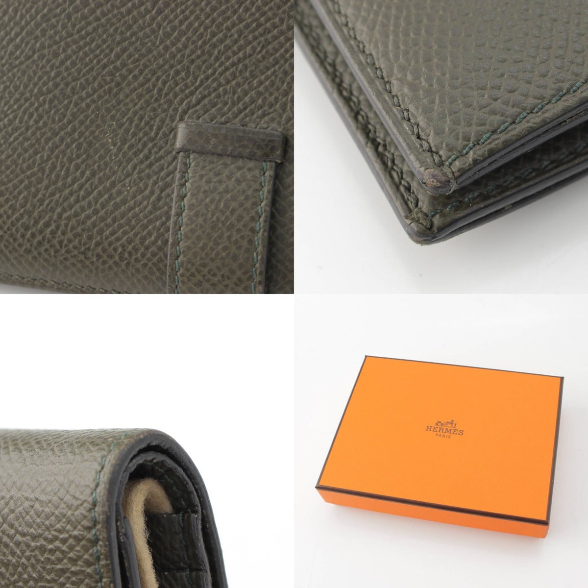 .detail {width:400px; font-size:12px;border-top:#000 2px solid; line-height:1.5em;border-bottom:#666 1px solid; margin-bottom:5px;}.detail .title{ padding:10px;border-bottom:#666 1px solid; background-color:#e3e3e3; margin:0;}.detail .text{ padding: 5px 10px;} Product Details Material: Epsom Color: Vert Gris x Silver Metal Opening: Flap Pocket (Inner): Coin Pocket x 1 Billfold x 1 Multi Pocket x 4 Card Case x 4 Accessories: Box Manufacturing stamp: Z stamp Damage area: HMetal has scratches and scuffs on the corners, bottom left of the front, InnerCard Case, and the back of the flap. InnerCard There are card marks on the case. New reference price: JPY. *As this is a used item, there may be damage to the main unit or accessories that is not listed. Please note. Product condition AB: Slightly used, no noticeable scratches or damage, but inferior to A rank. Size: Width: around 4.6" Height: around 3.5" Depth: around 0.8" *Please allow for some error.