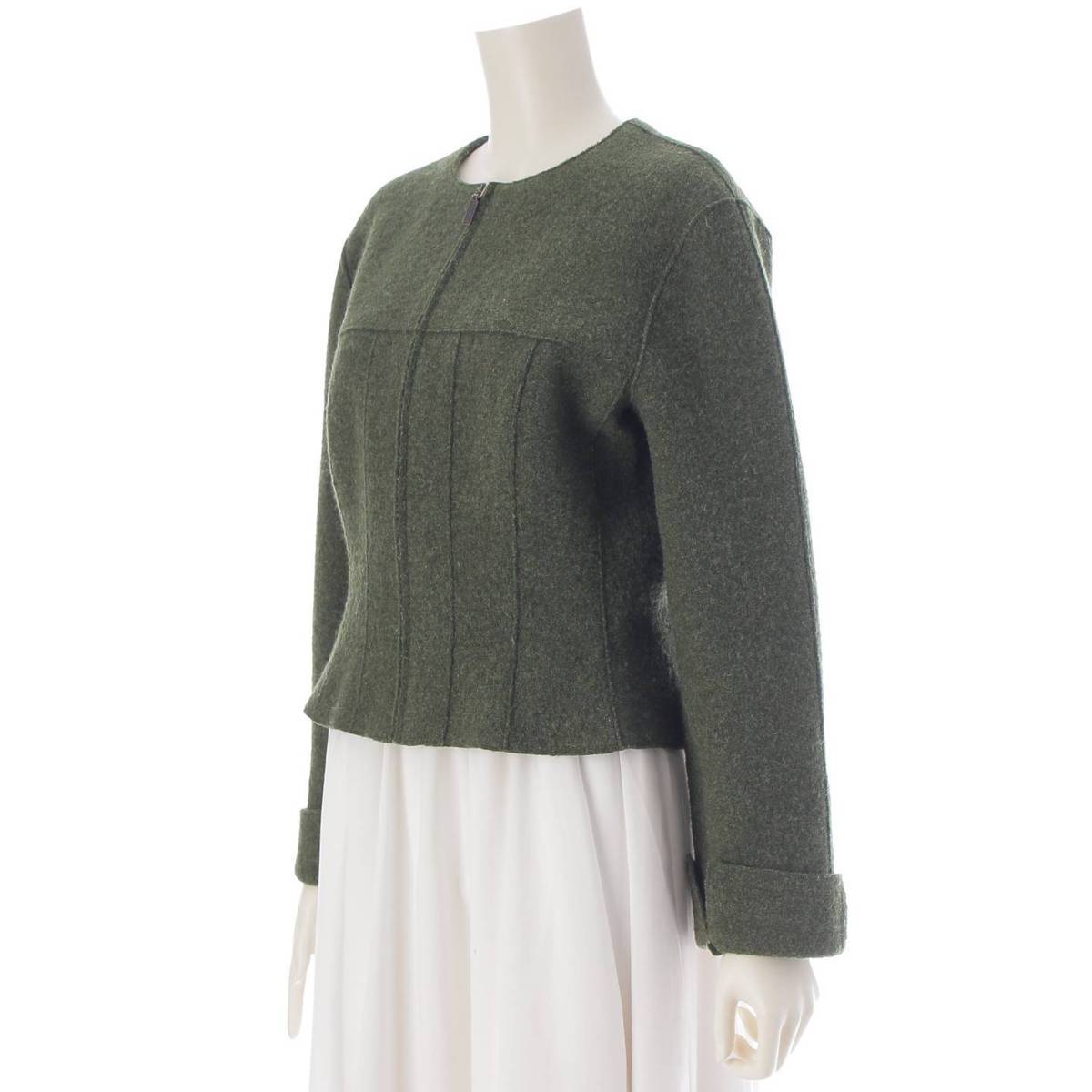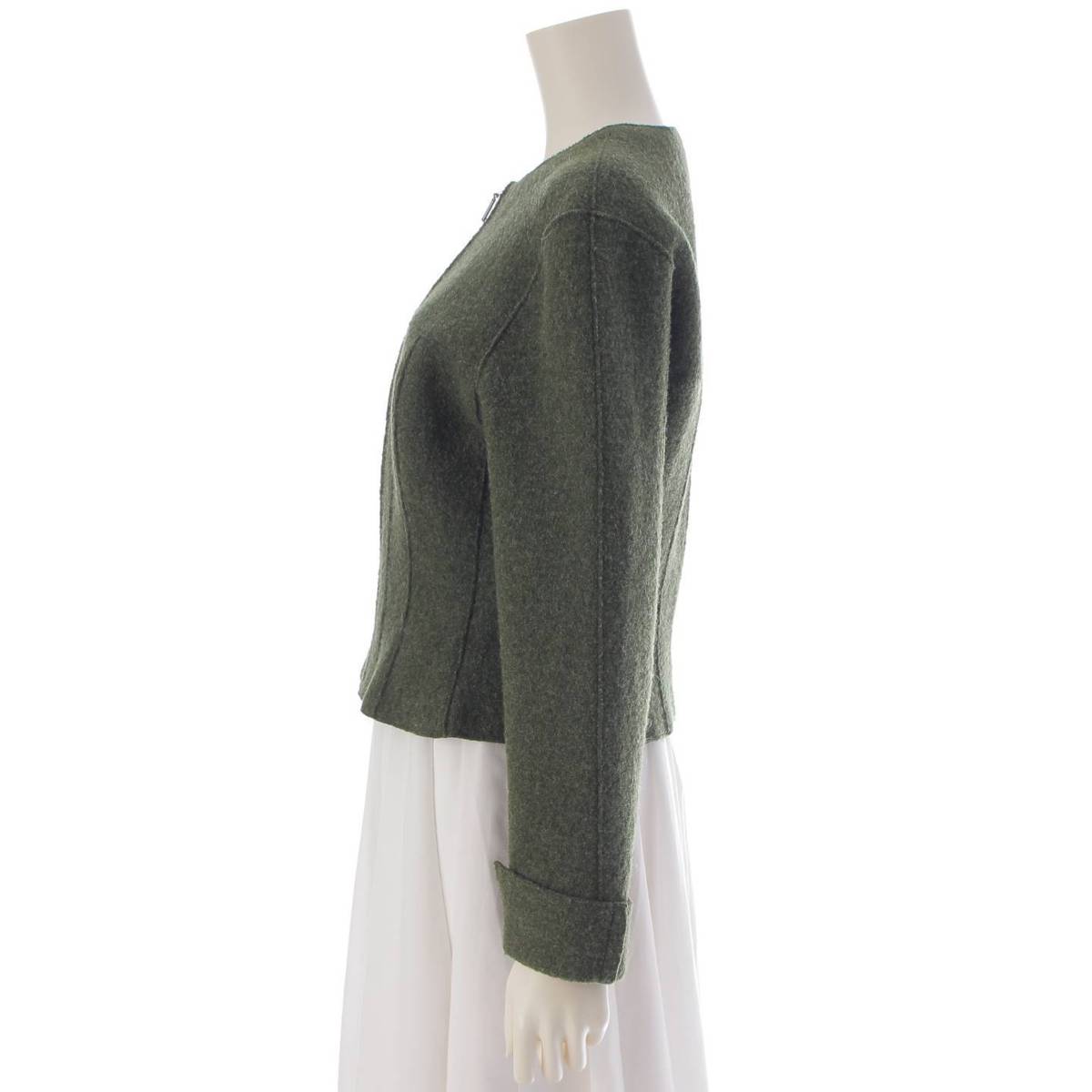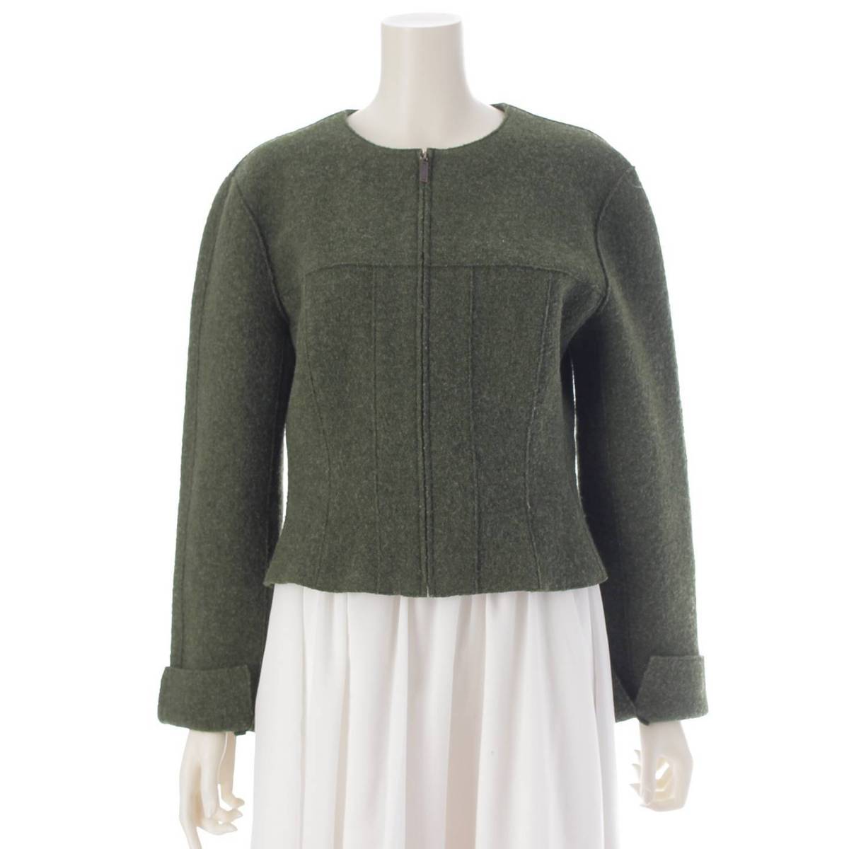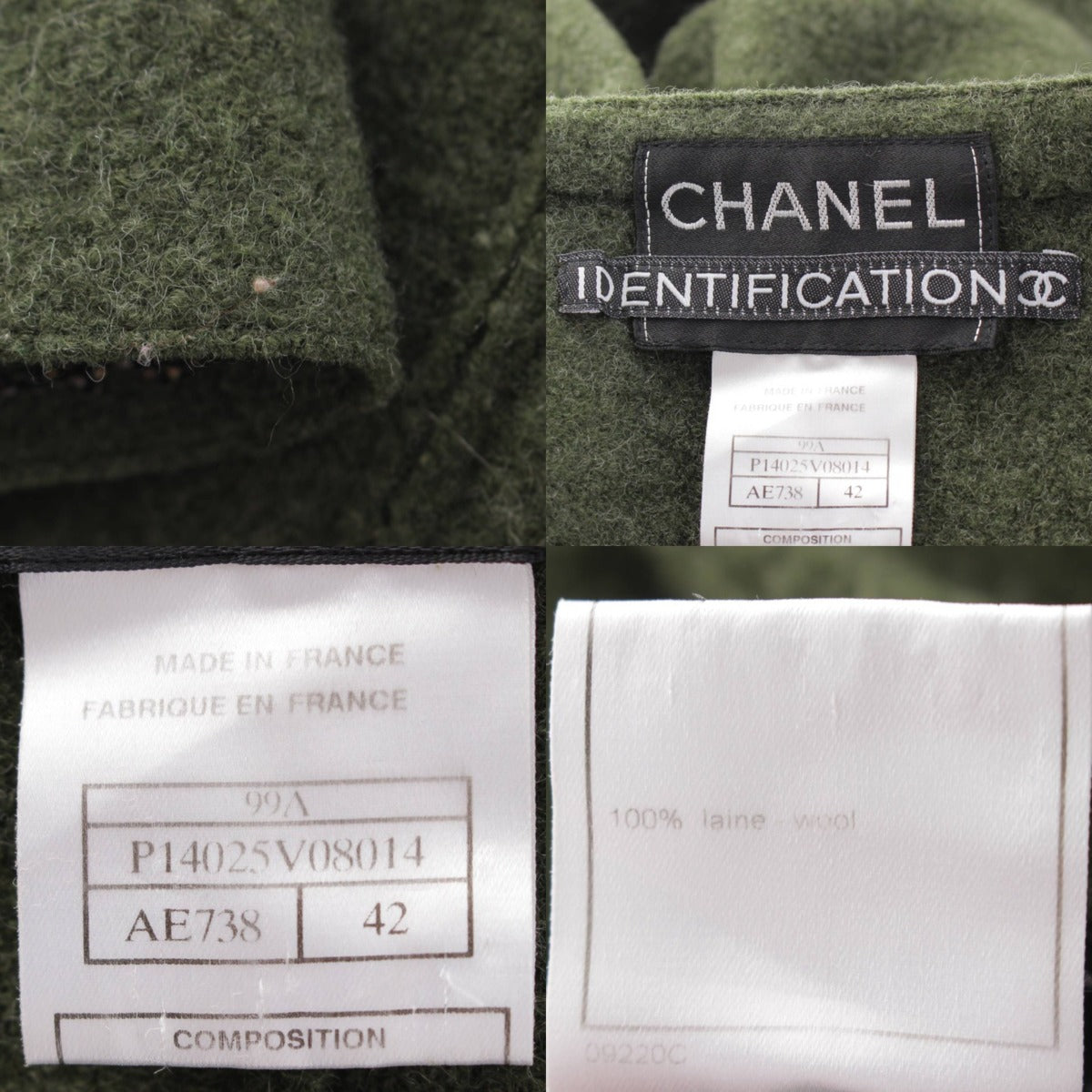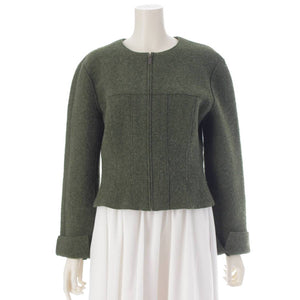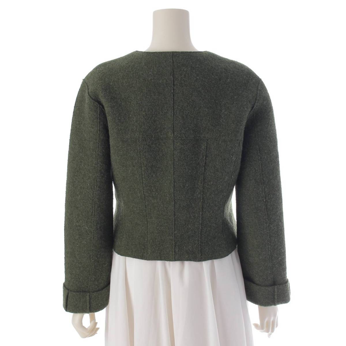 [Chanel] Chanel 99A IDENTIFICATION No-collar wool jacket P14025 Dark green 42 [Used] [Authenticated and guaranteed authentic] 215380