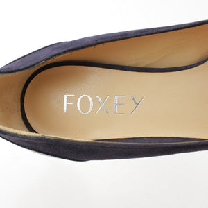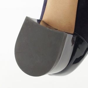 FOXEY Suede Patent Enamel Bicolor Heel Pumps Shoes Navy 36 1/2 [Used] [Authentic Guaranteed]