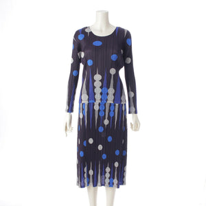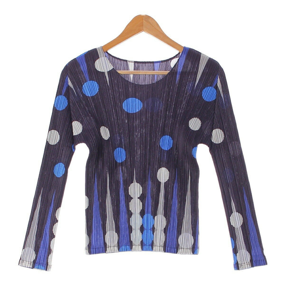 Pleated Please Issey Miyake all-over polka dot cut and sew set PP73-JK612 PP73-JG614 Navy [Used] [Authentic]