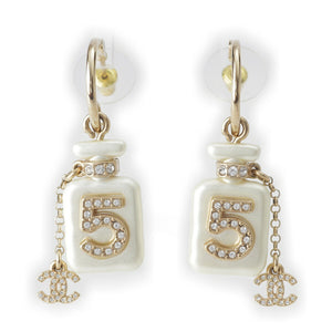 Chanel A22S Perfume Bottle Swing Earrings COCO Mark No5 Rhinestone GP Gold [Used] [Authentic Guaranteed]