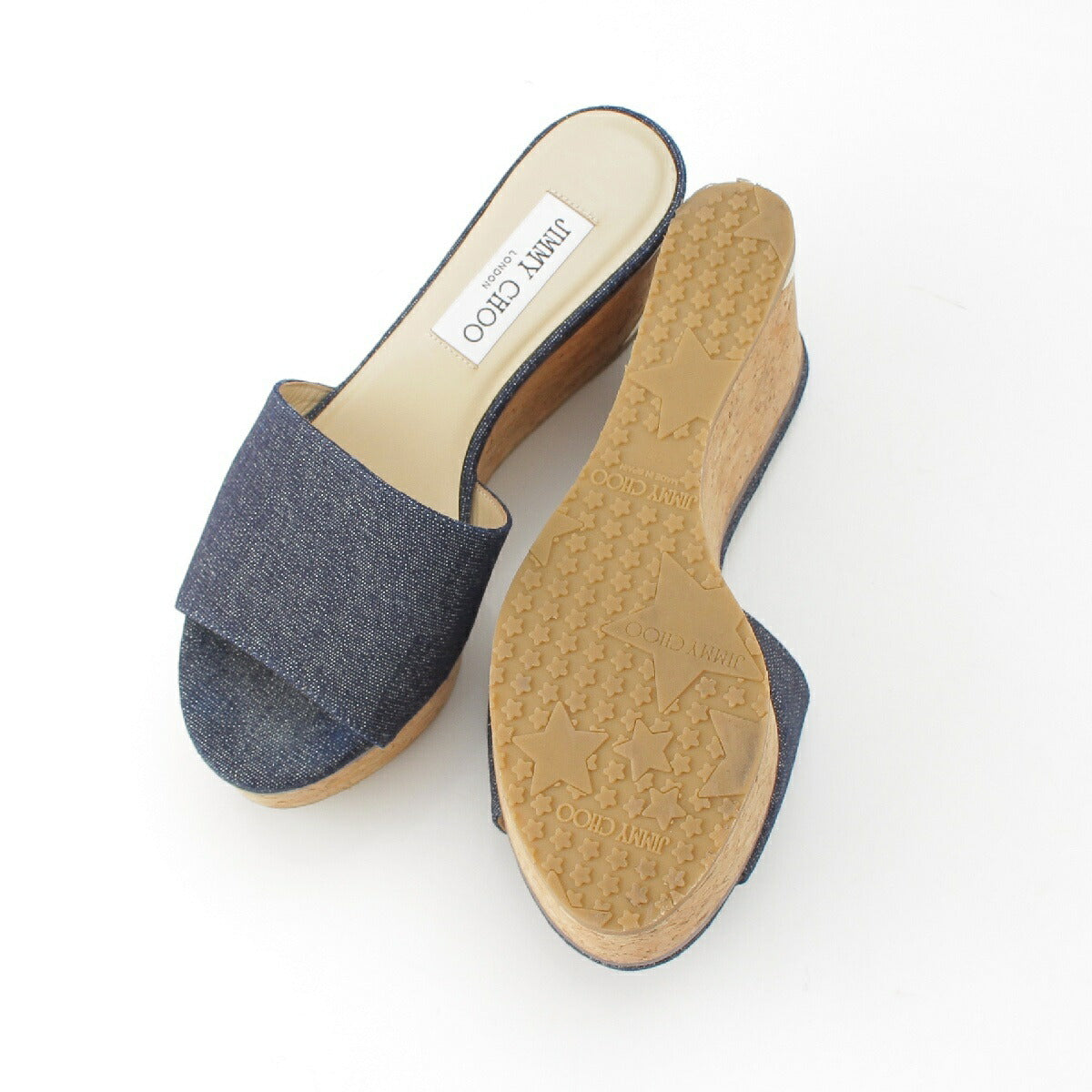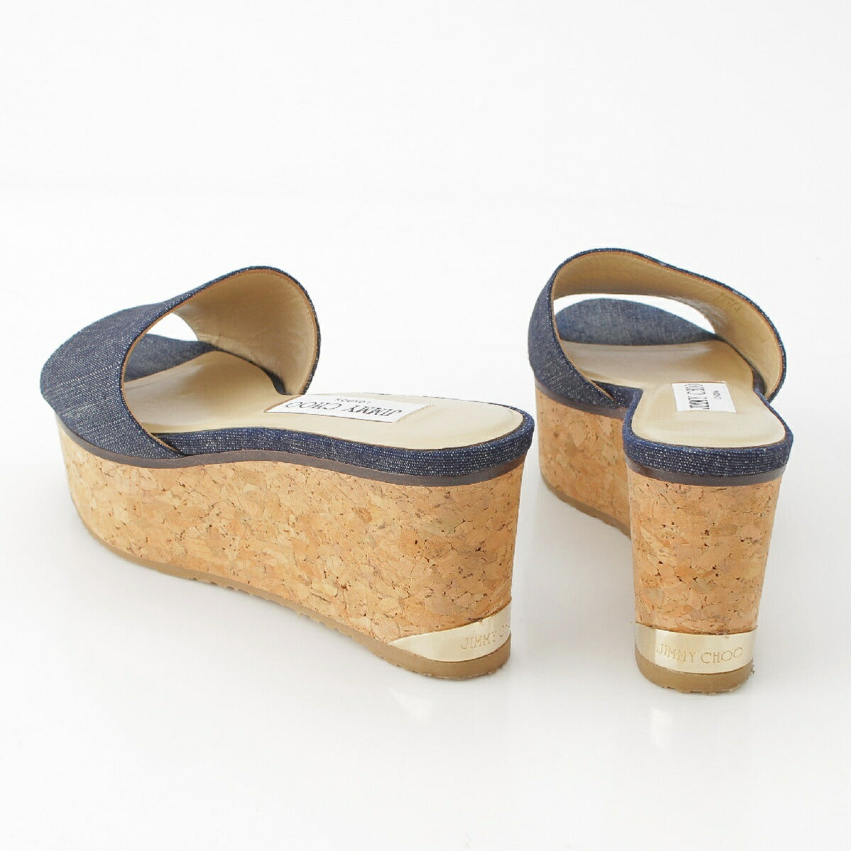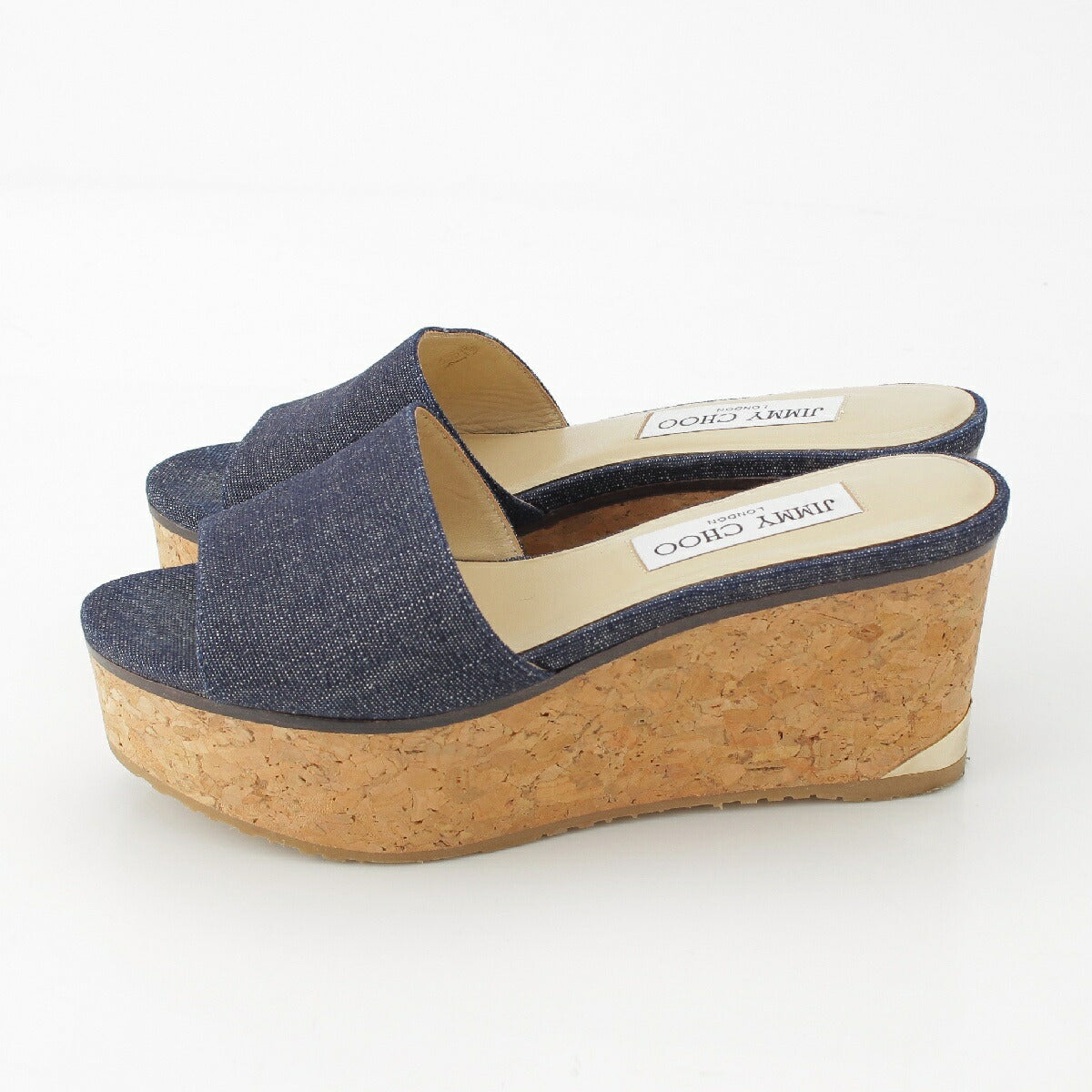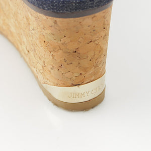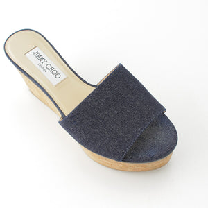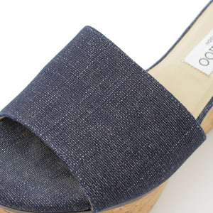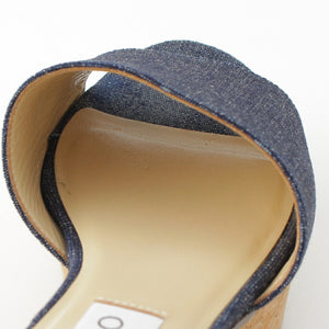 Jimmy Choo DEEDEE80 Denim Cork Platform Heel Shower Sandals Mules Blue Brown 36 [Used] [Authentic Guaranteed]
