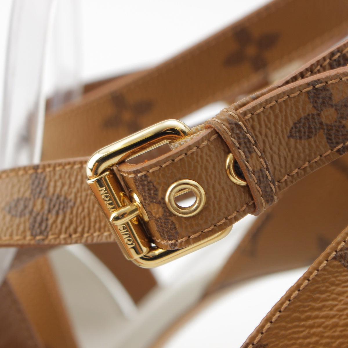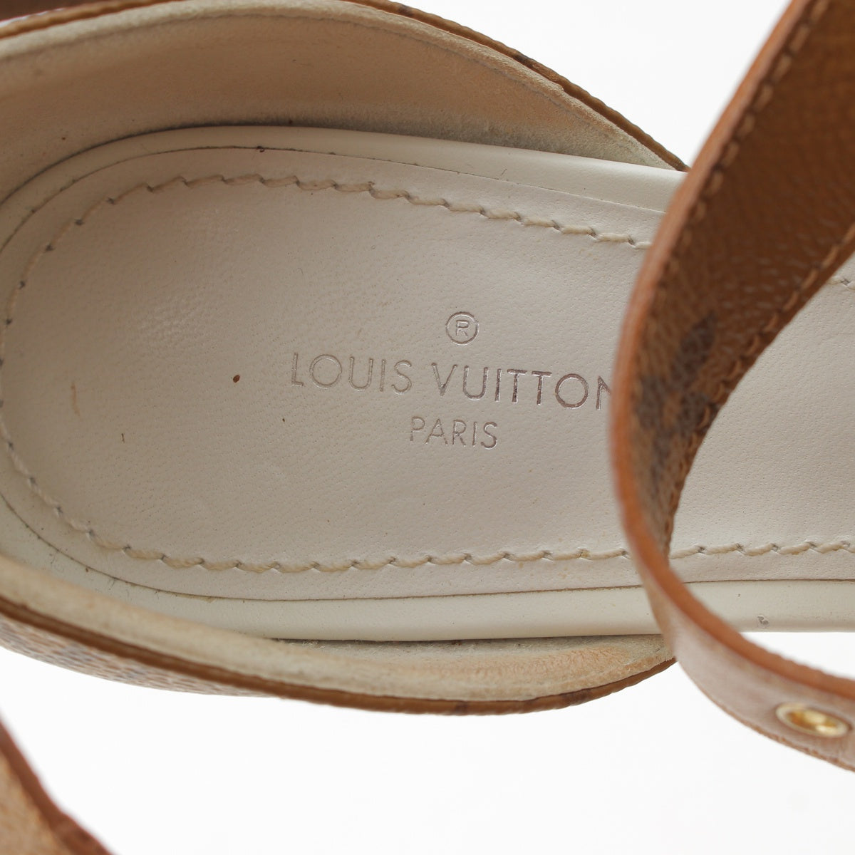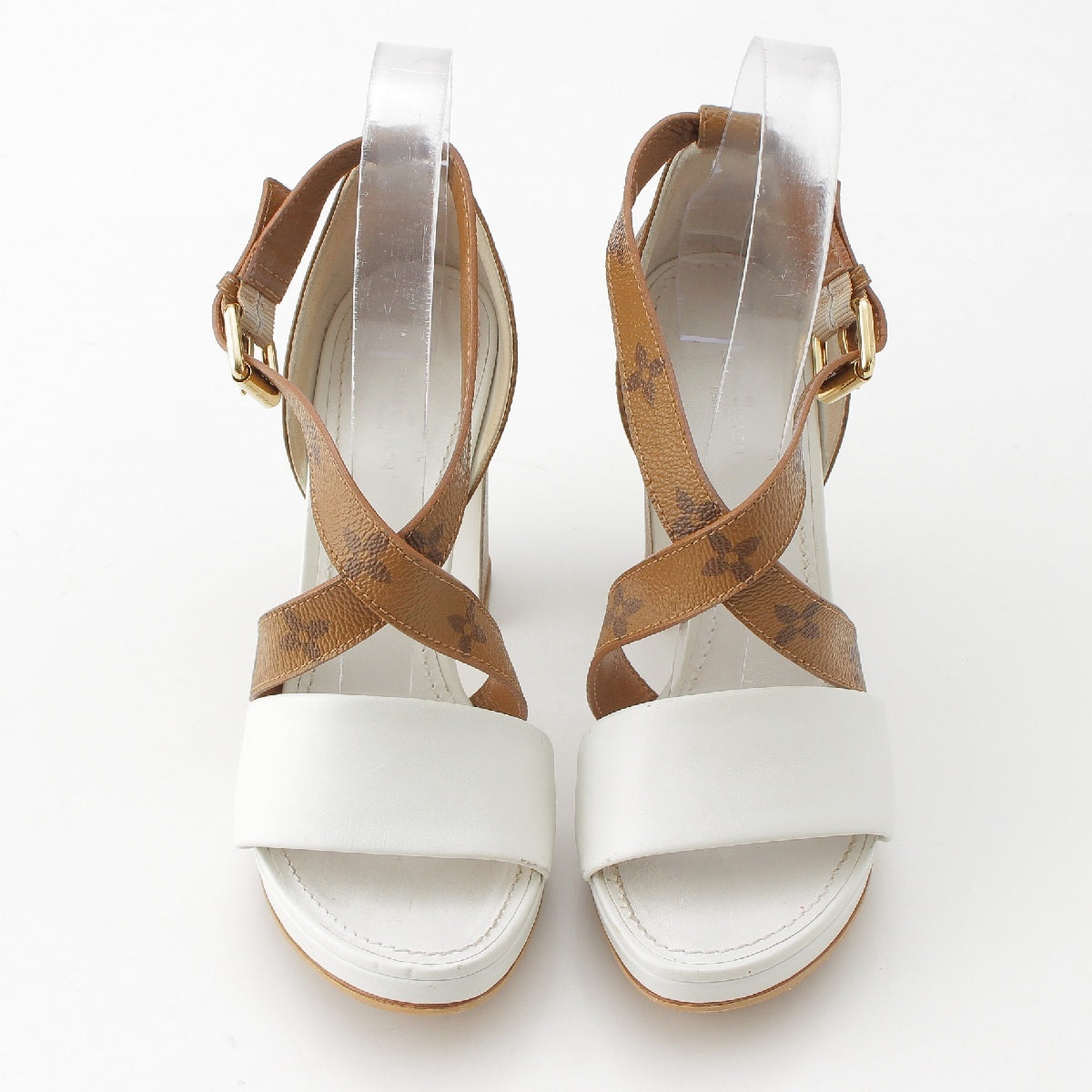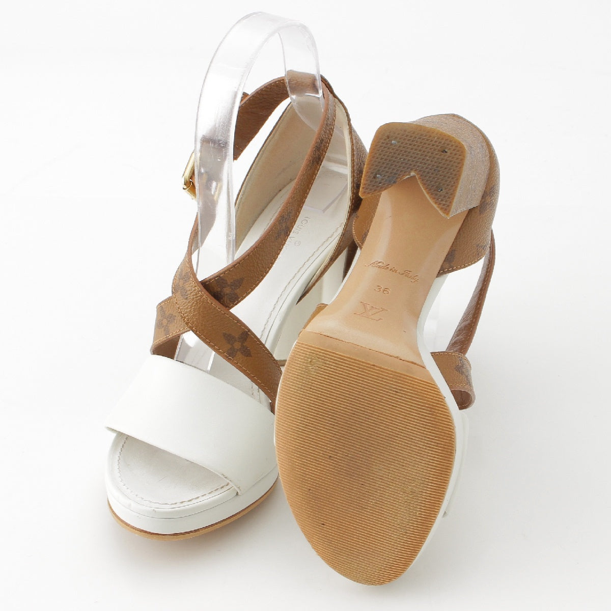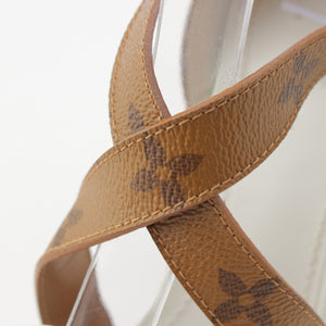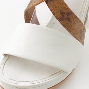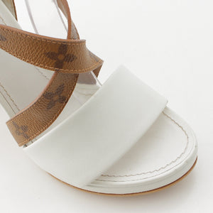 LOUIS VUITTON Monogram Matchmaking Line leather Monogram Sandals Heel pumps White brown 36