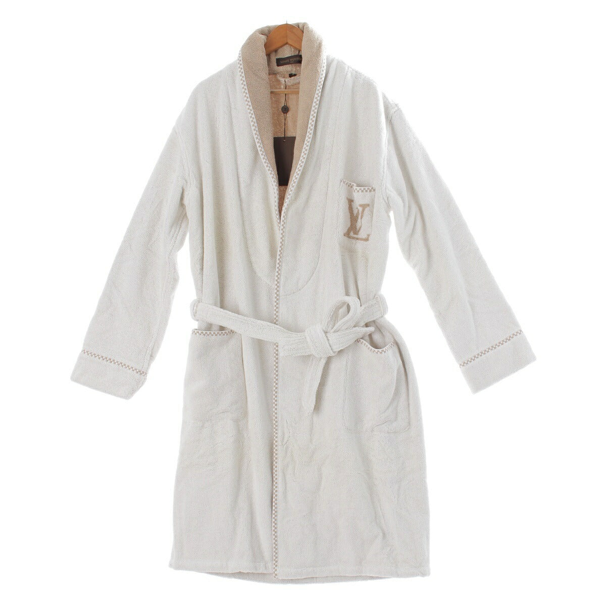 Louis Vuitton Gown Bathrobe LV Logo Monogram Damier Pile White [Used] [Authentic Guaranteed]