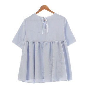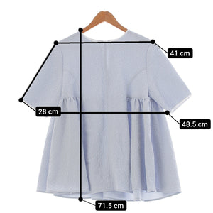 yori Folded Side Gathered Blouse blouse Tunic Tops Shirts YR21-24065SM-3 Light blue 38