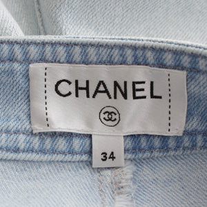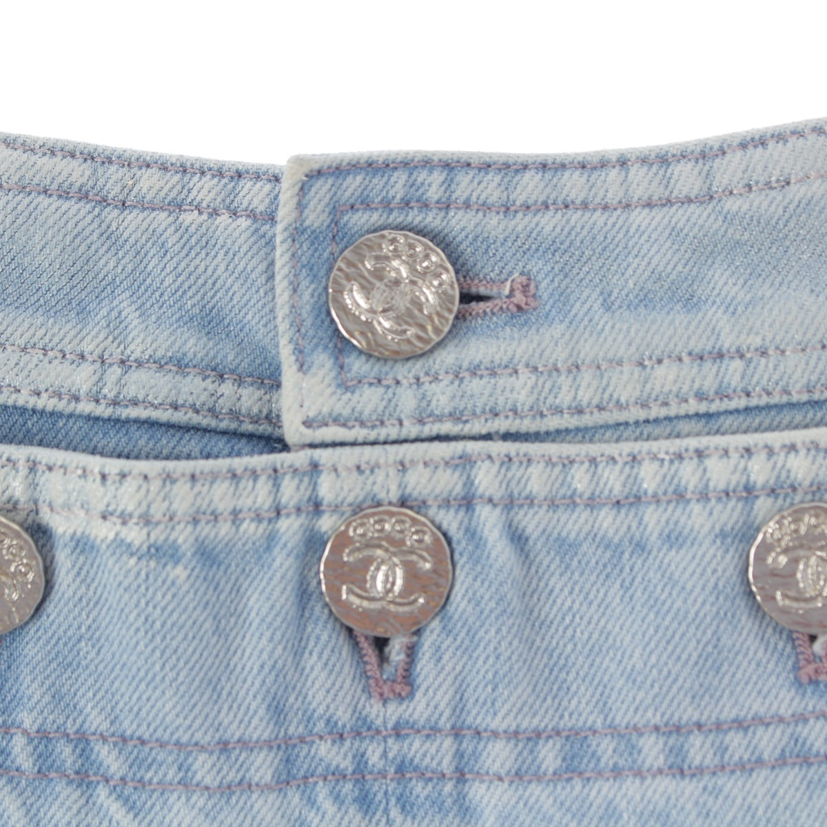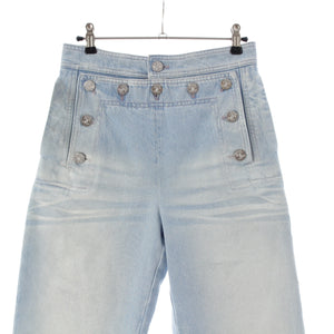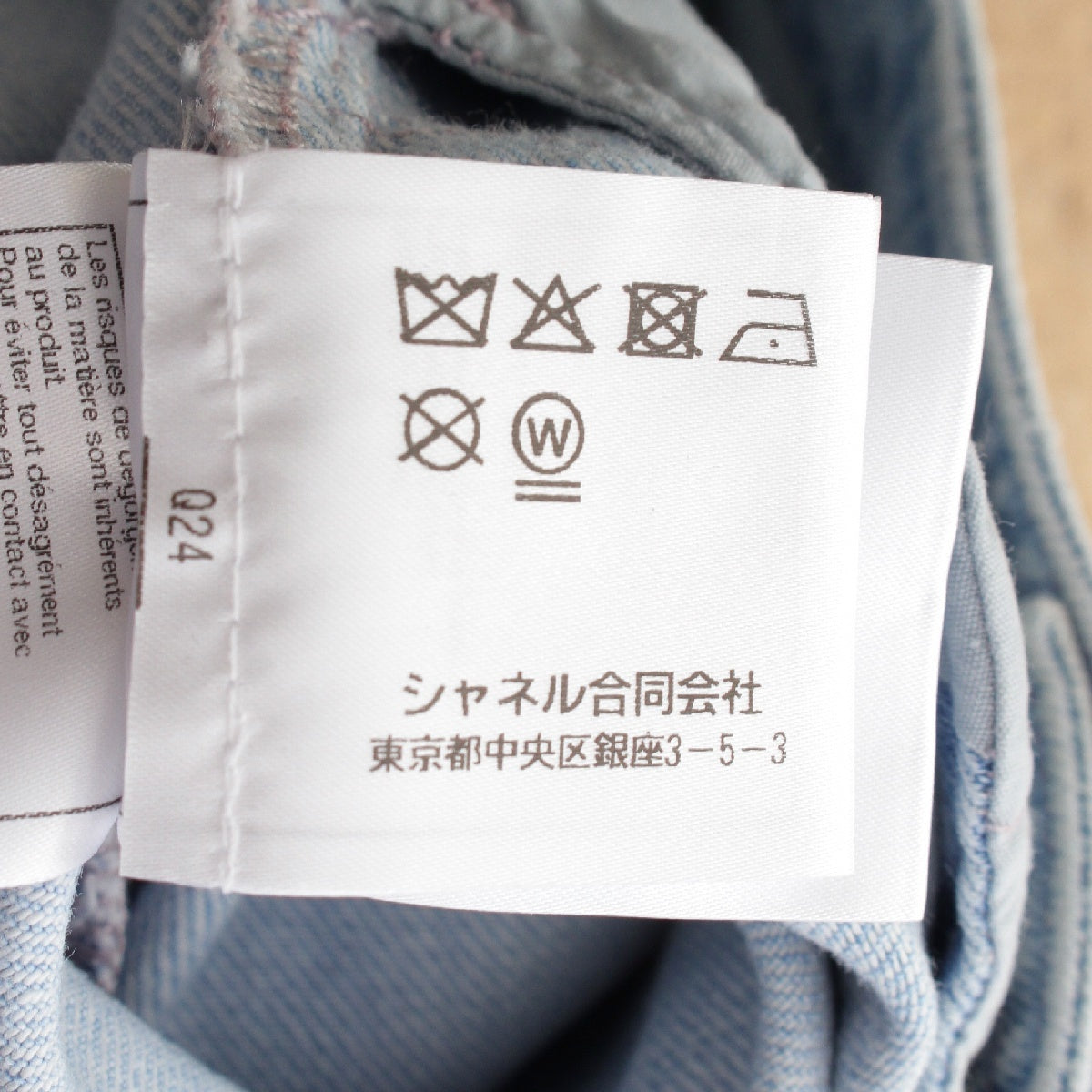 CHANEL 24AW washed denim COCO Mark Button Iridescent Coating Marine Pants Bottoms P76228 Ice blue 34
