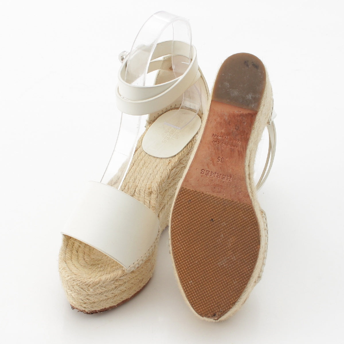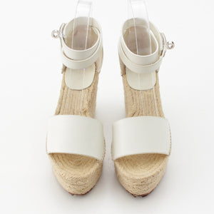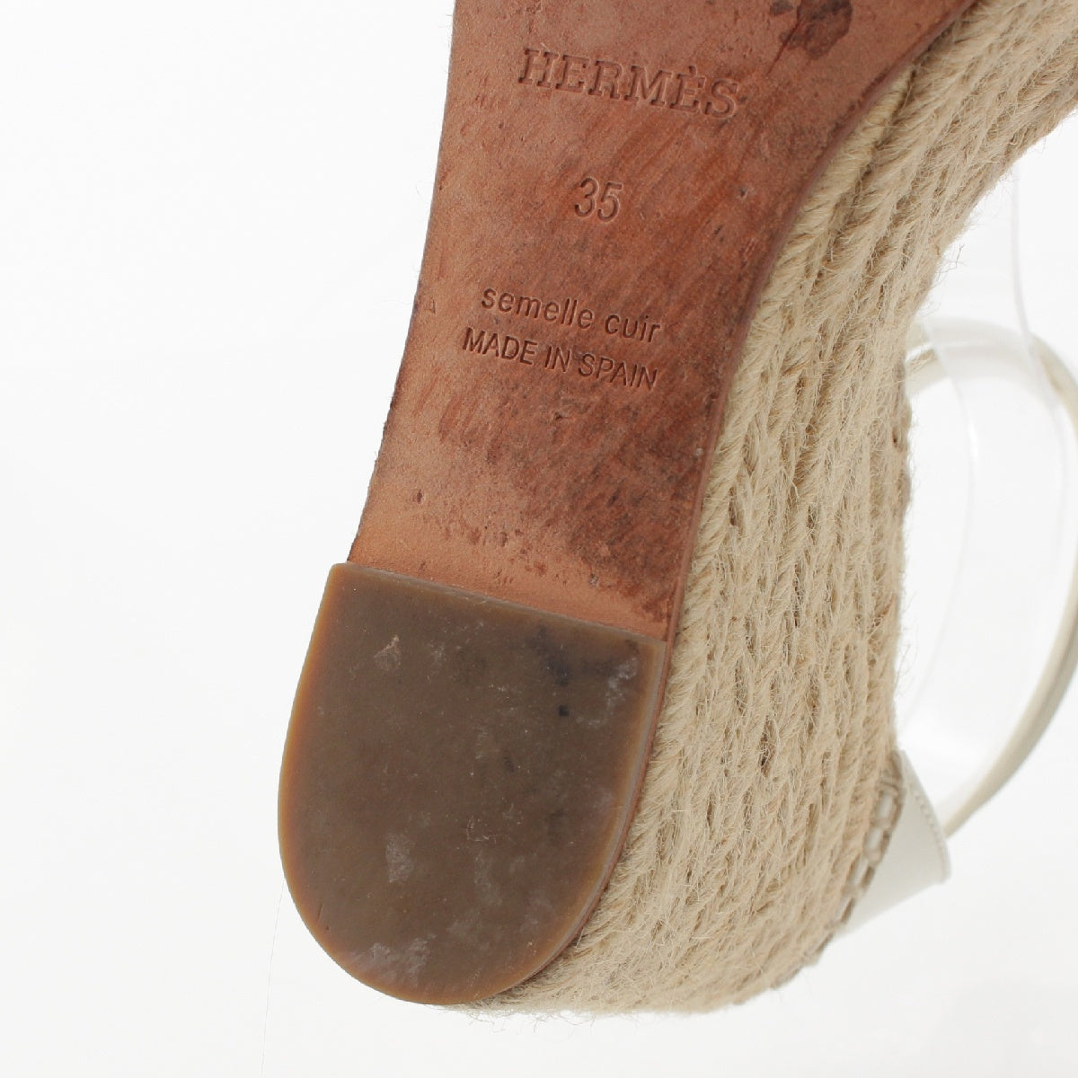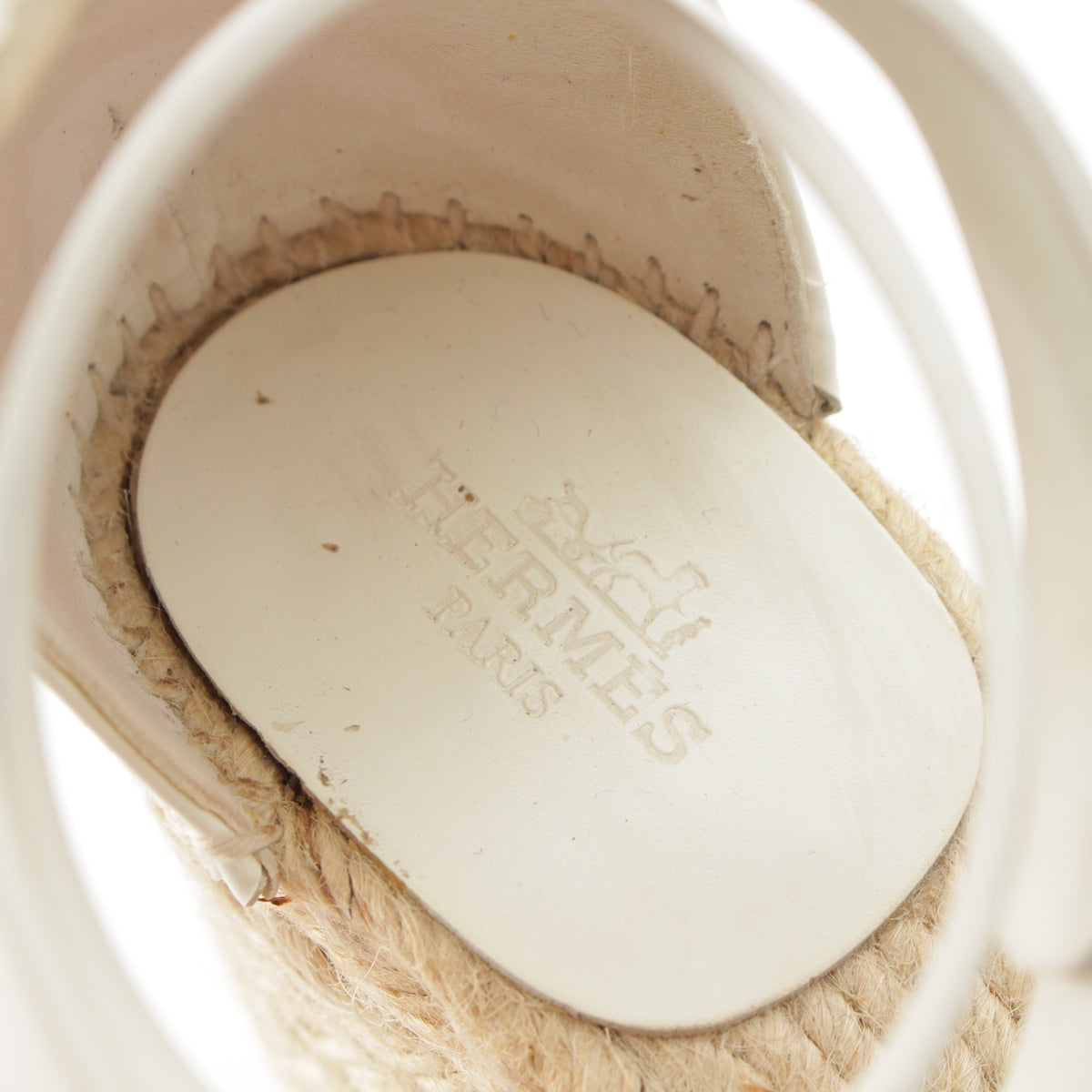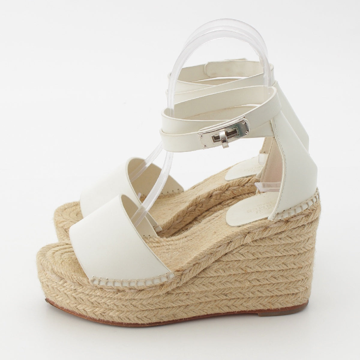 HERMES Tivoli leather Kelly Buckle Wedges Sandals white 35