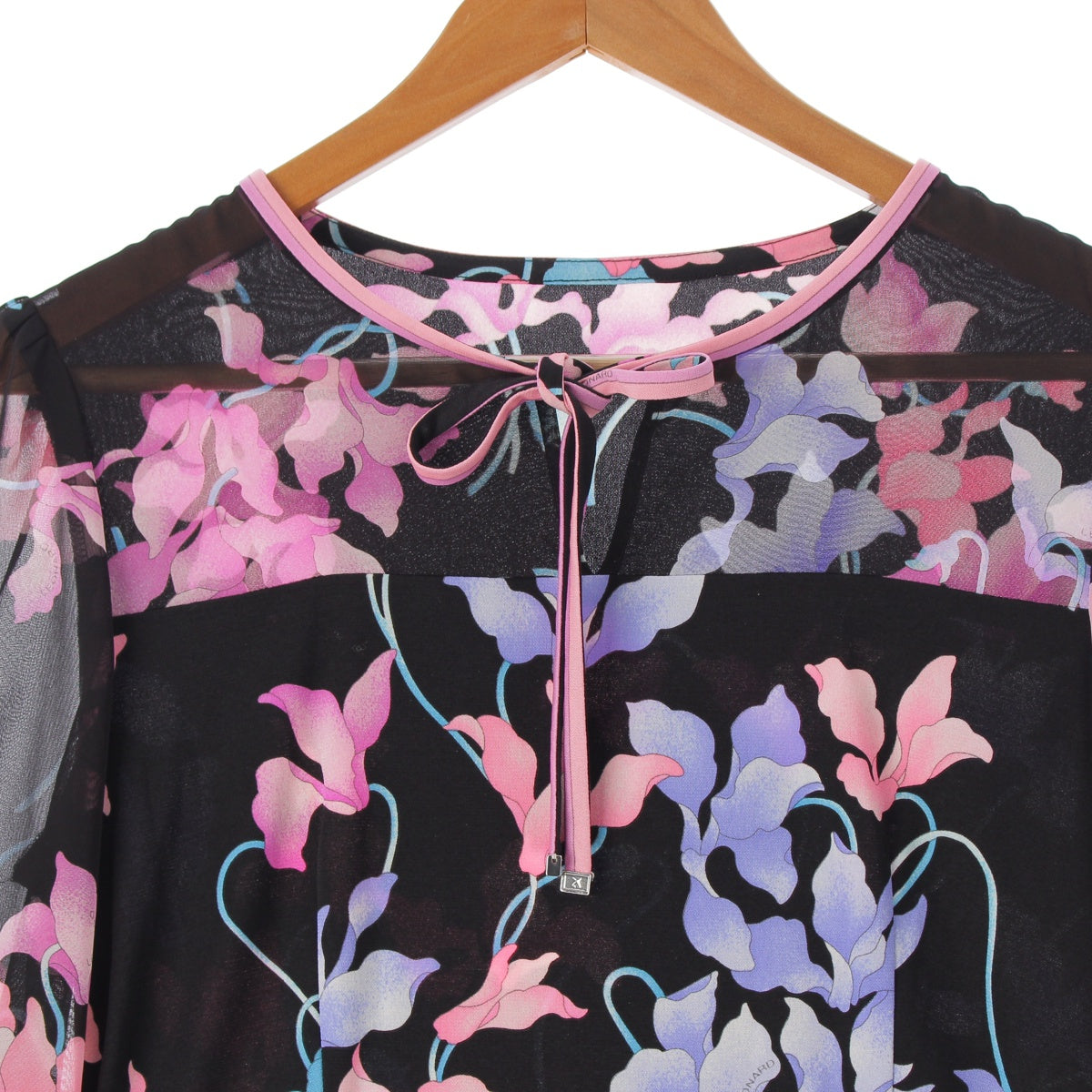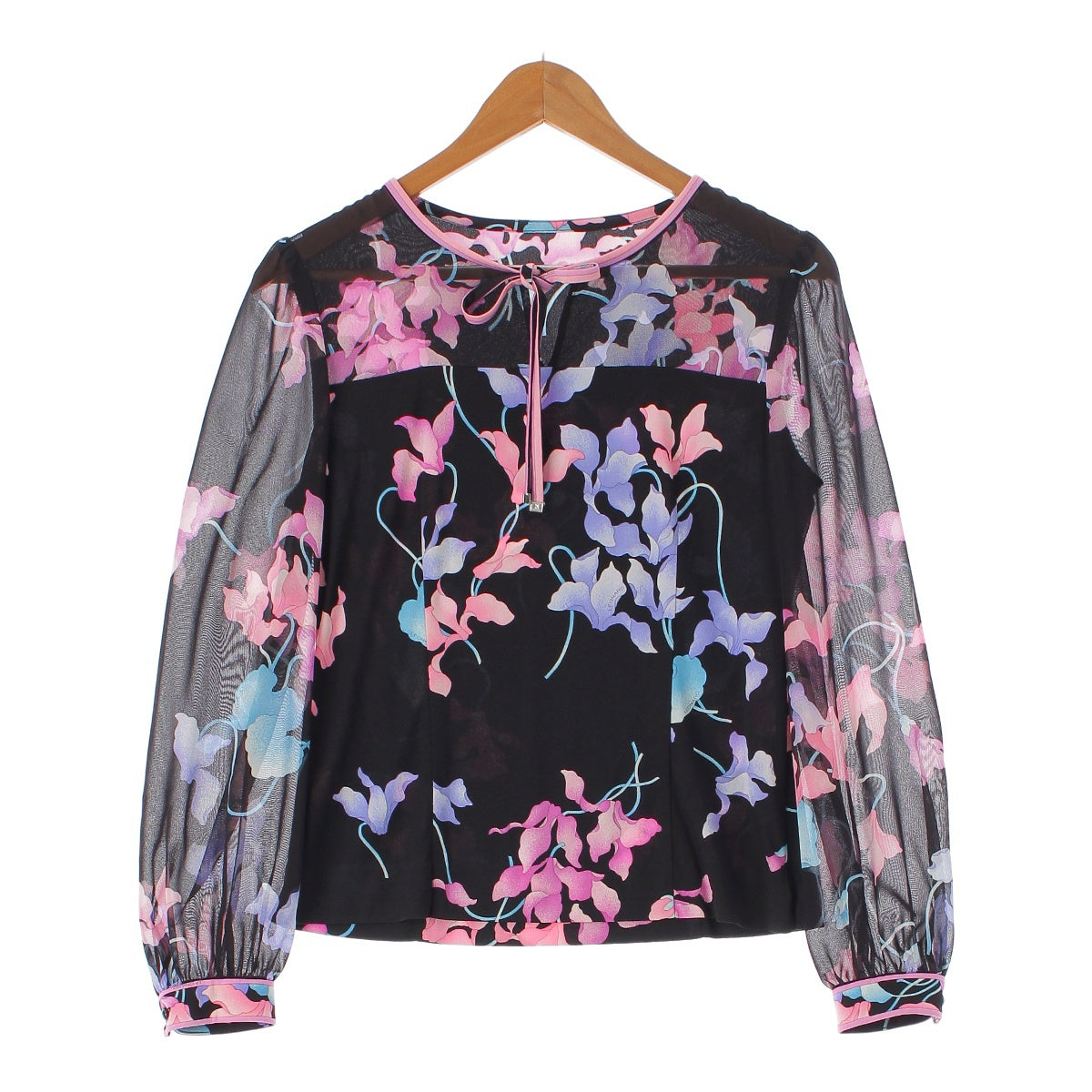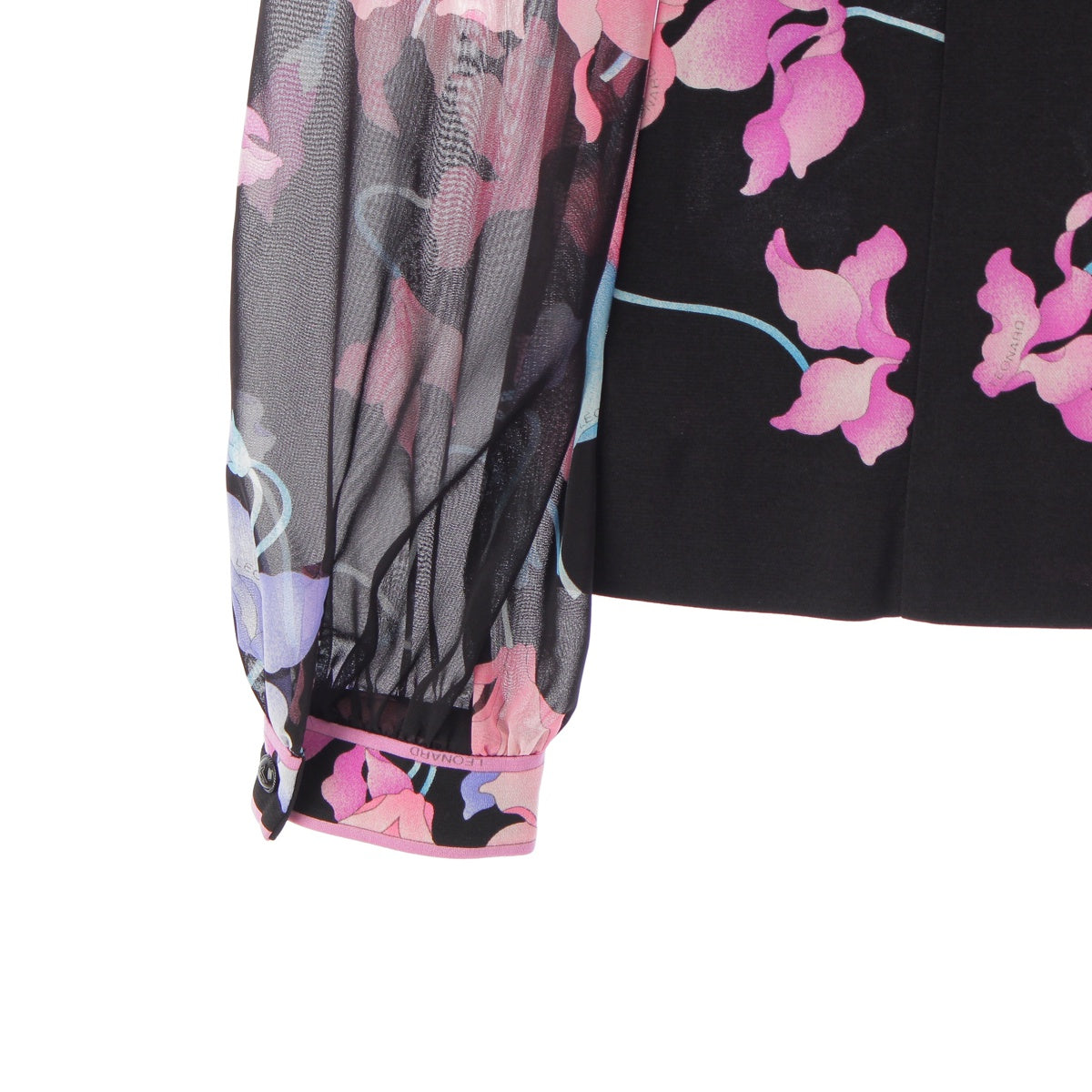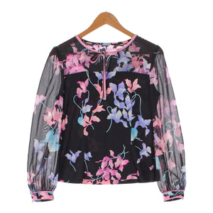 LEONARD cancan Floral See-through Side Zip blouse shirt 0129236 Black x pink 38