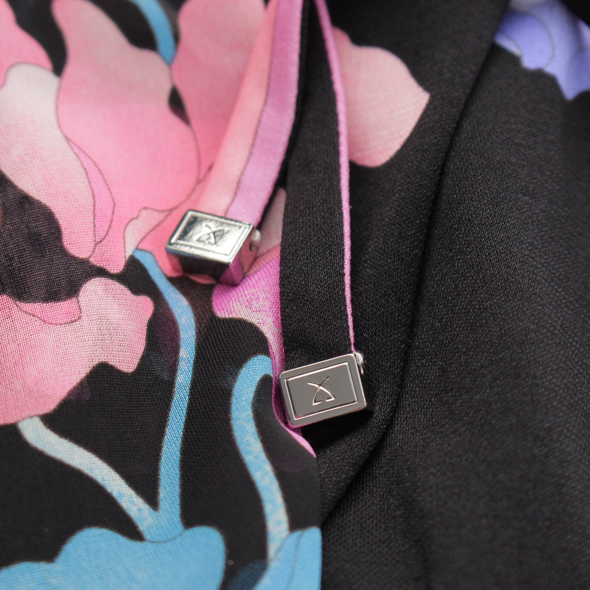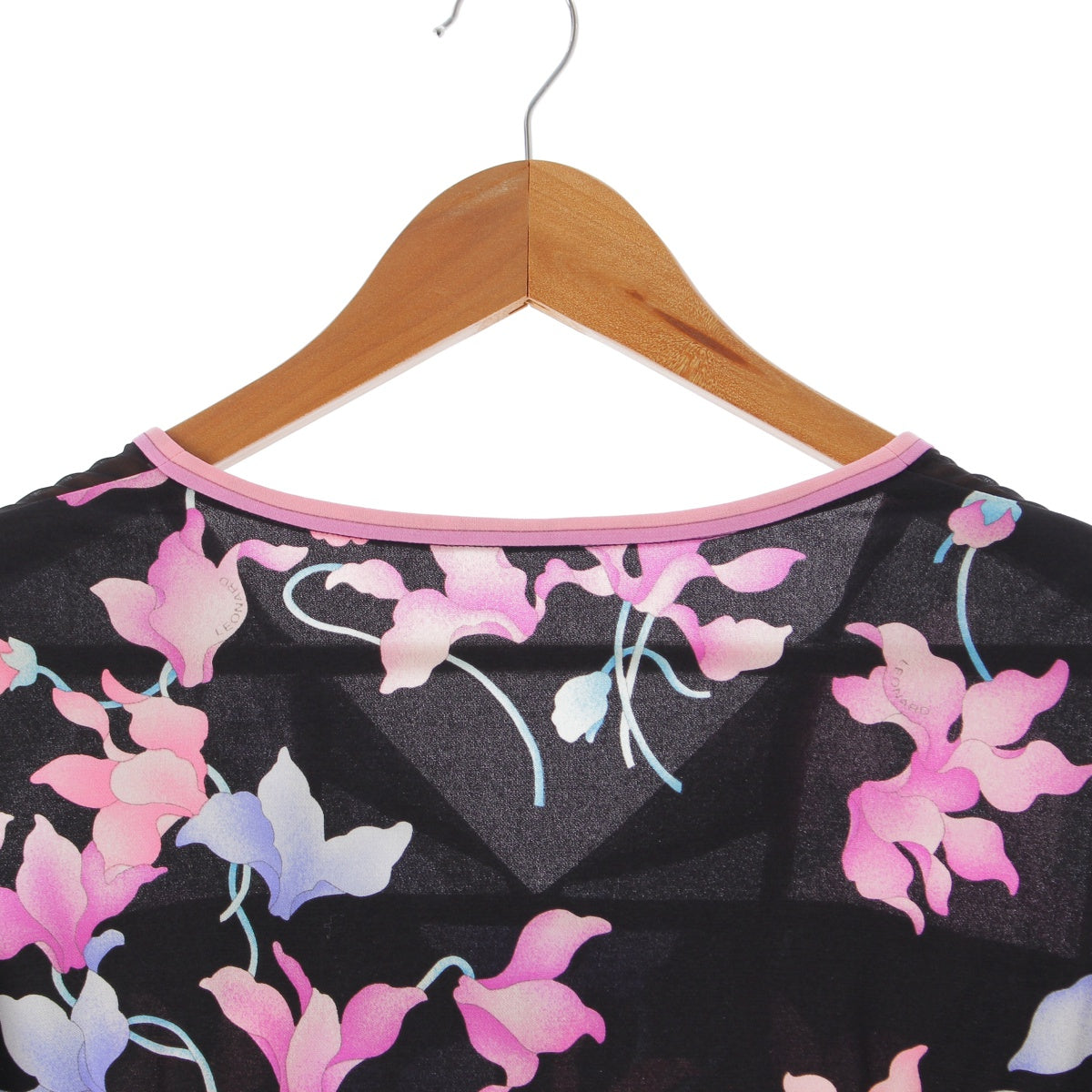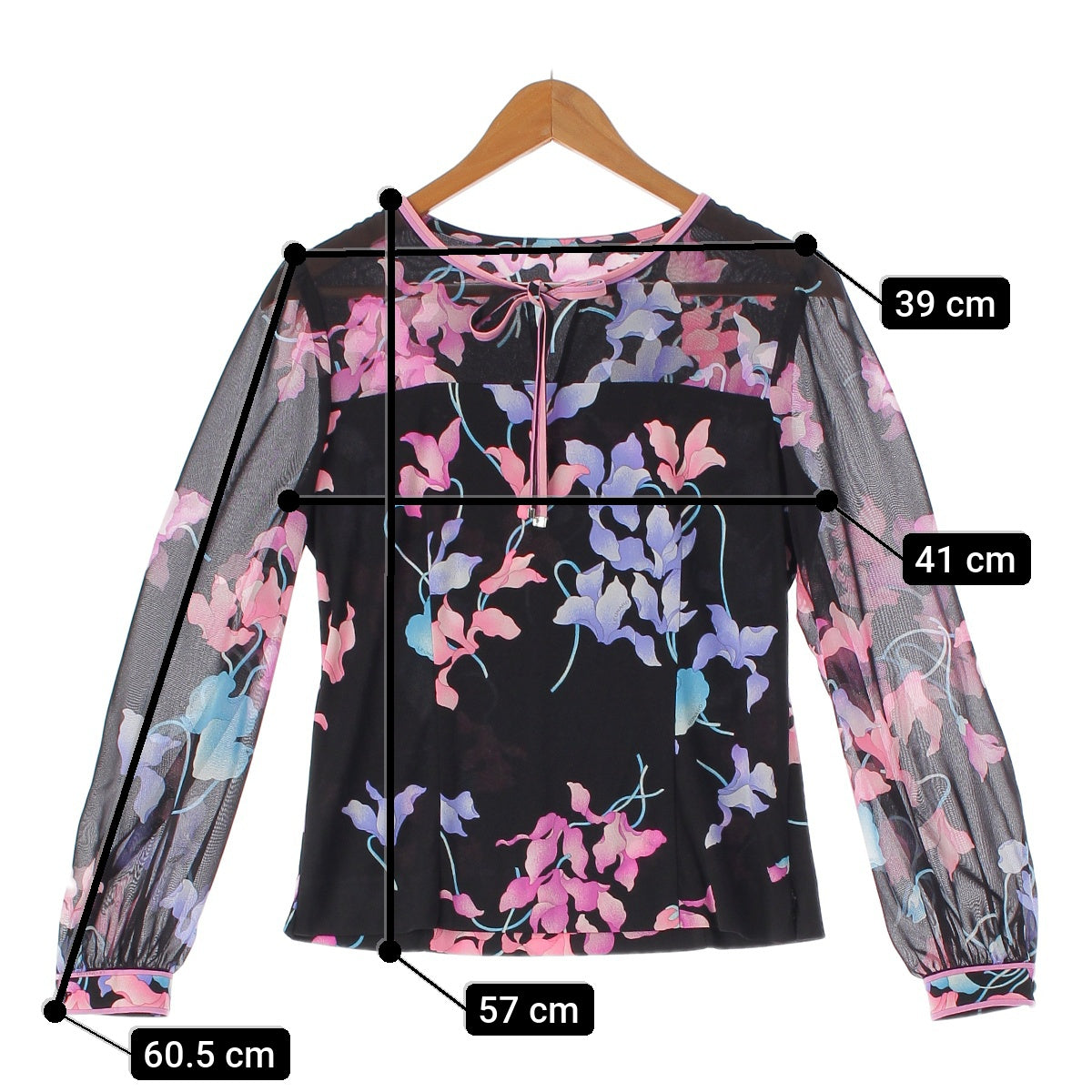 LEONARD cancan Floral See-through Side Zip blouse shirt 0129236 Black x pink 38
