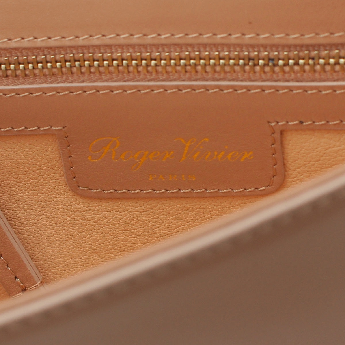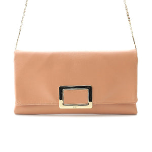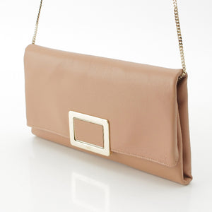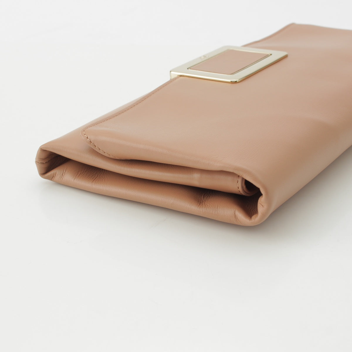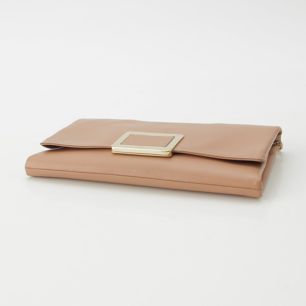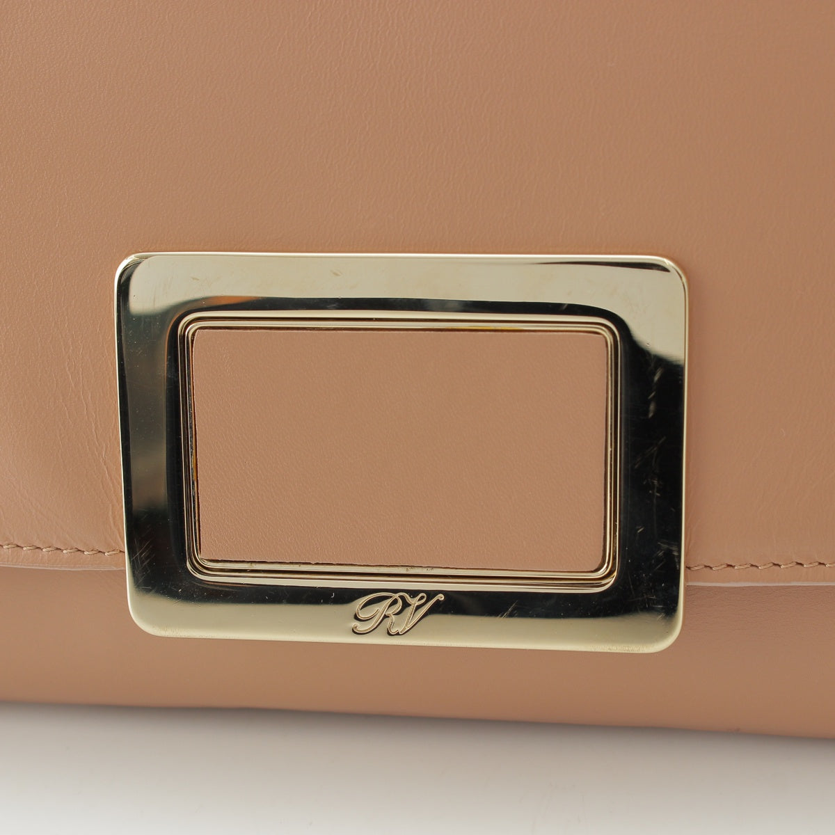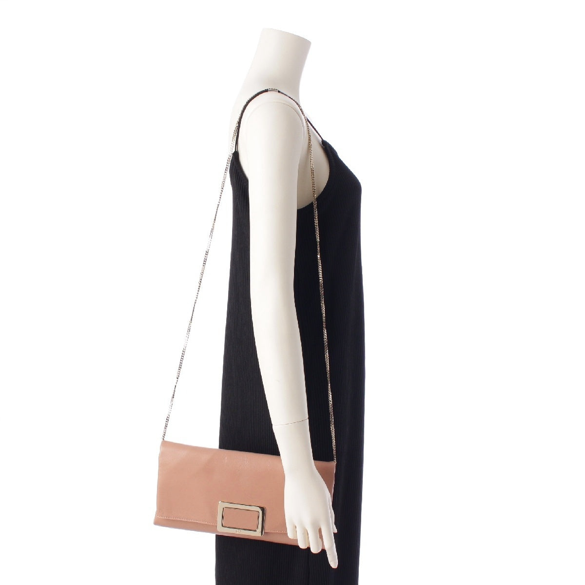 Roger Vivier leather Square Buckle ChainShoulder Clutch bag pink beige
