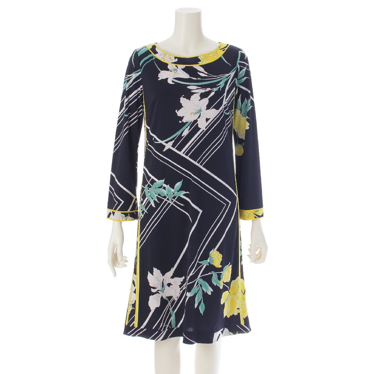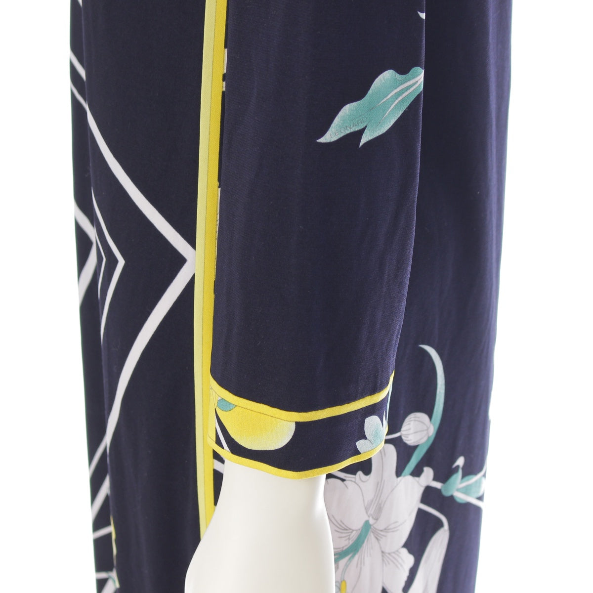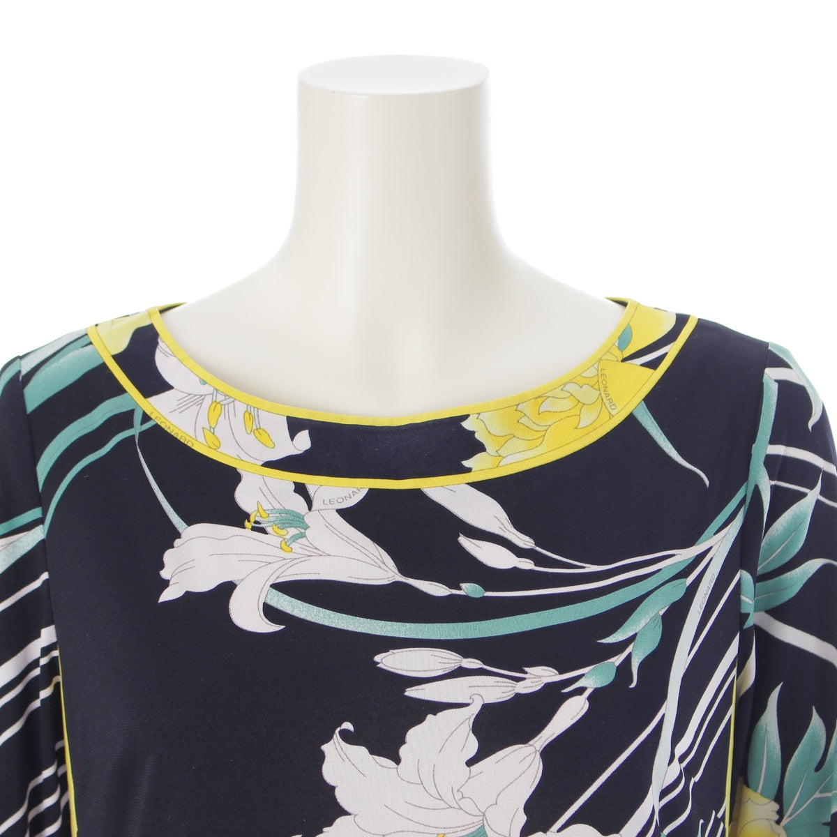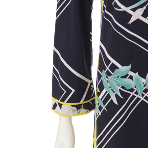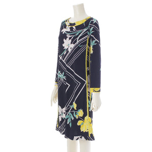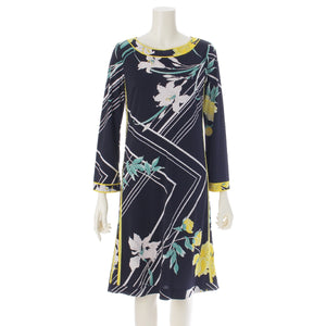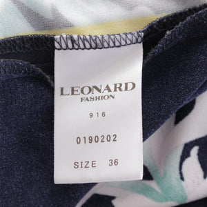 LEONARD Cancan material Floral Print 3/4 Sleeve Knee Length one piece dress Black x White x Yellow 36