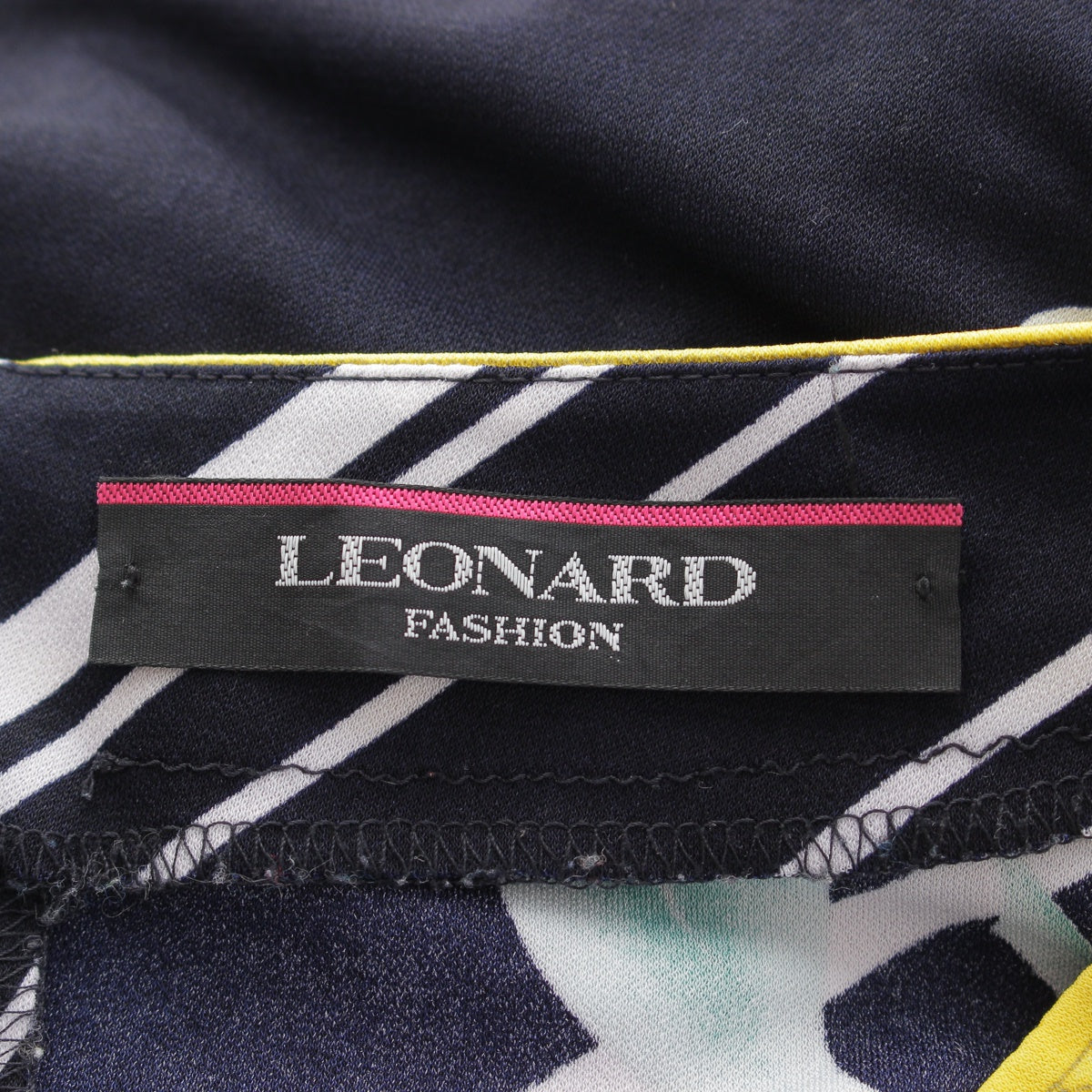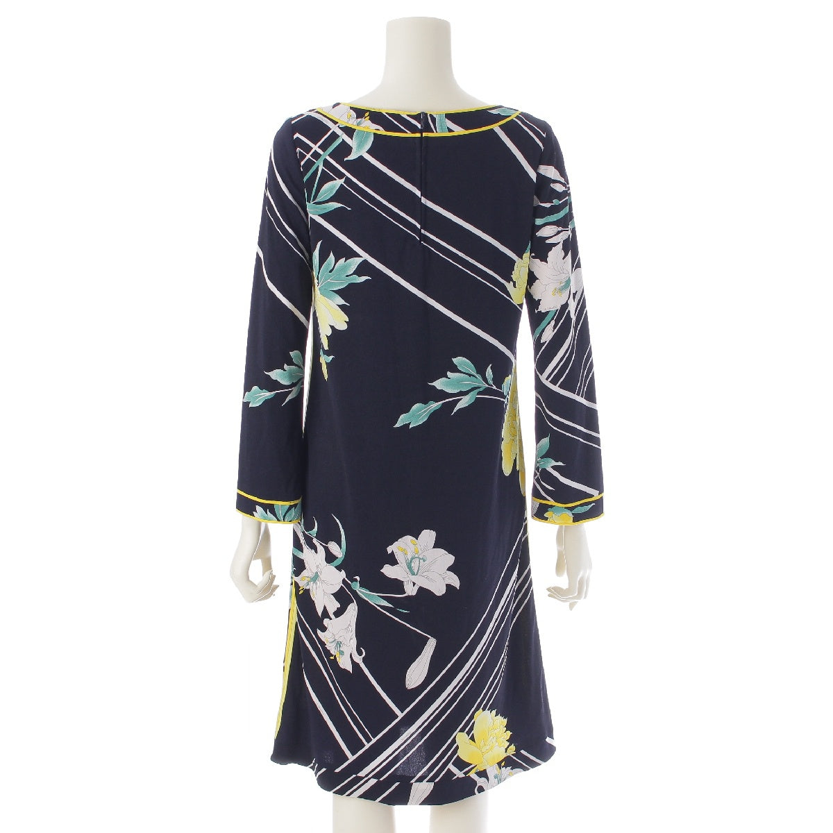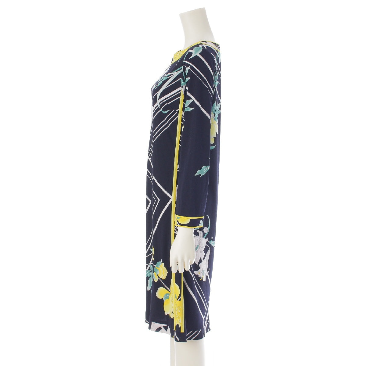 LEONARD Cancan material Floral Print 3/4 Sleeve Knee Length one piece dress Black x White x Yellow 36
