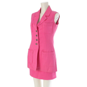 CHANEL 97C cotton COCO Mark Sleeveless Skirt setup P08898 pink Tops 38 Skirts 36