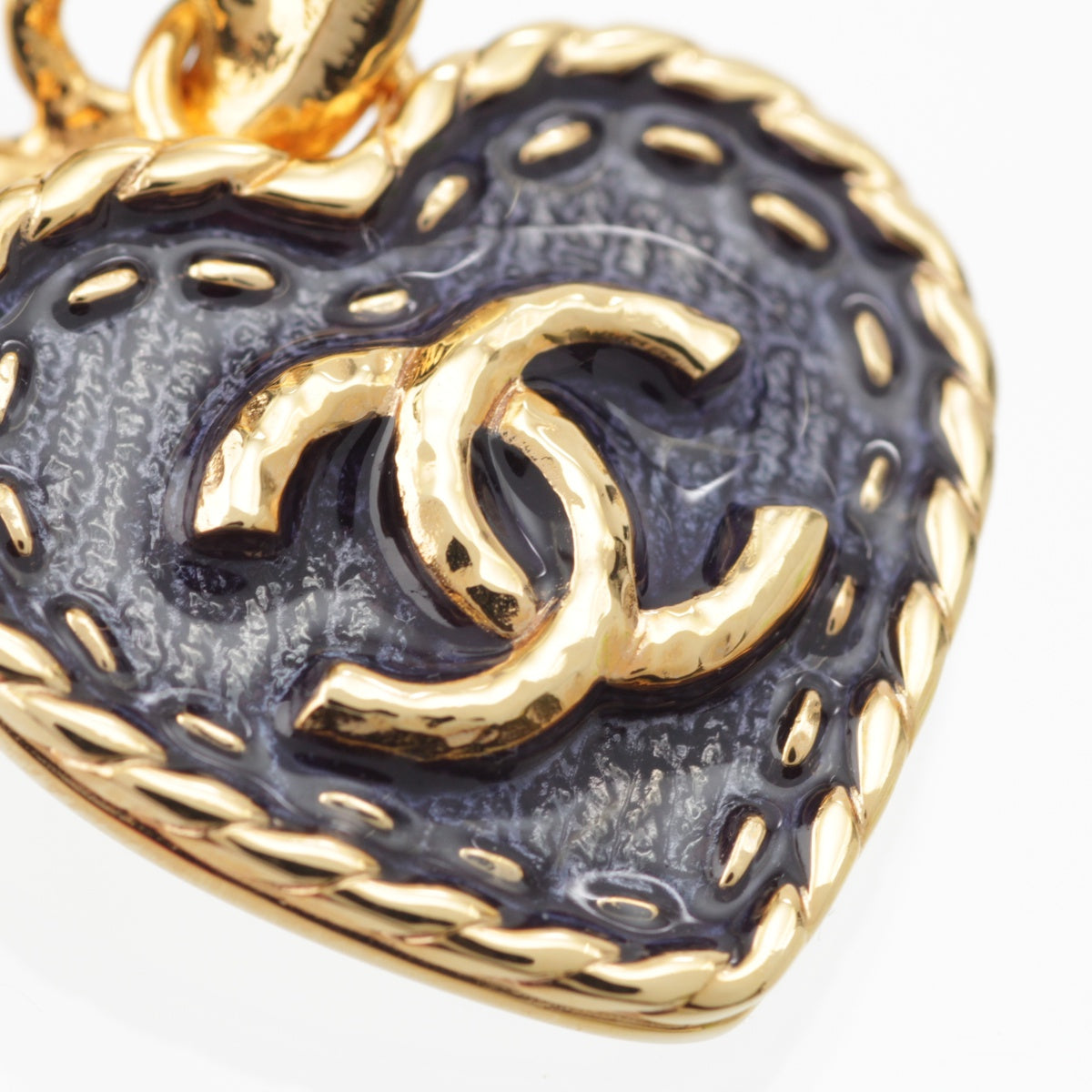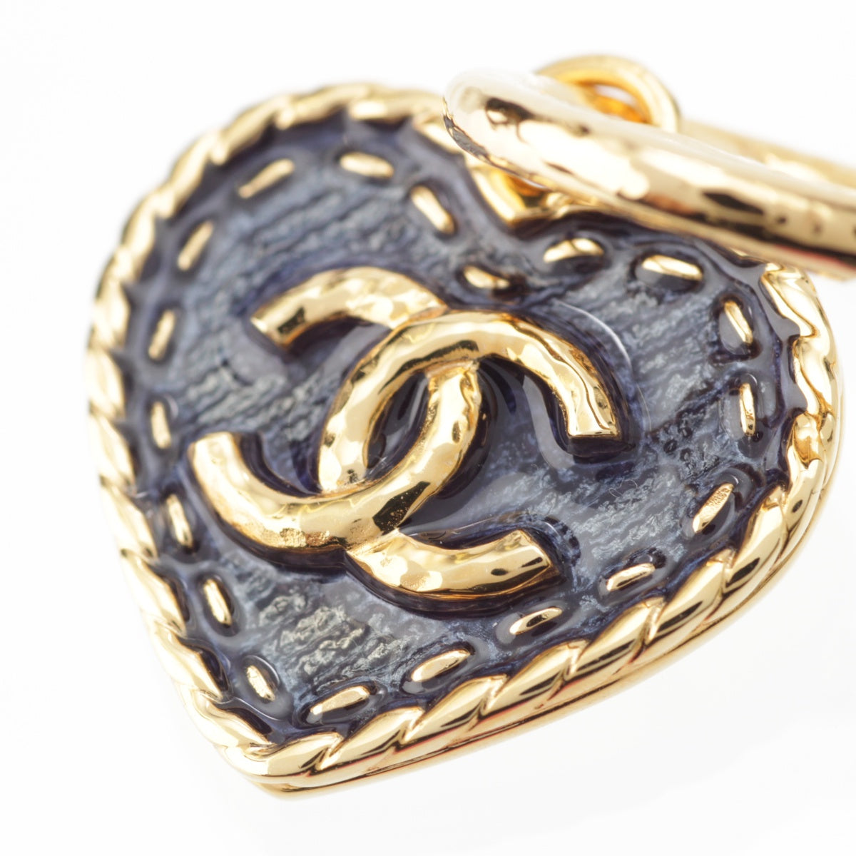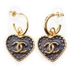 CHANEL COCO Mark Heart Denim Motif Swing Pierce Accessories I24P Blue gold