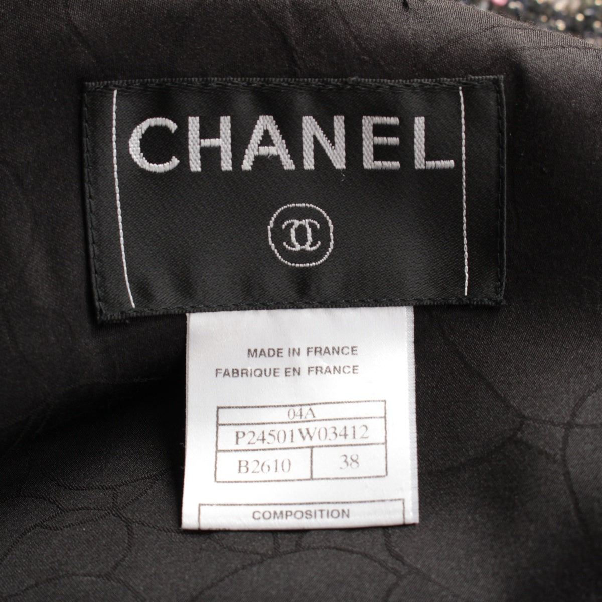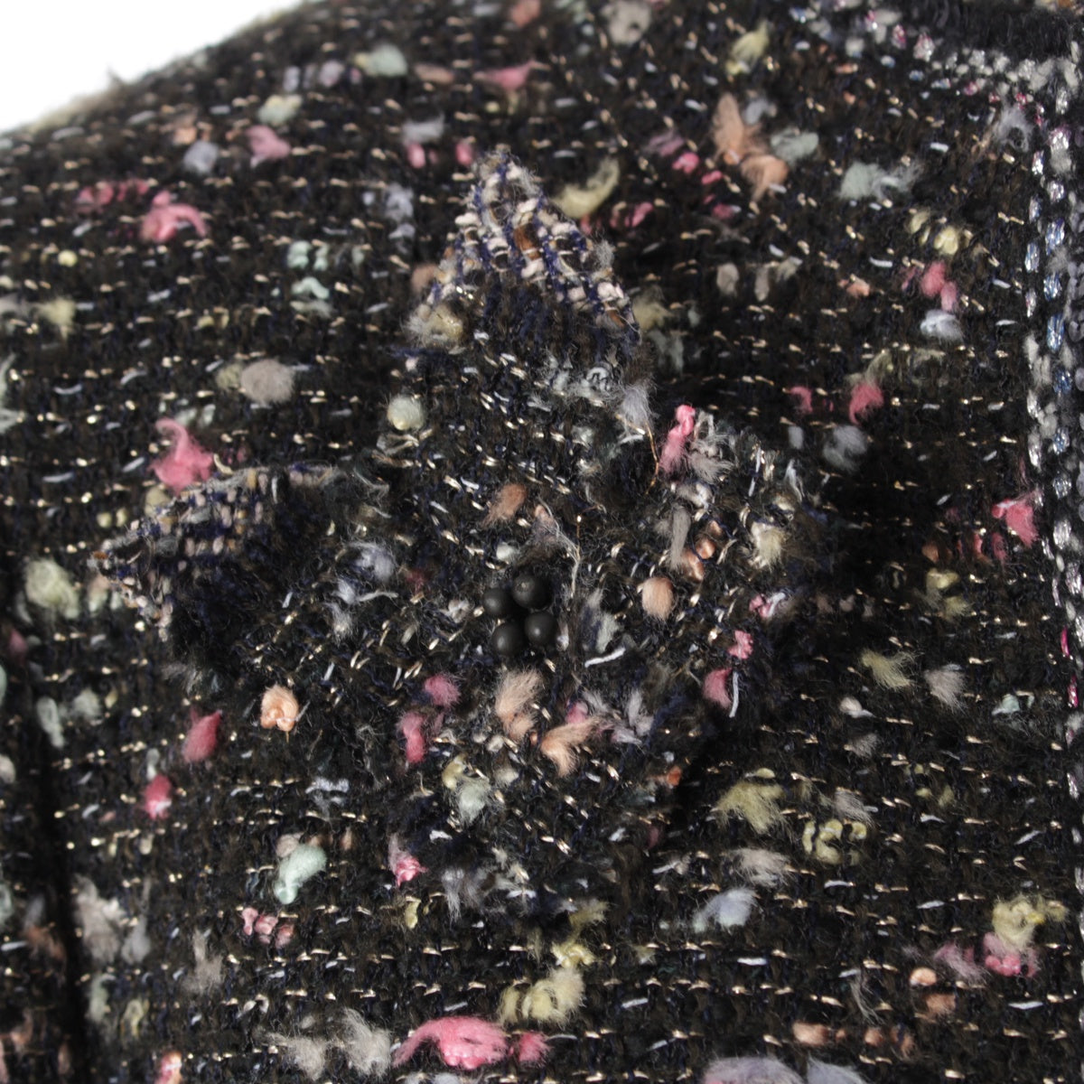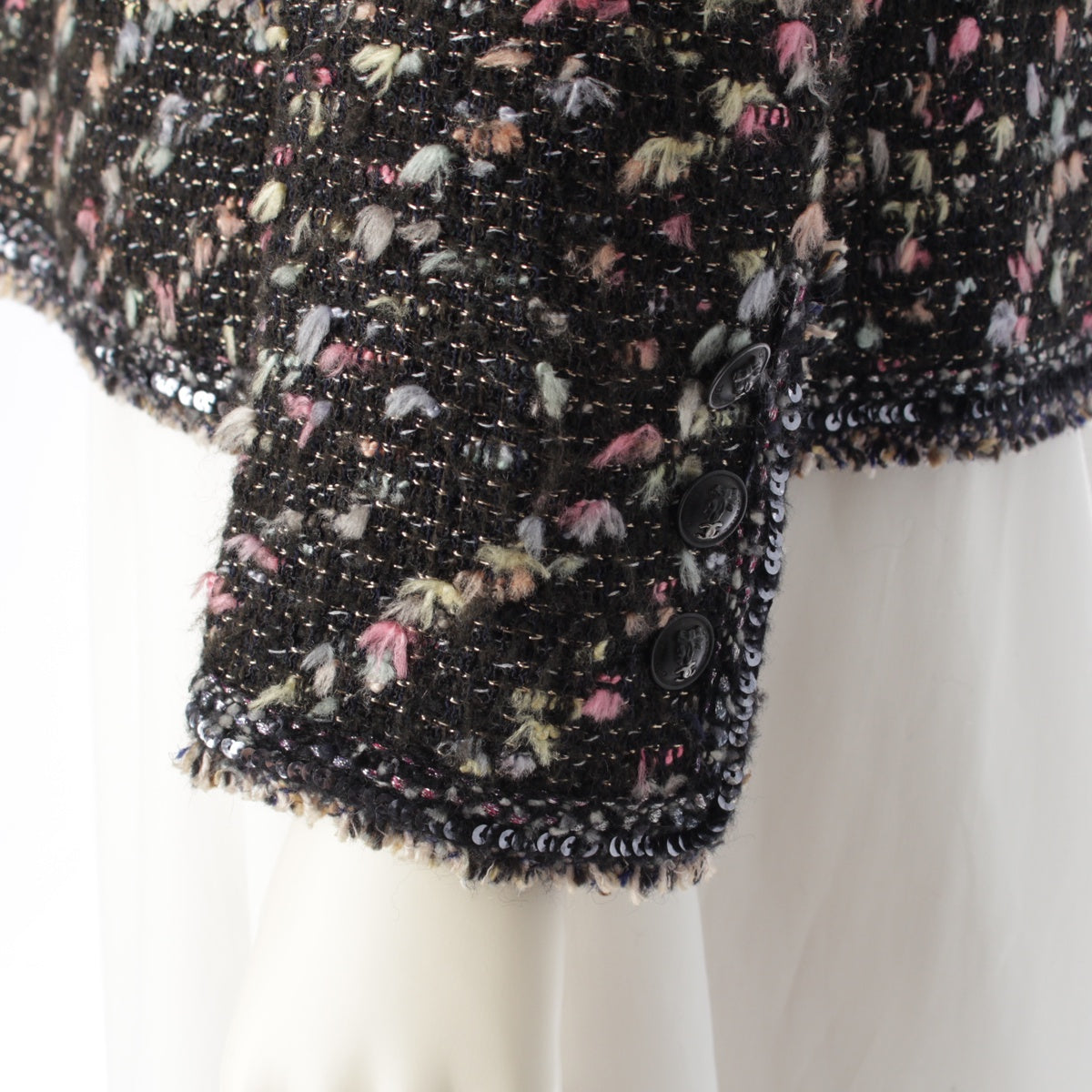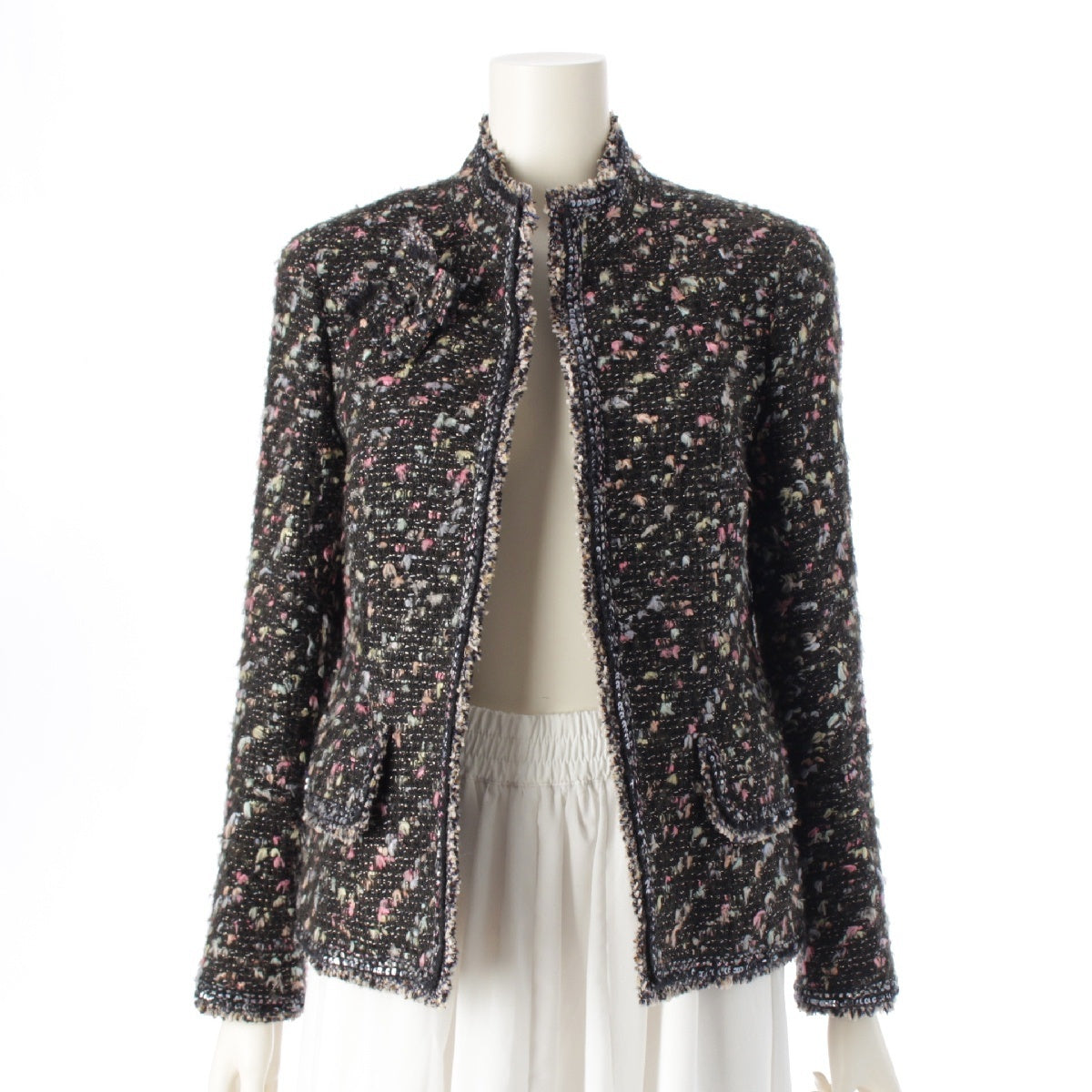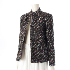 CHANEL 04A tweed Brooch COCO Mark Stand Collar Jacket P24501 black 38