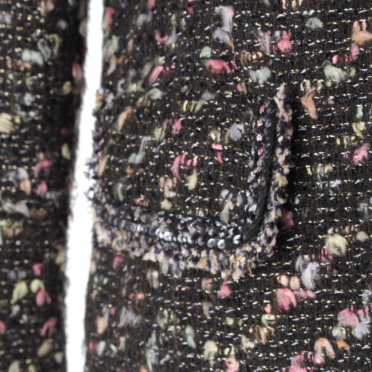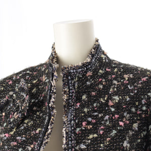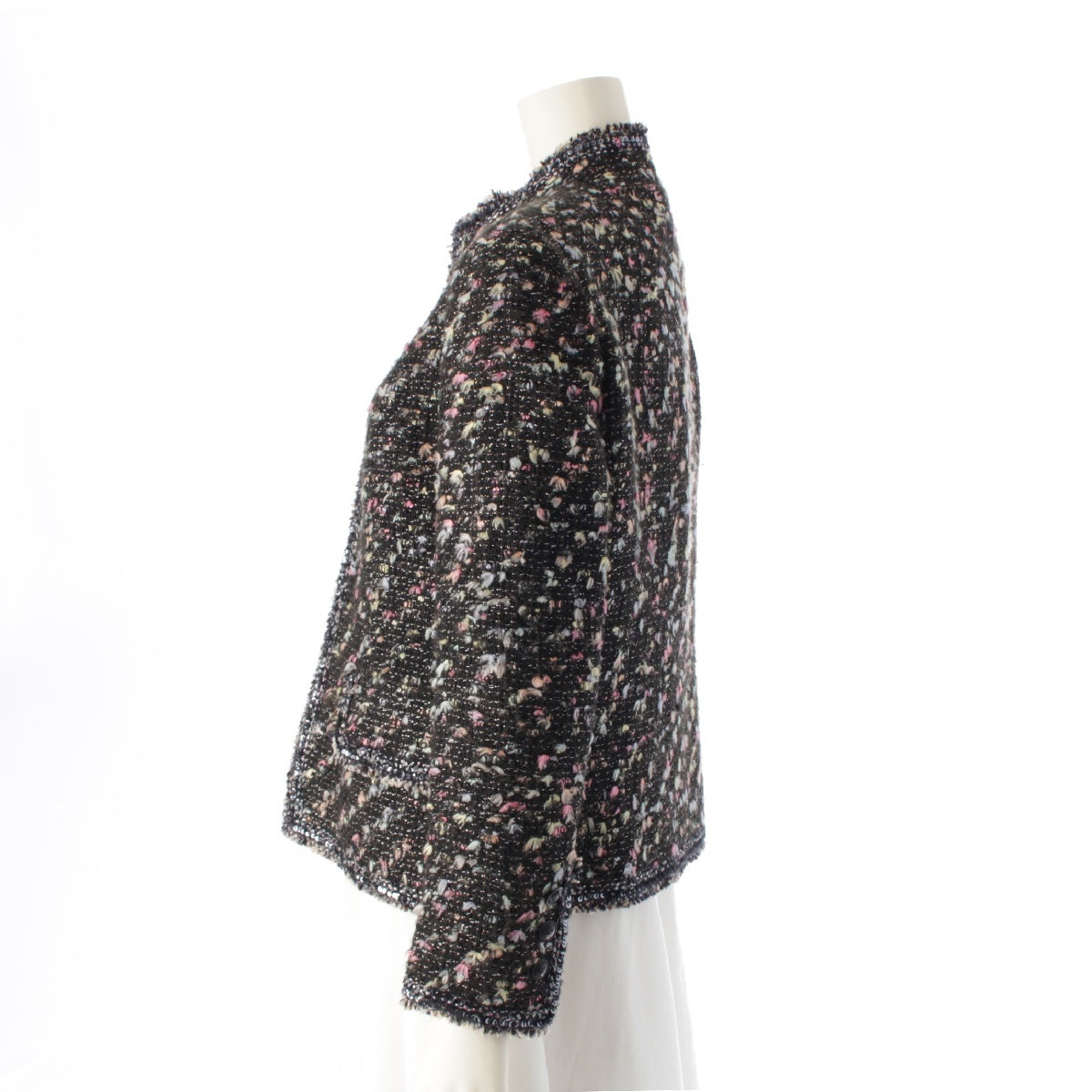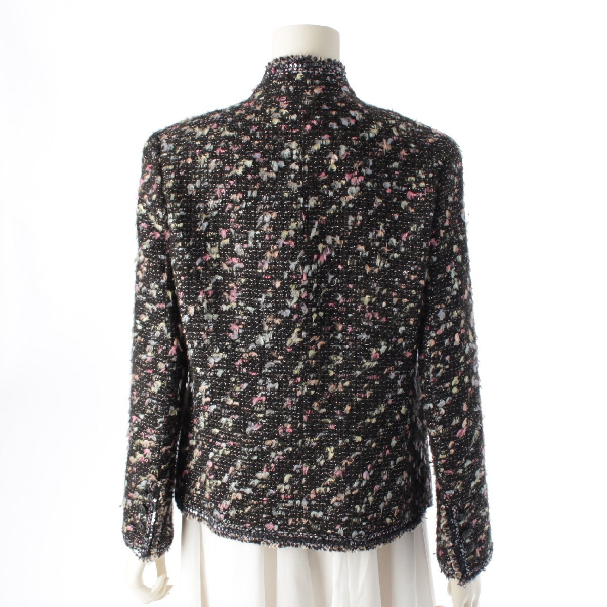 CHANEL 04A tweed Brooch COCO Mark Stand Collar Jacket P24501 black 38
