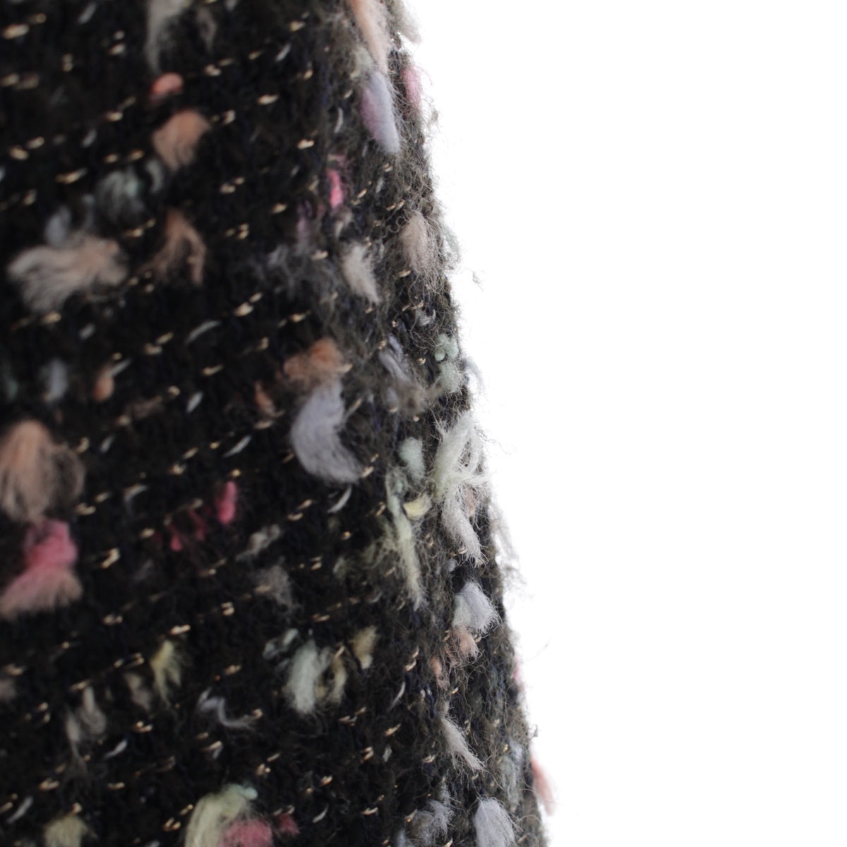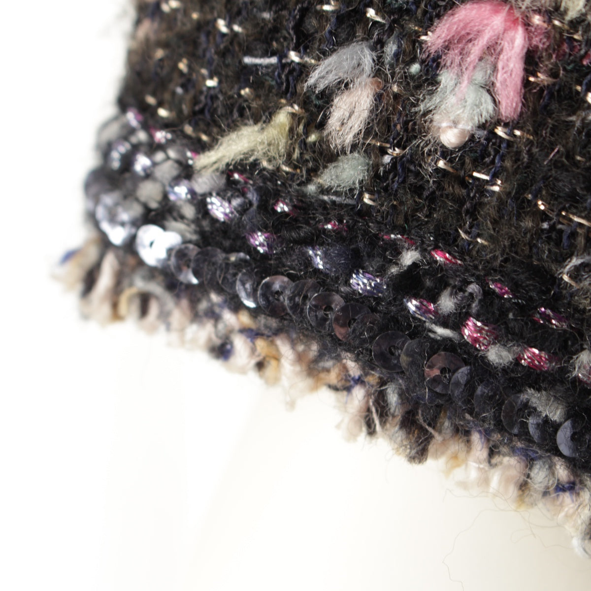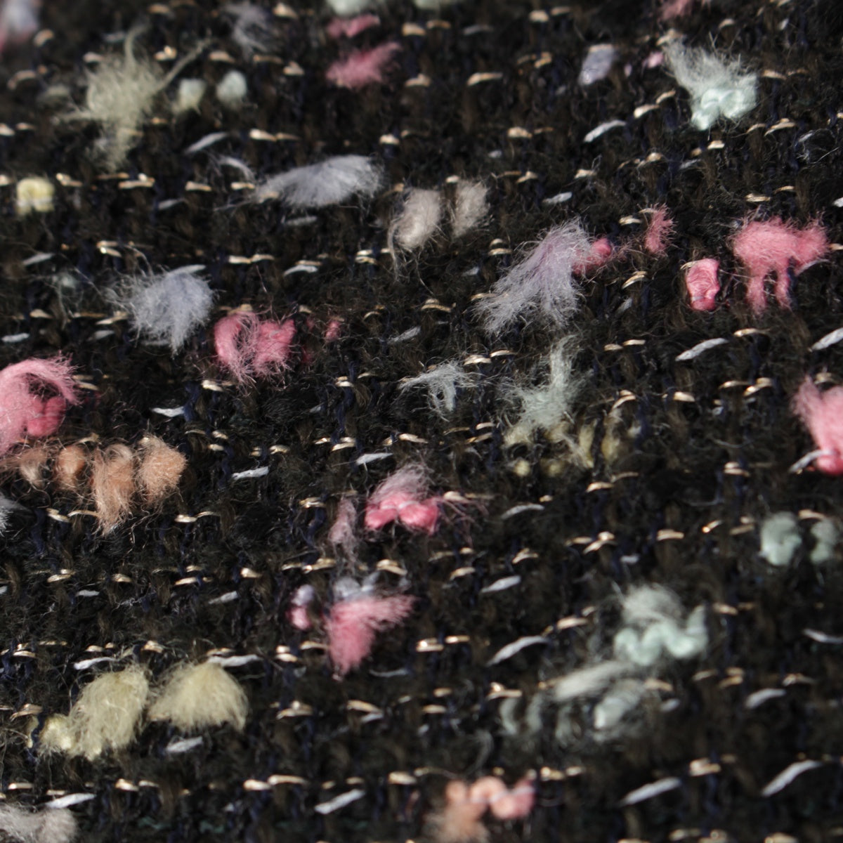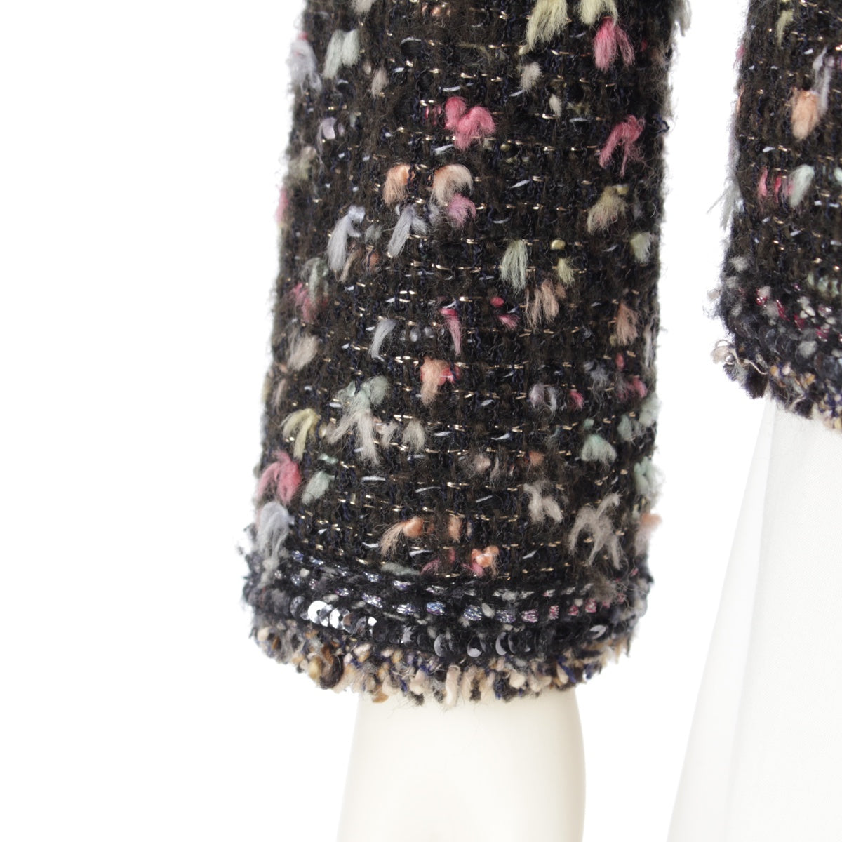 CHANEL 04A tweed Brooch COCO Mark Stand Collar Jacket P24501 black 38