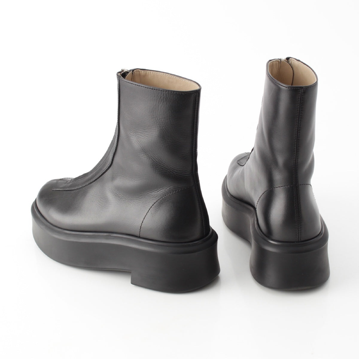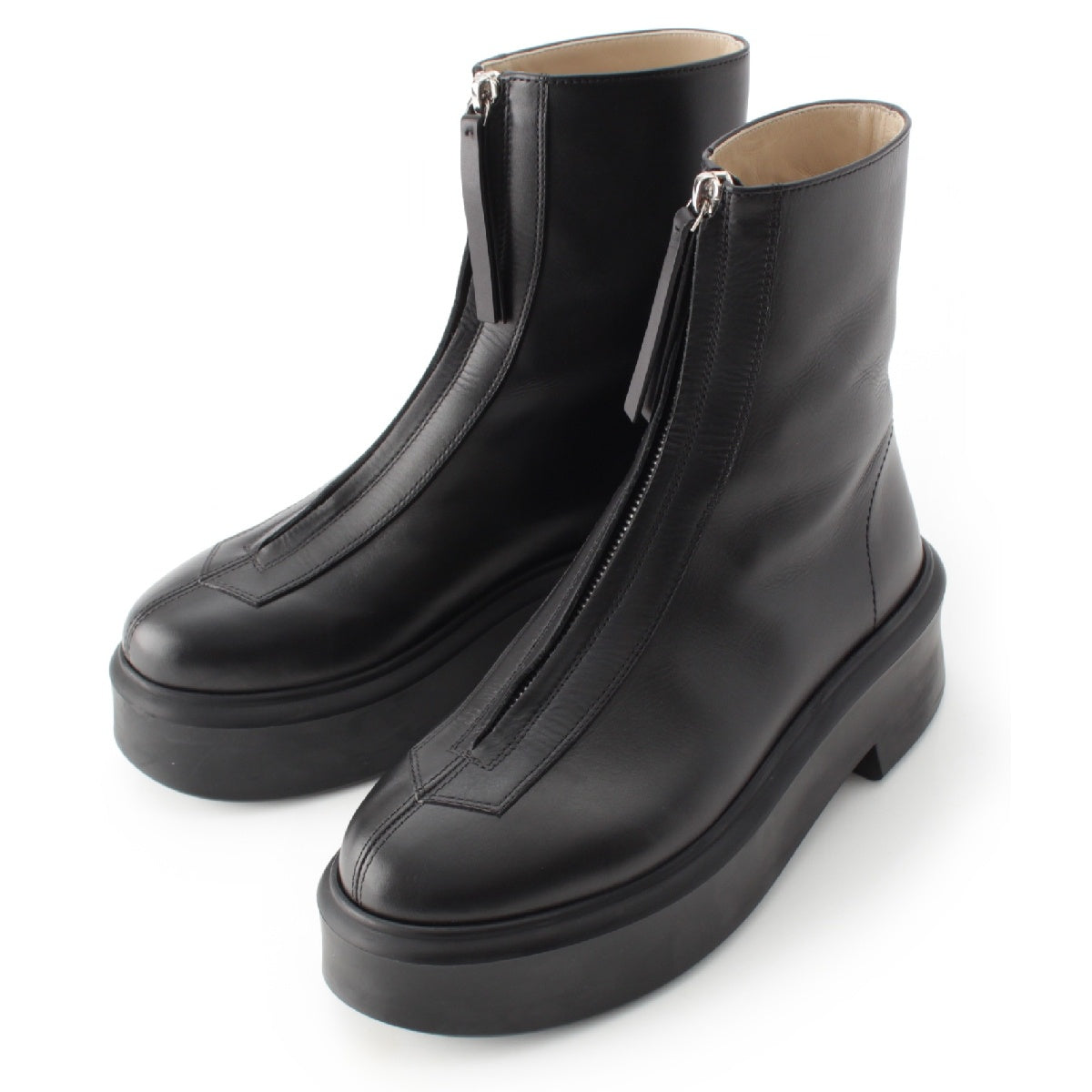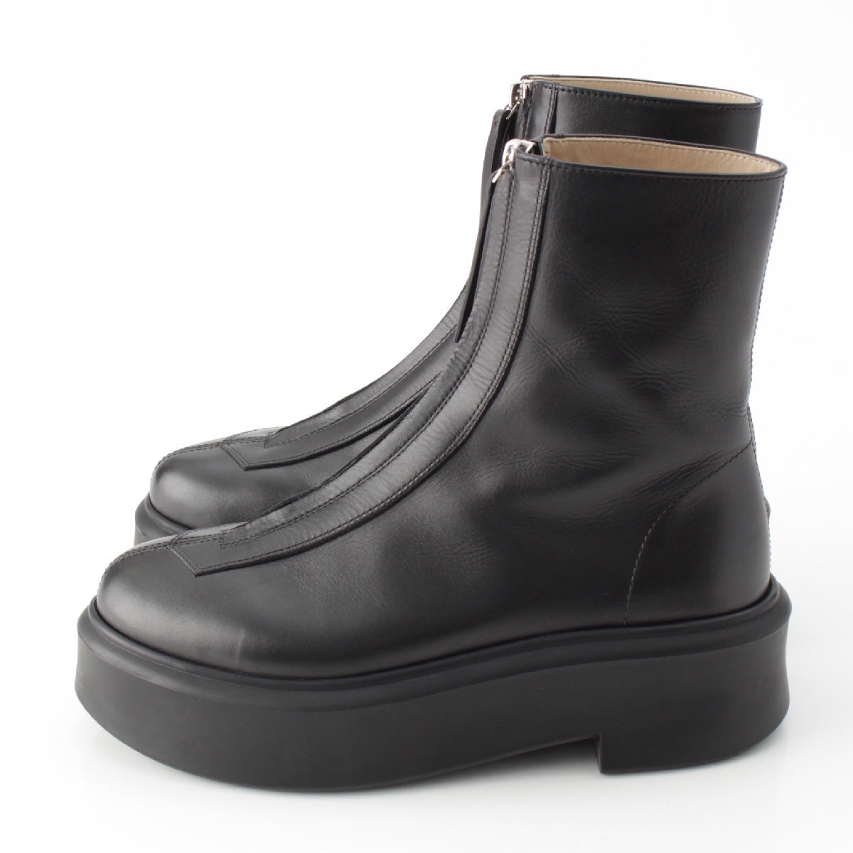 THE ROW Zipped Boot 1 leather Front zip boots short boots black 36