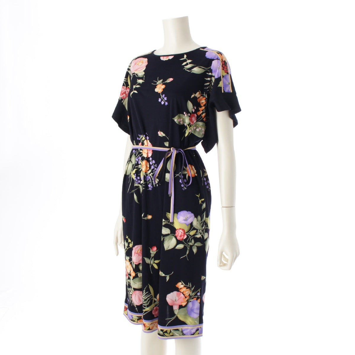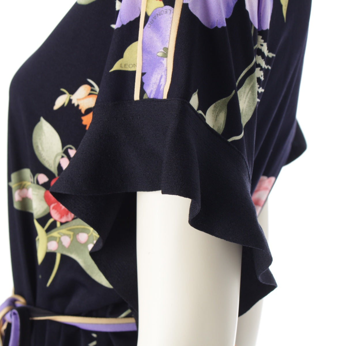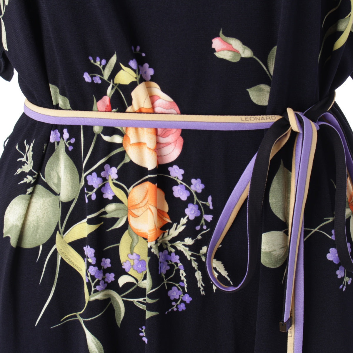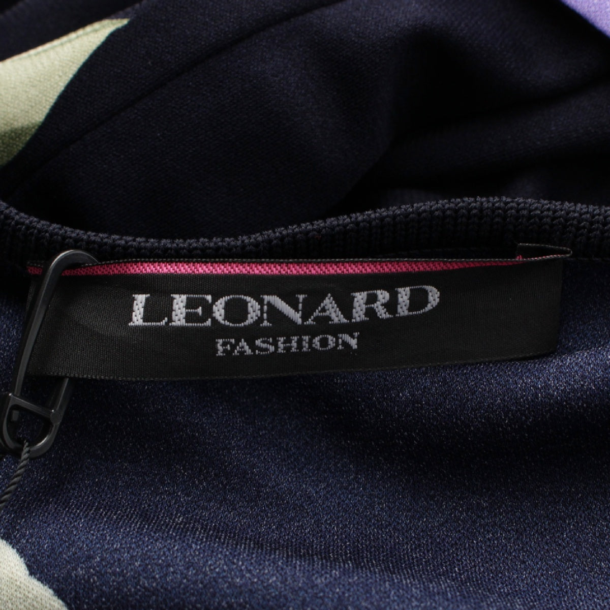 LEONARD 23 years Cancan material Flower Pattern Belt Flare Sleeves one piece Tunic Dress 0197730 Navy 38