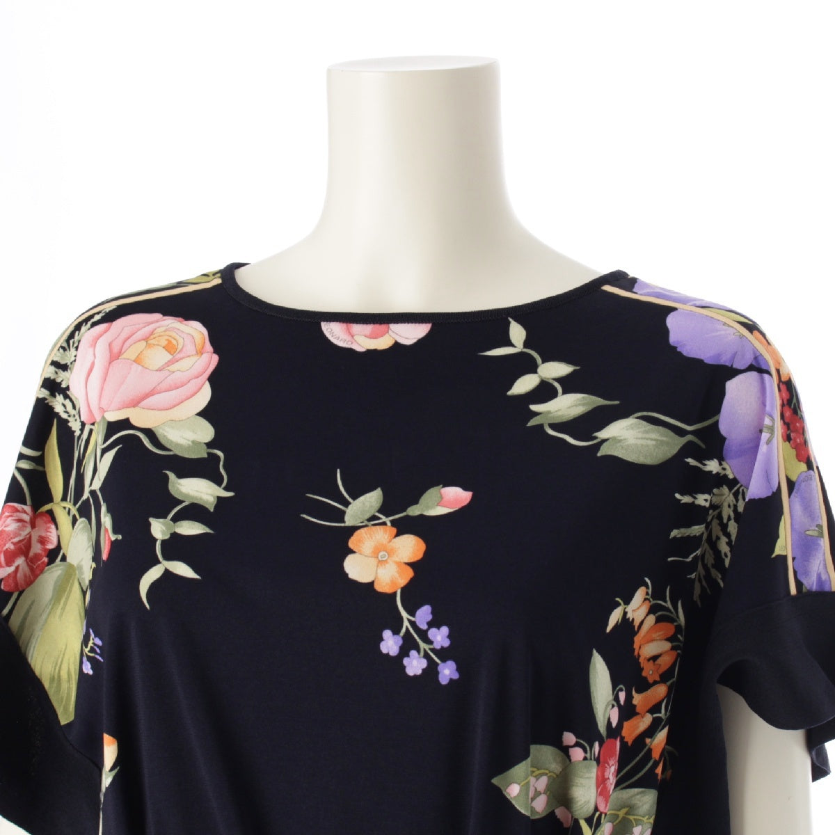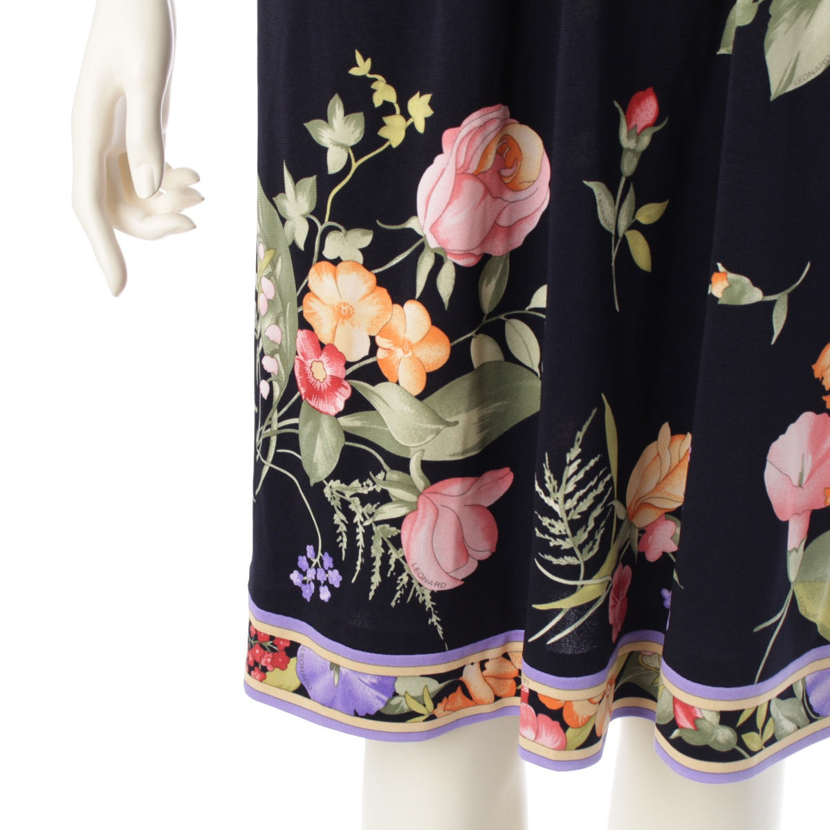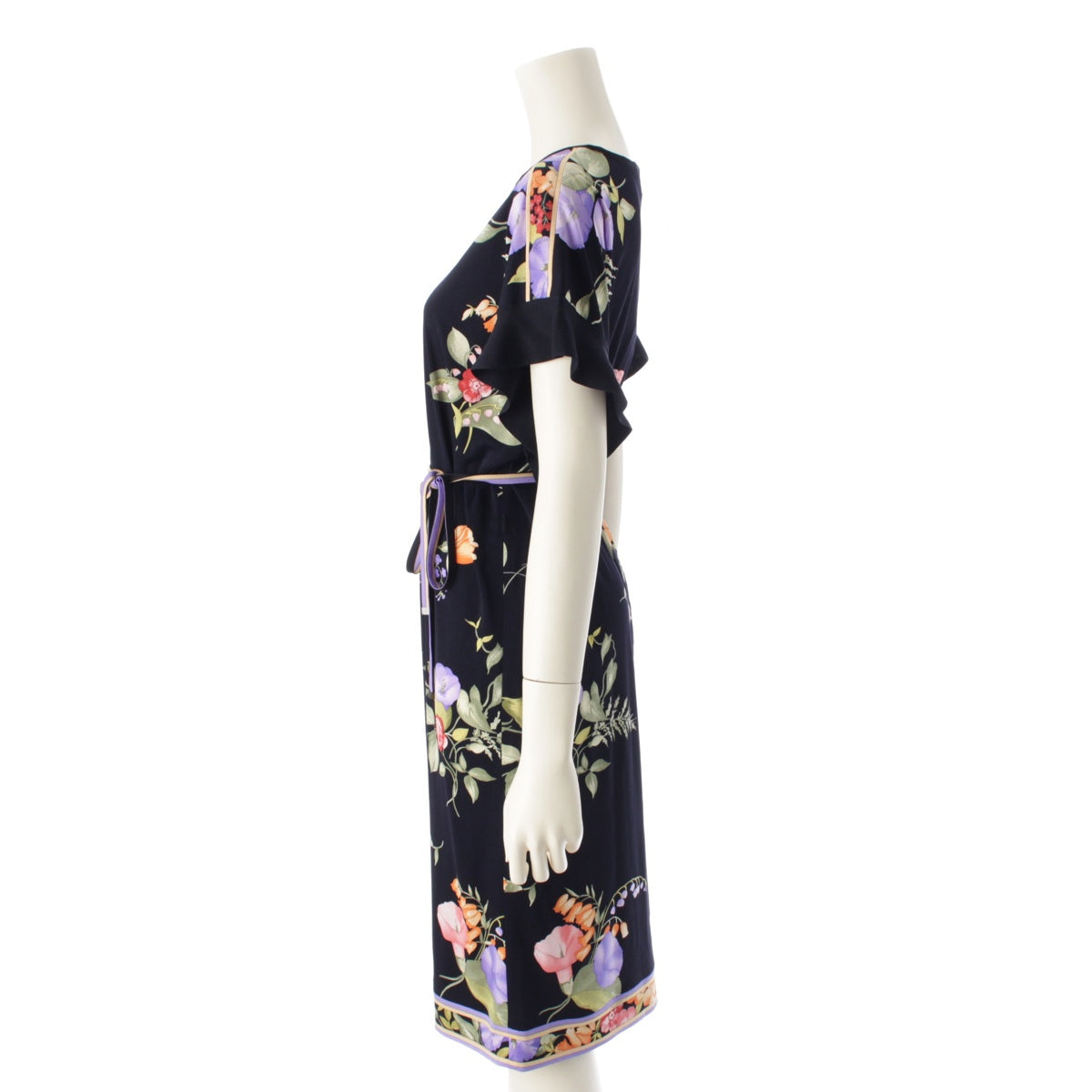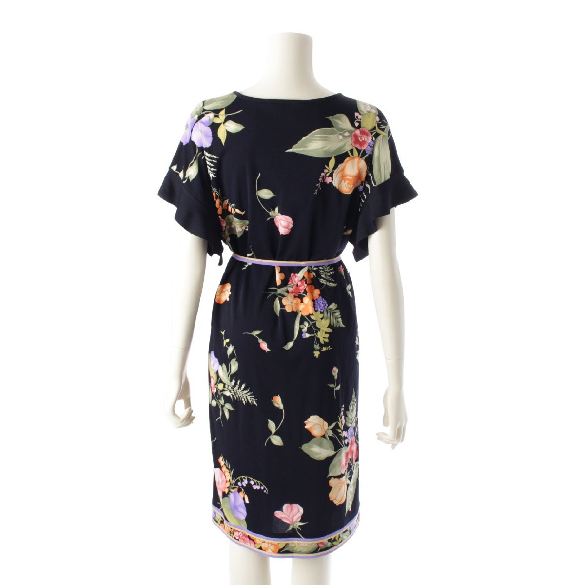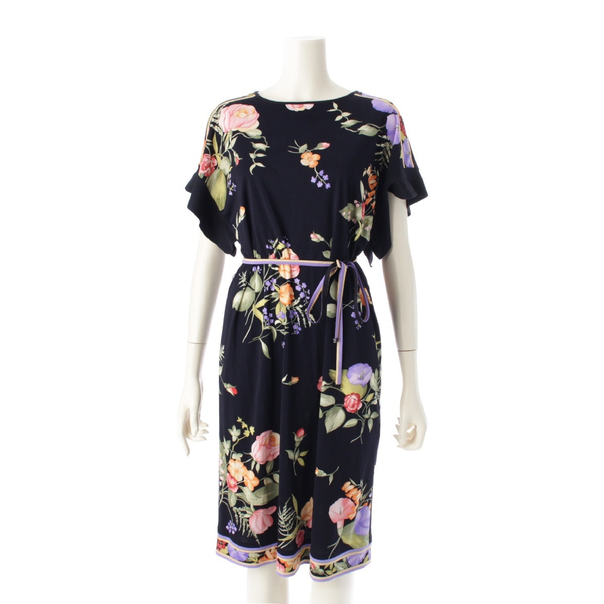 LEONARD 23 years Cancan material Flower Pattern Belt Flare Sleeves one piece Tunic Dress 0197730 Navy 38