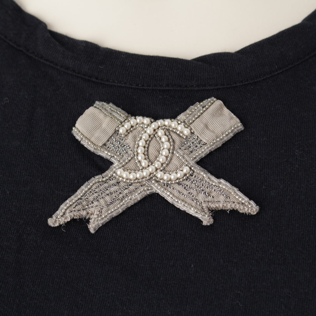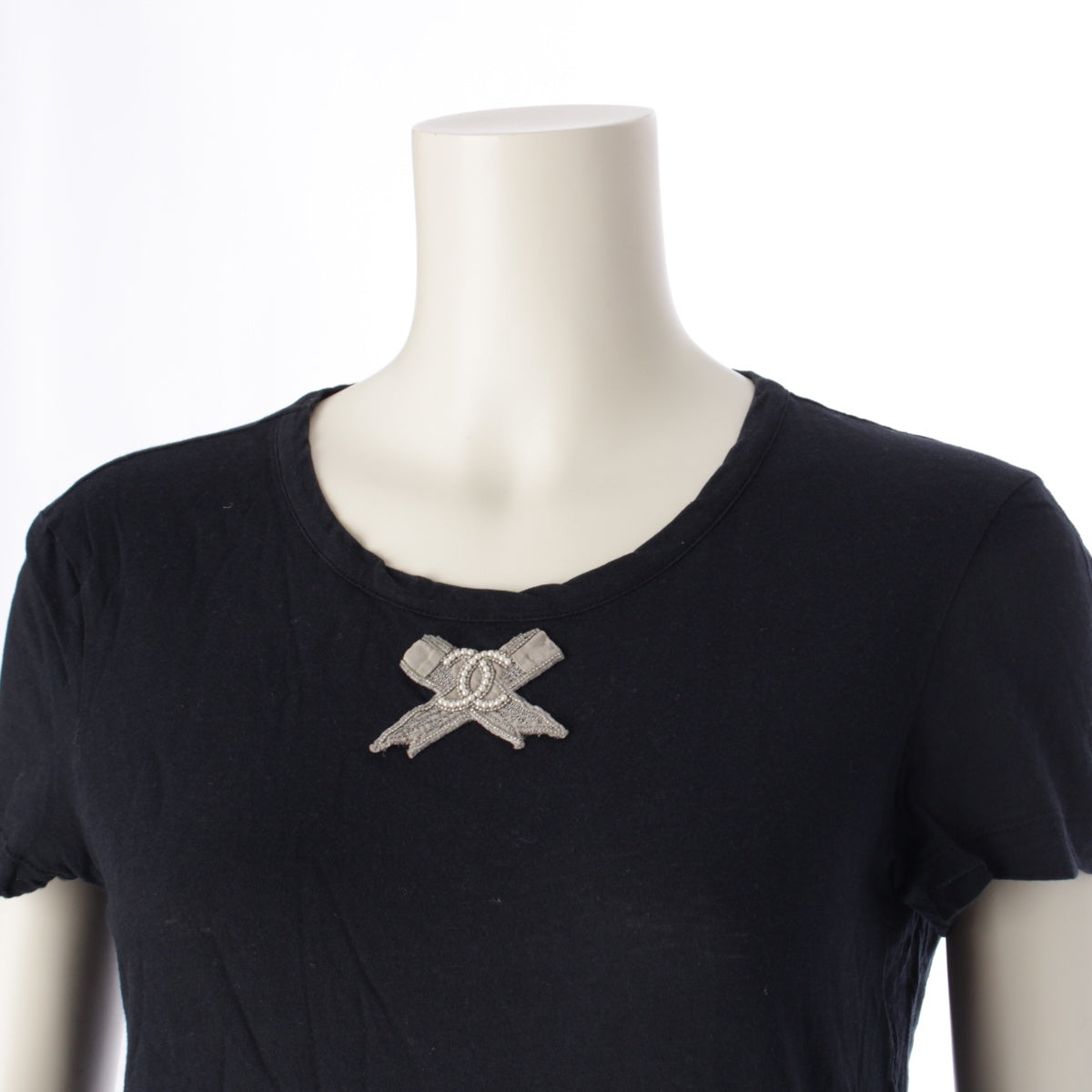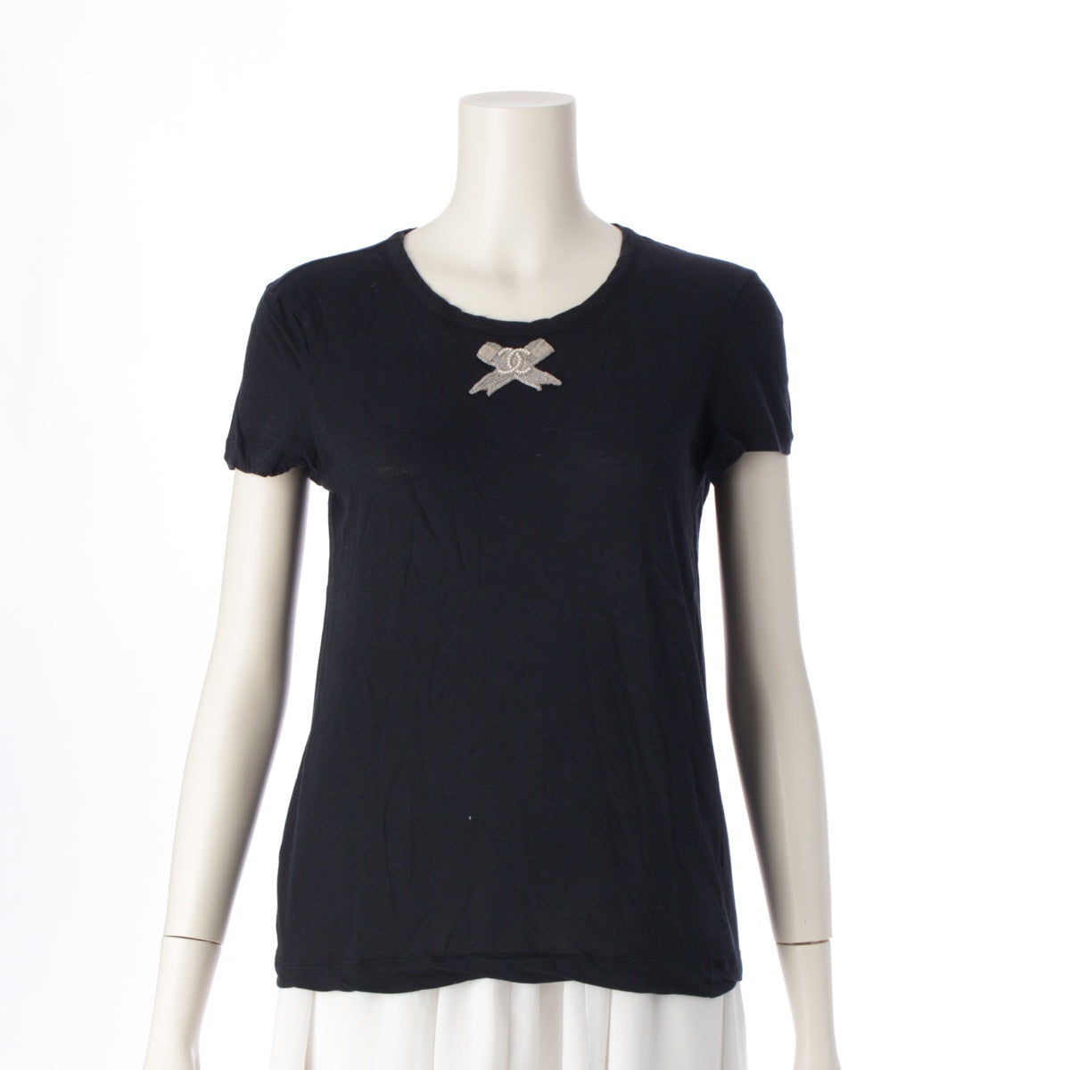 CHANEL cotton COCO Mark ribbon motif crew neck Short sleeve T-shirt Tops cut P35187 black 38