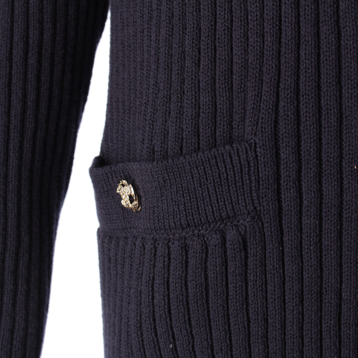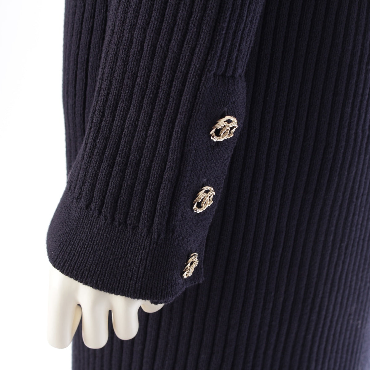 Chanel 20P Cotton Knit COCO Mark Button Cardigan P63309 Navy 34