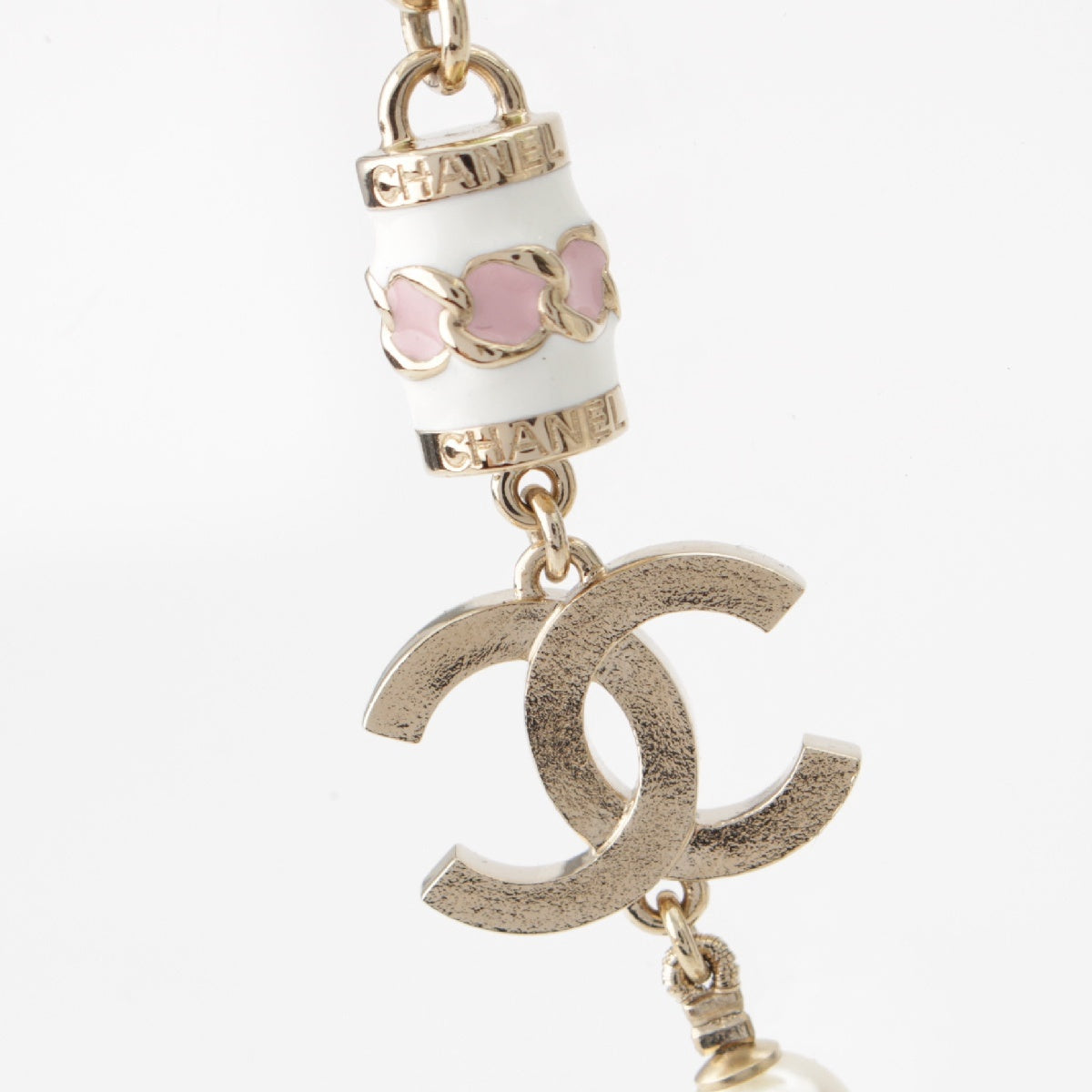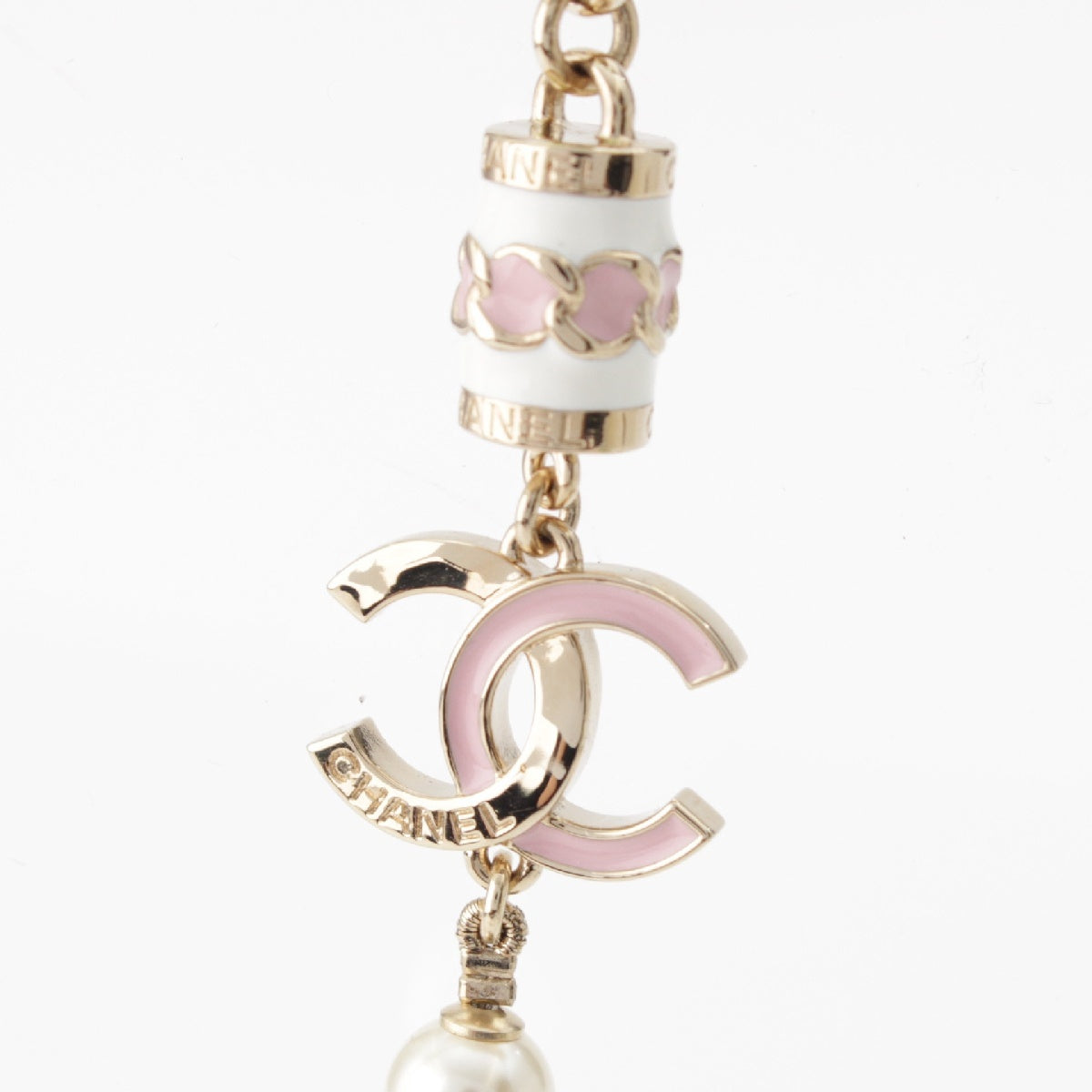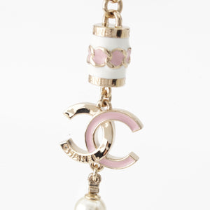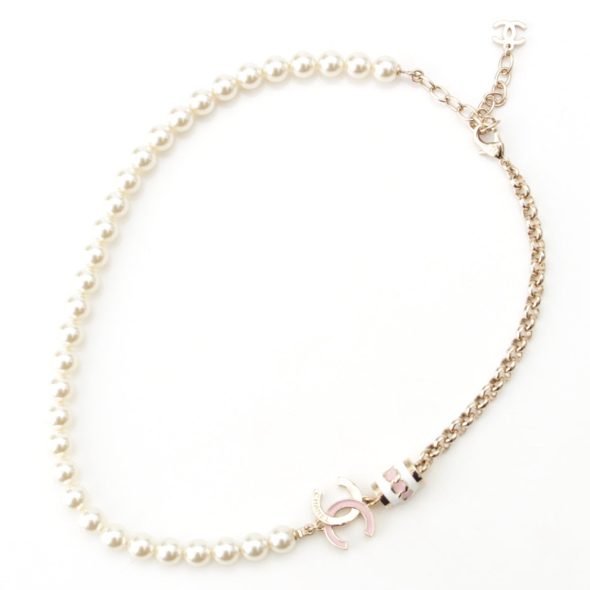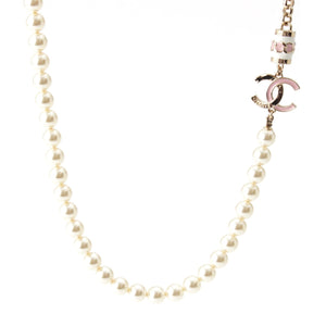CHANEL I24B COCO Mark Pearl Necklace Pendant accessories White x pink