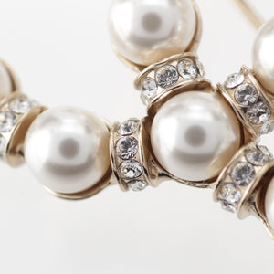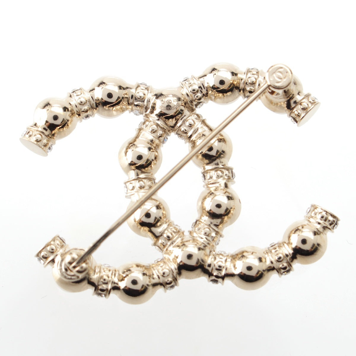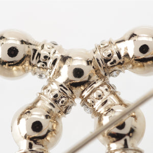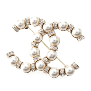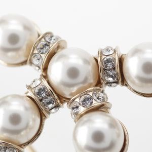 CHANEL B21C COCO Mark F Pearl Rhinestone Pin Brooch Accessories Silver